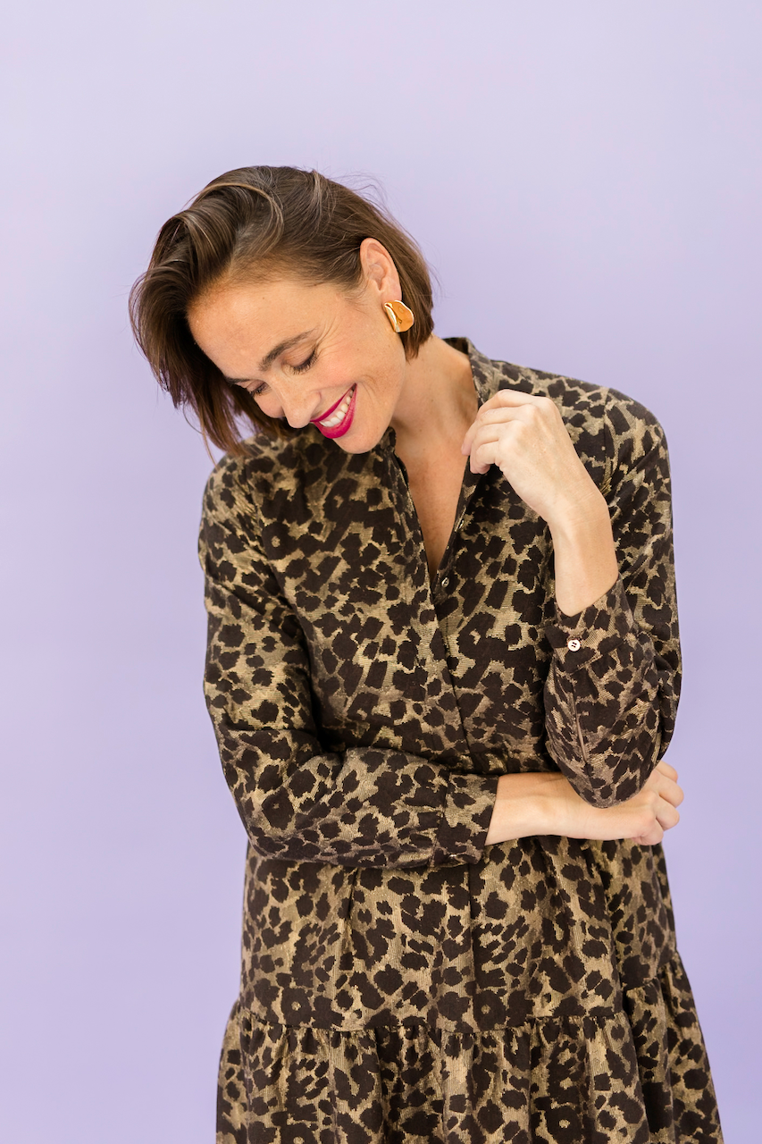 MONA wird dich zum Strahlen bringen und deine Persönlichkeit unterstreichen. Es hat die perfekte Passform für ein langes Kleid. Der obere Teil des Kleides ist etwas enger, um deine Taille zu betonen, kombiniert mit einem schön taillierten ausgestellten Rock. Du kannst die Ärmel hochkrempeln oder die versteckten Knöpfe aufknöpfen.