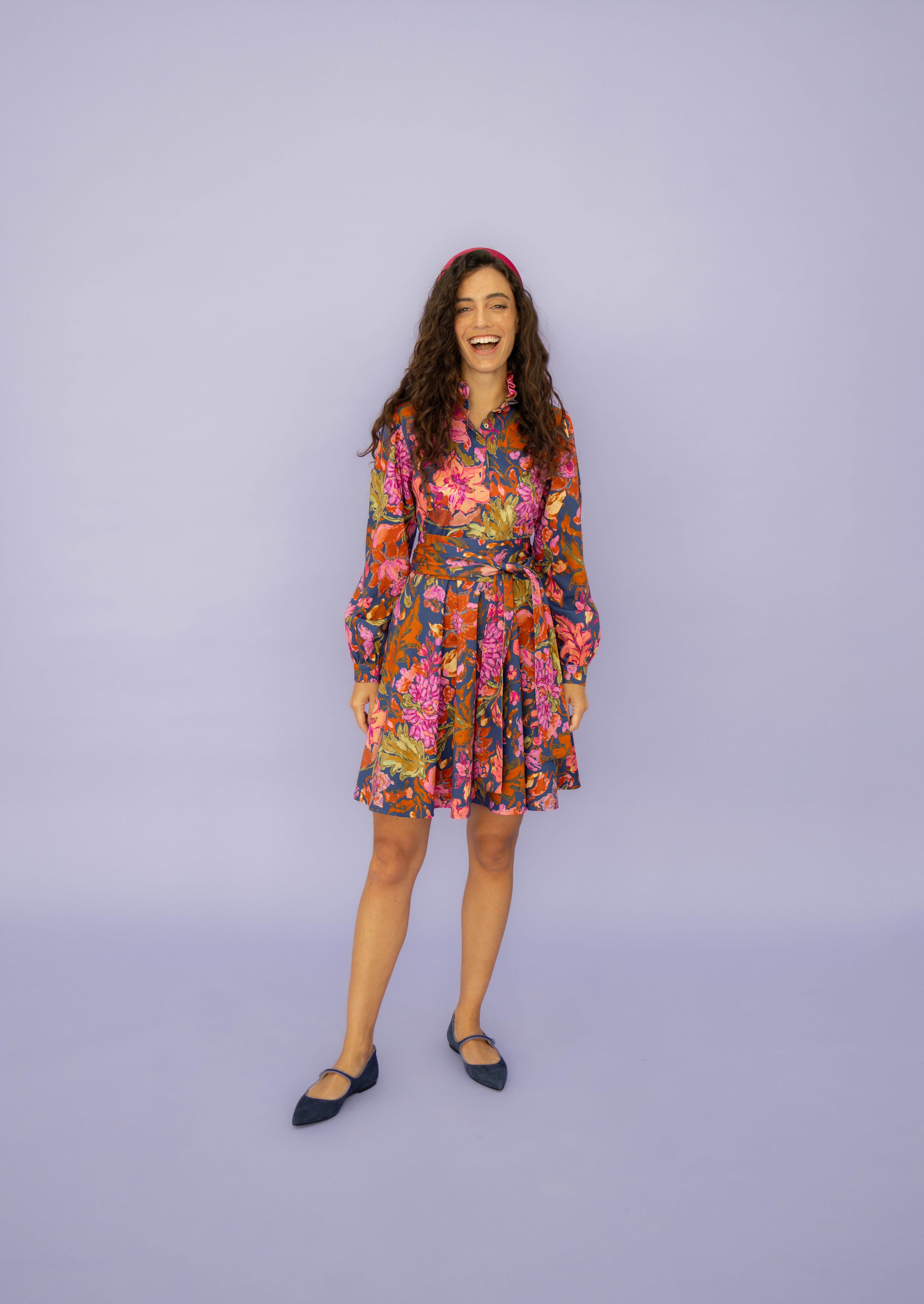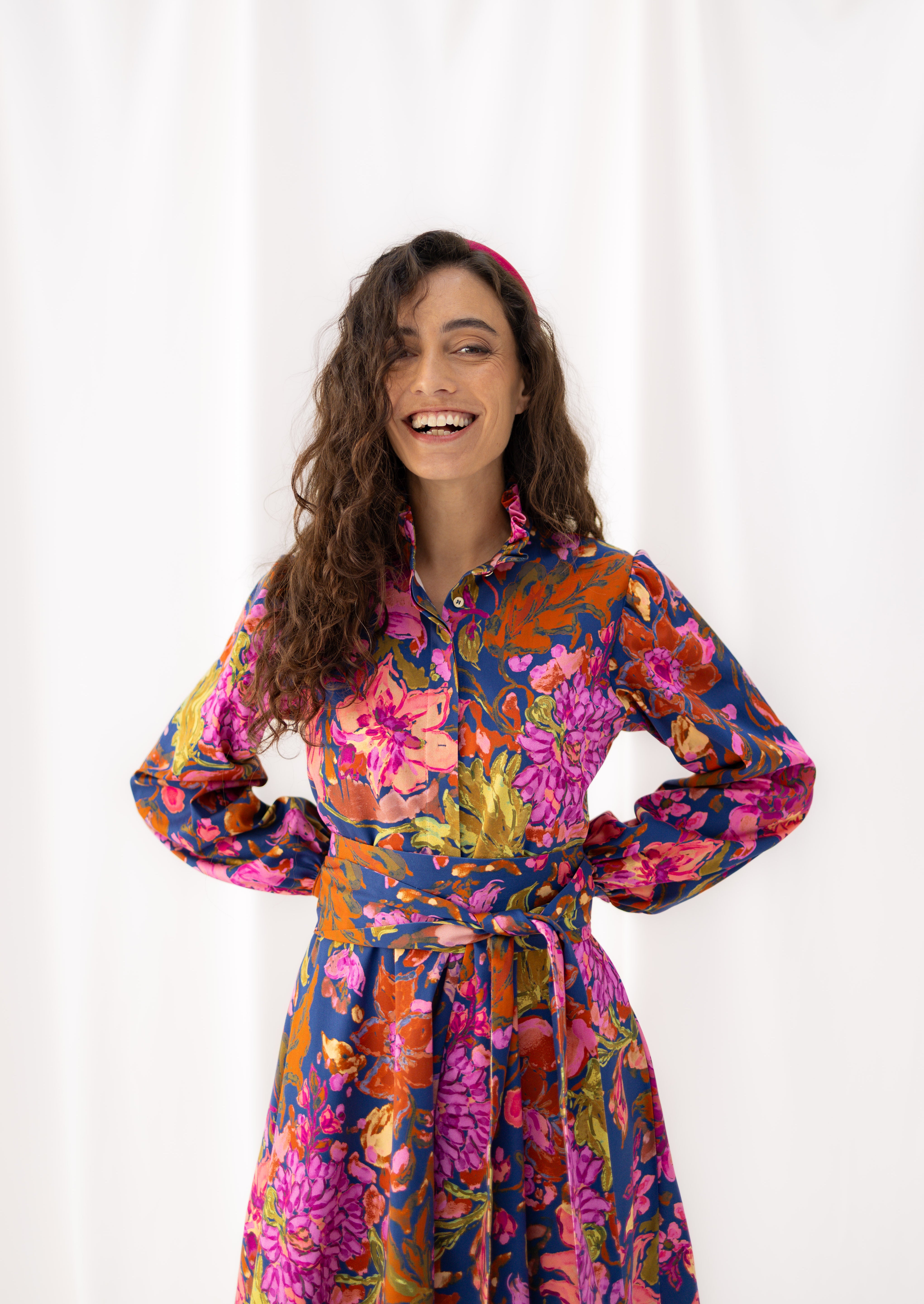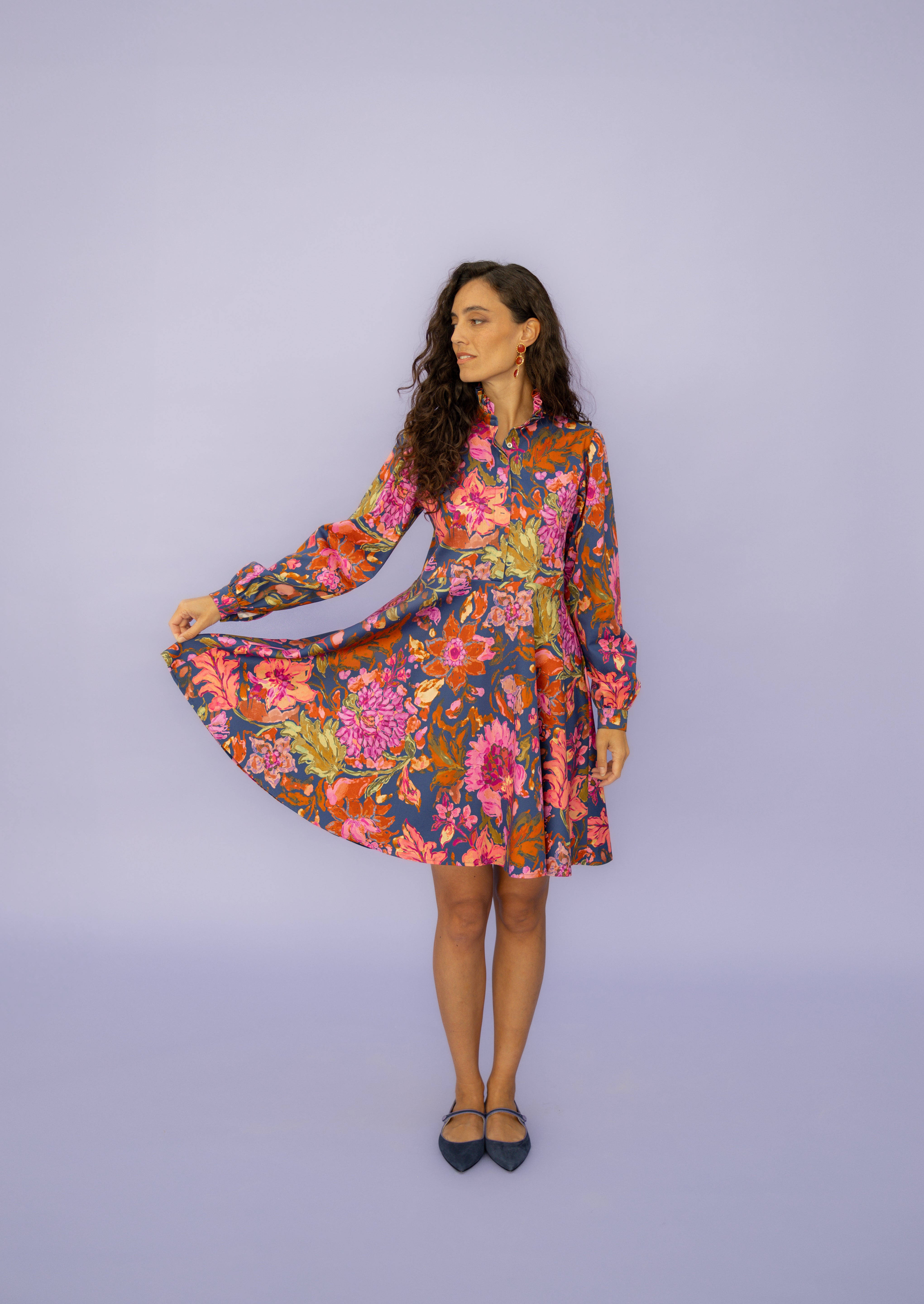 ALMA is the mix between our dresses DORA and ANTONIA. The flared skirt with pockets and ruffled collar make the below-the-knees-length dress comfortable and suitable for any occasion.You can roll up the sleeves or unbutton it to make it fit your style and combine it with our belts. The best thing - this dress has handy pockets.