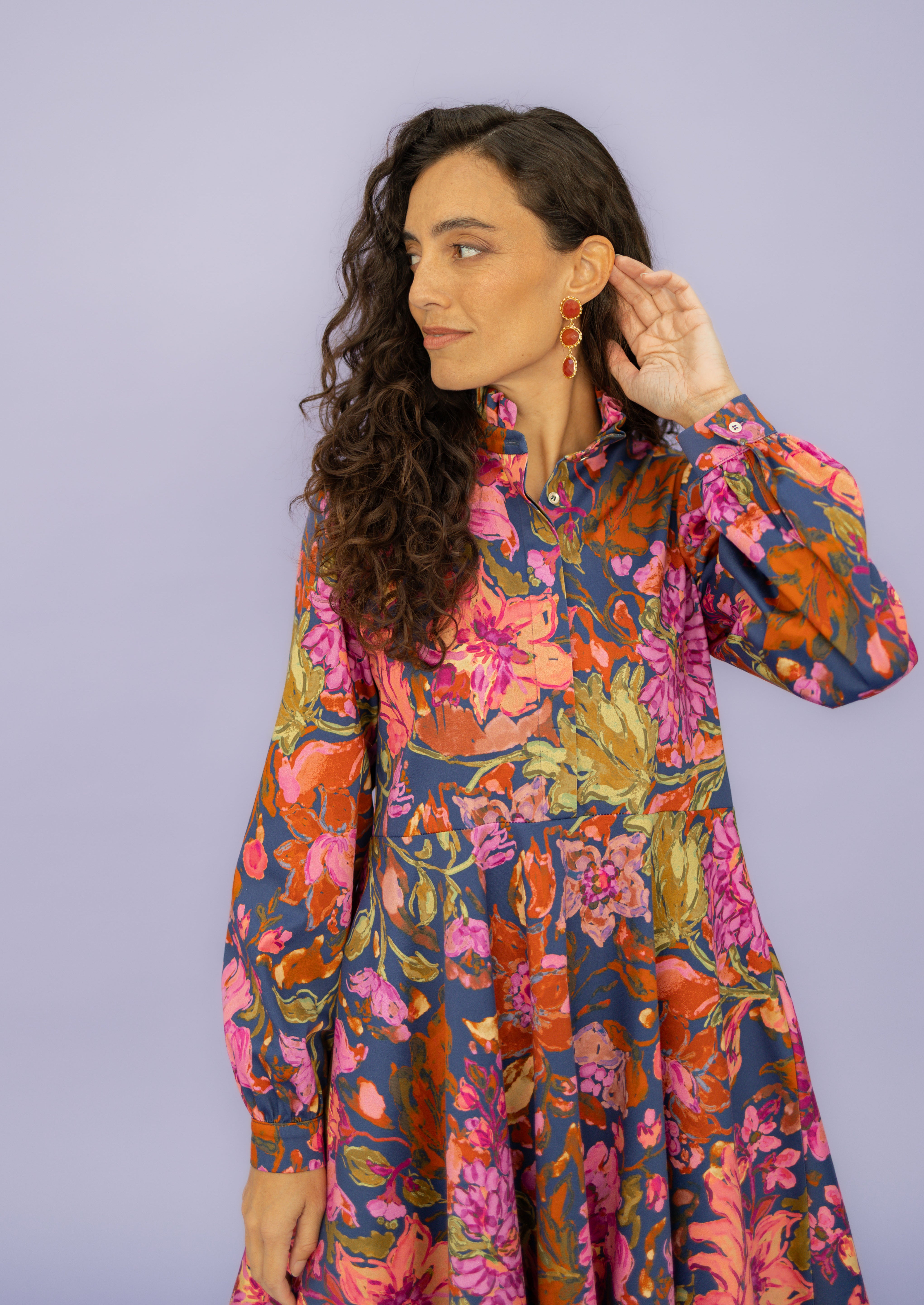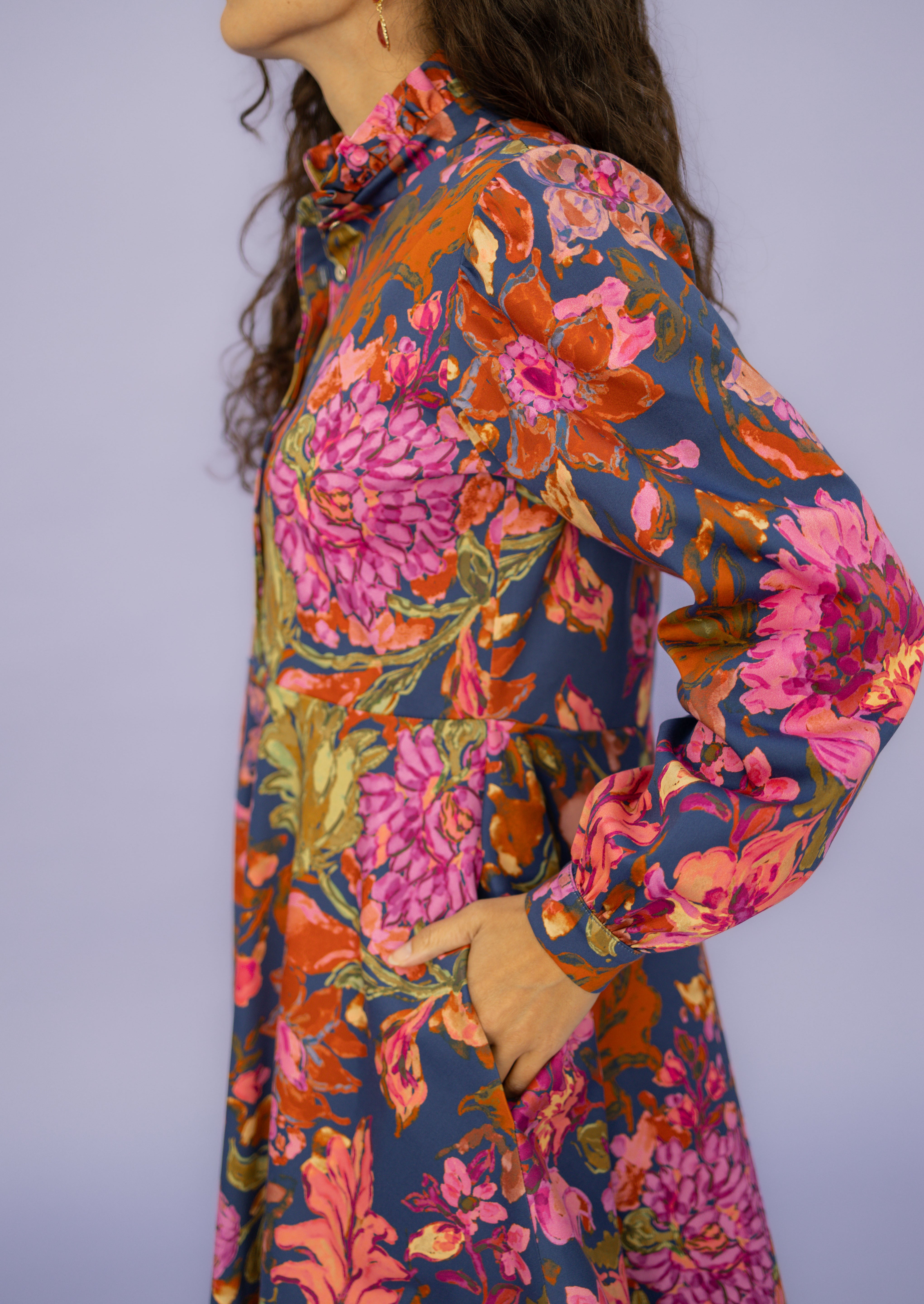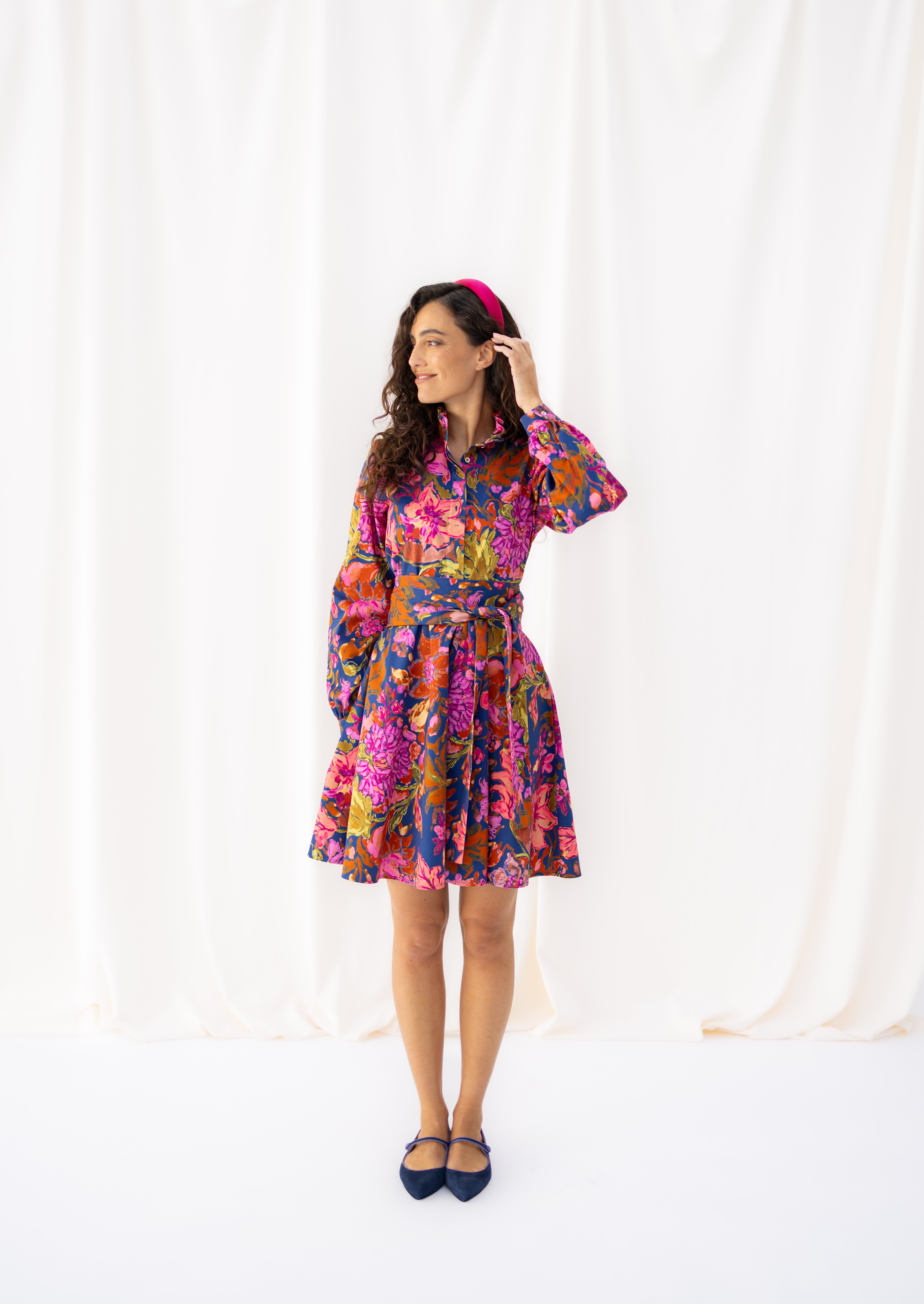 ALMA is the mix between our dresses DORA and ANTONIA. The flared skirt with pockets and ruffled collar make the below-the-knees-length dress comfortable and suitable for any occasion.You can roll up the sleeves or unbutton it to make it fit your style and combine it with our belts. The best thing - this dress has handy pockets.