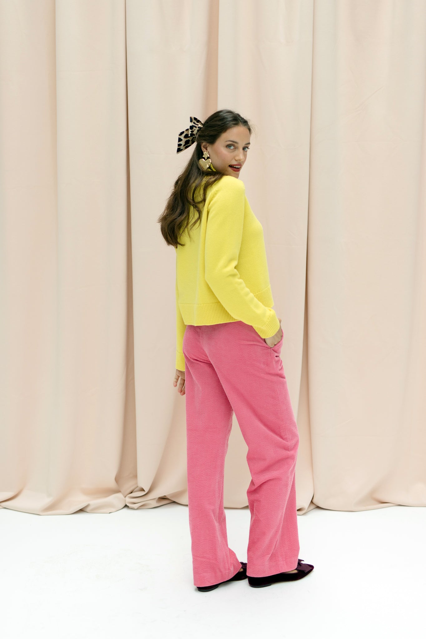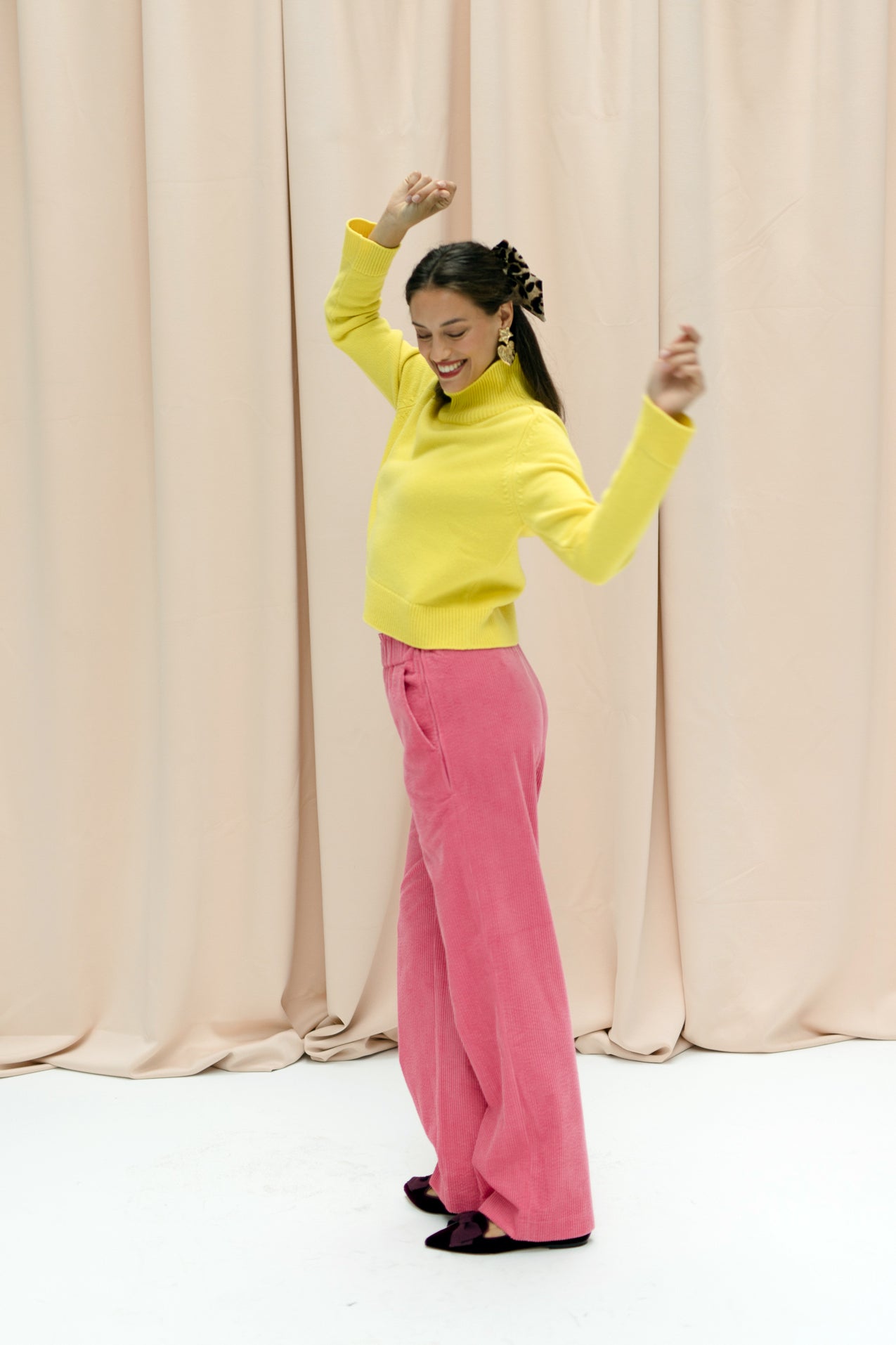 Here it is, the first CONSCHES pants. AVA has a straight slightly flared leg, a zip on the side and an elastic in the waistband with a paperbag look. This makes them comfortable to wear and pull on.