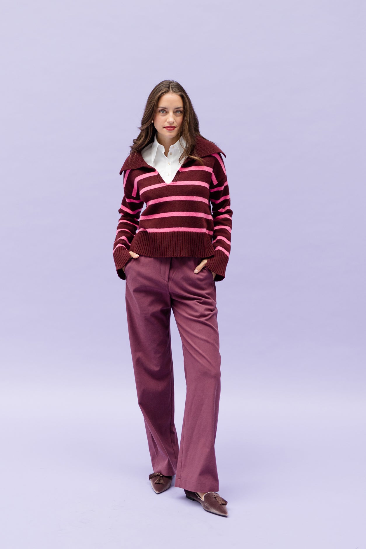 AVA bordeaux is made from a flowy, soft and rather thin fabric.