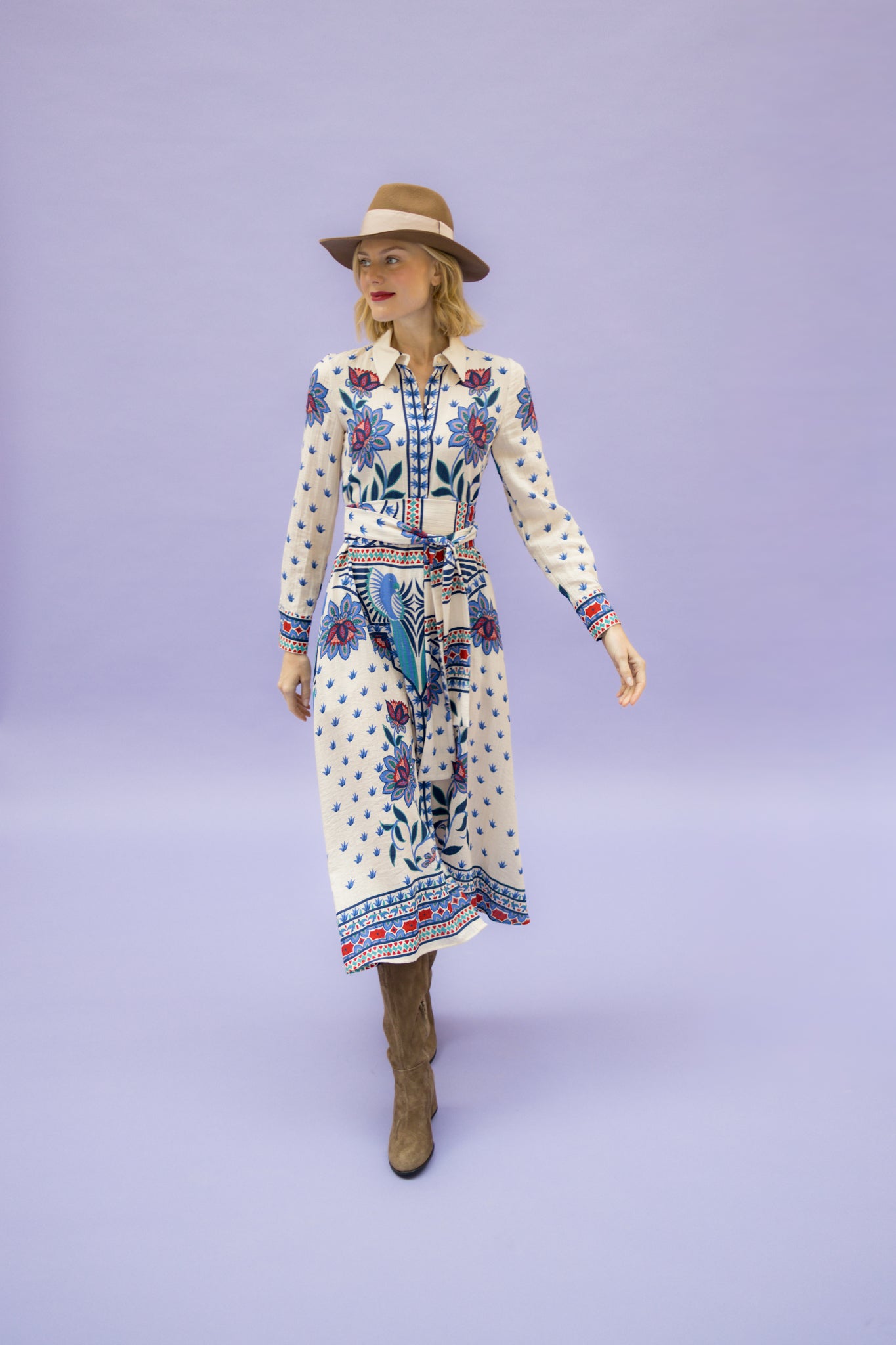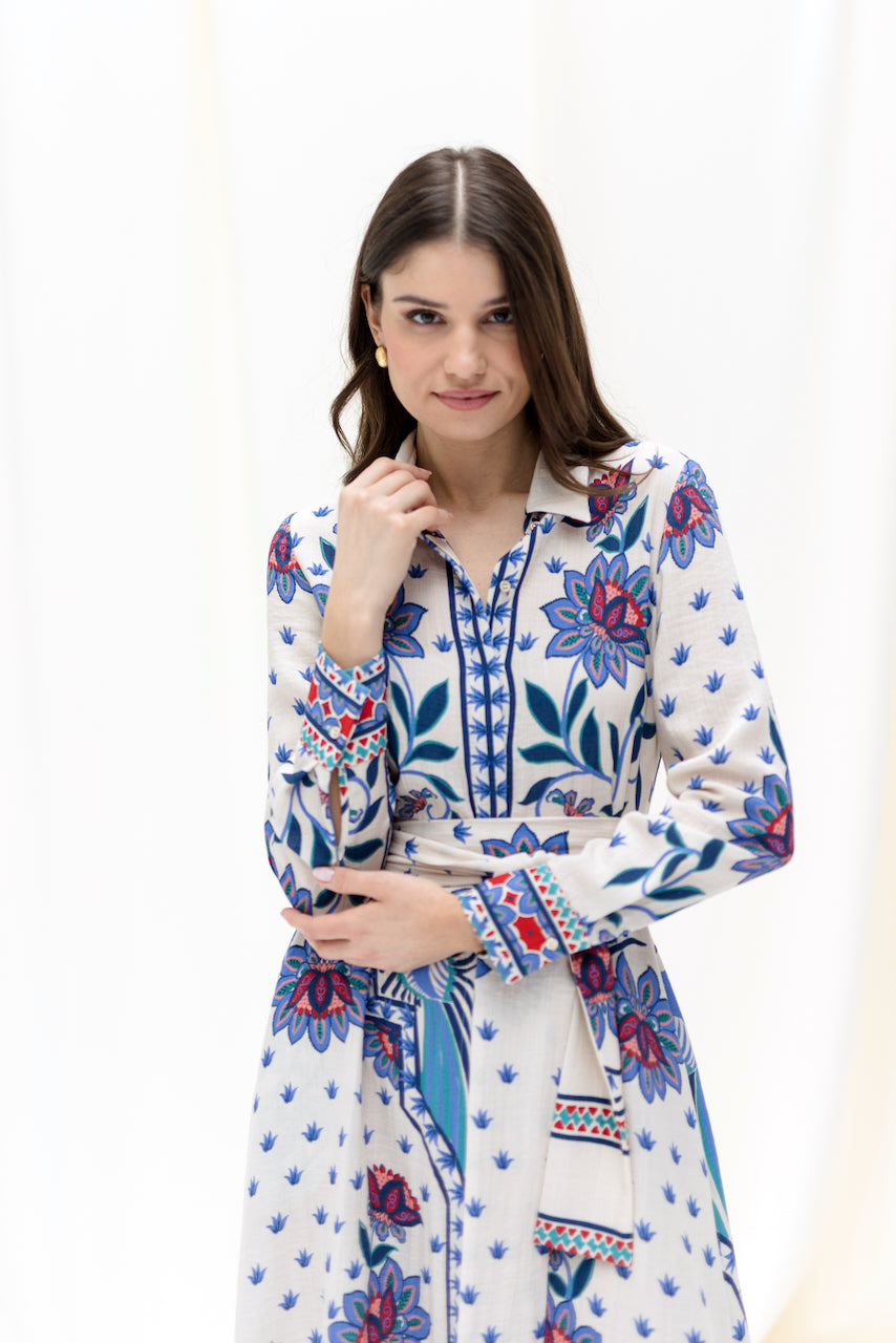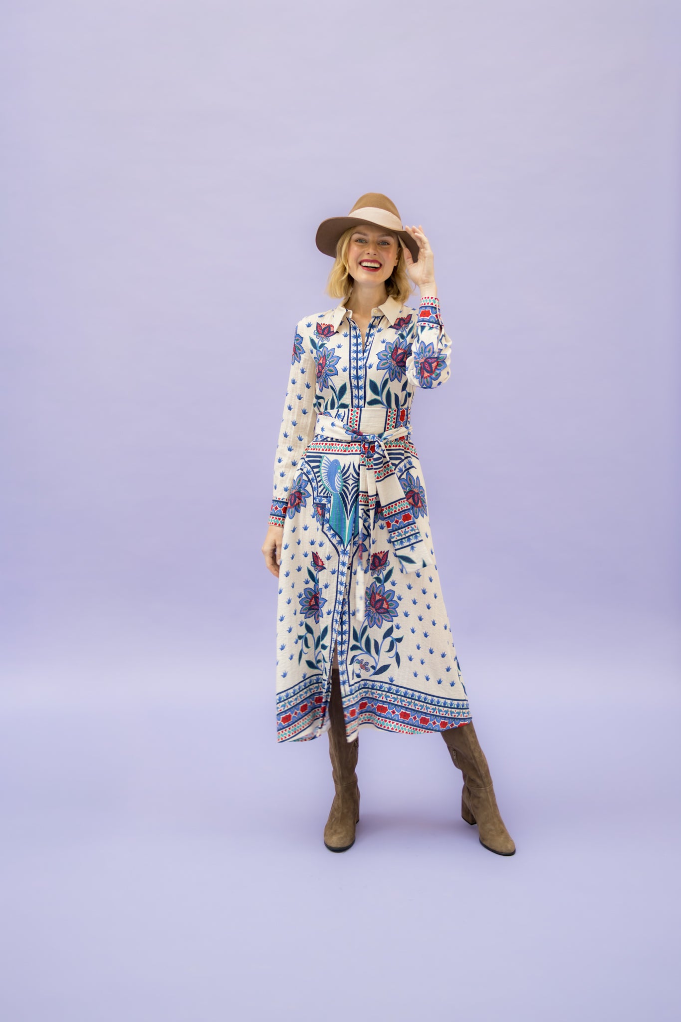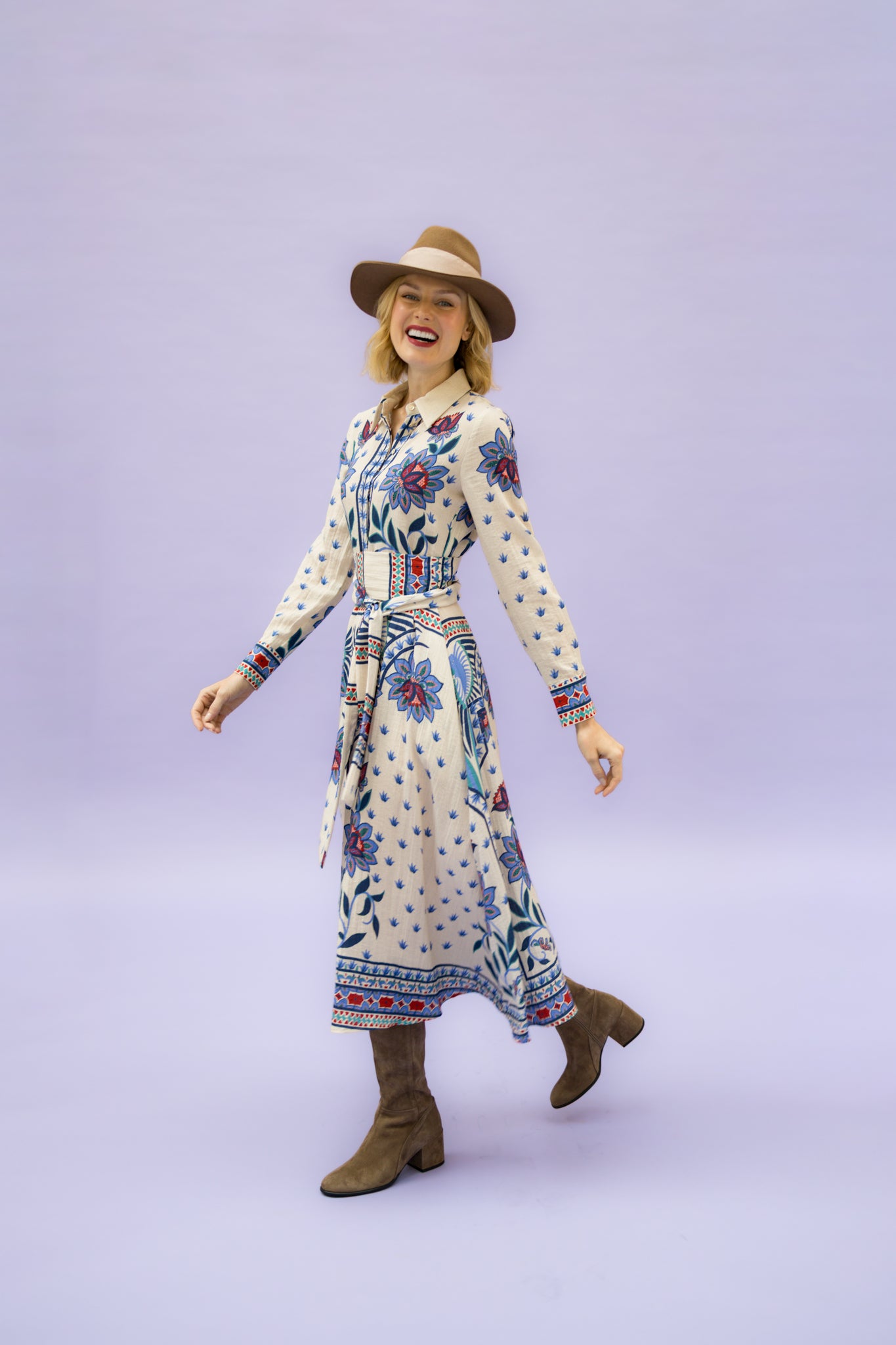 A shirt dress that makes dreams come true. It has pockets, a removable belt that can also be replaced with other JOHANNA belts. A midi dress that is elegant, chic and cozy at the same time. It is a flowing, soft, and airy fabric.