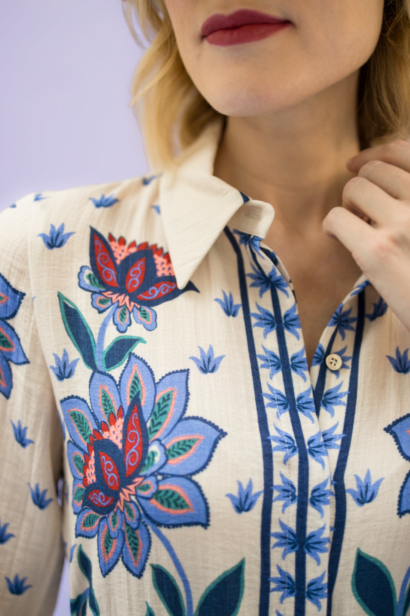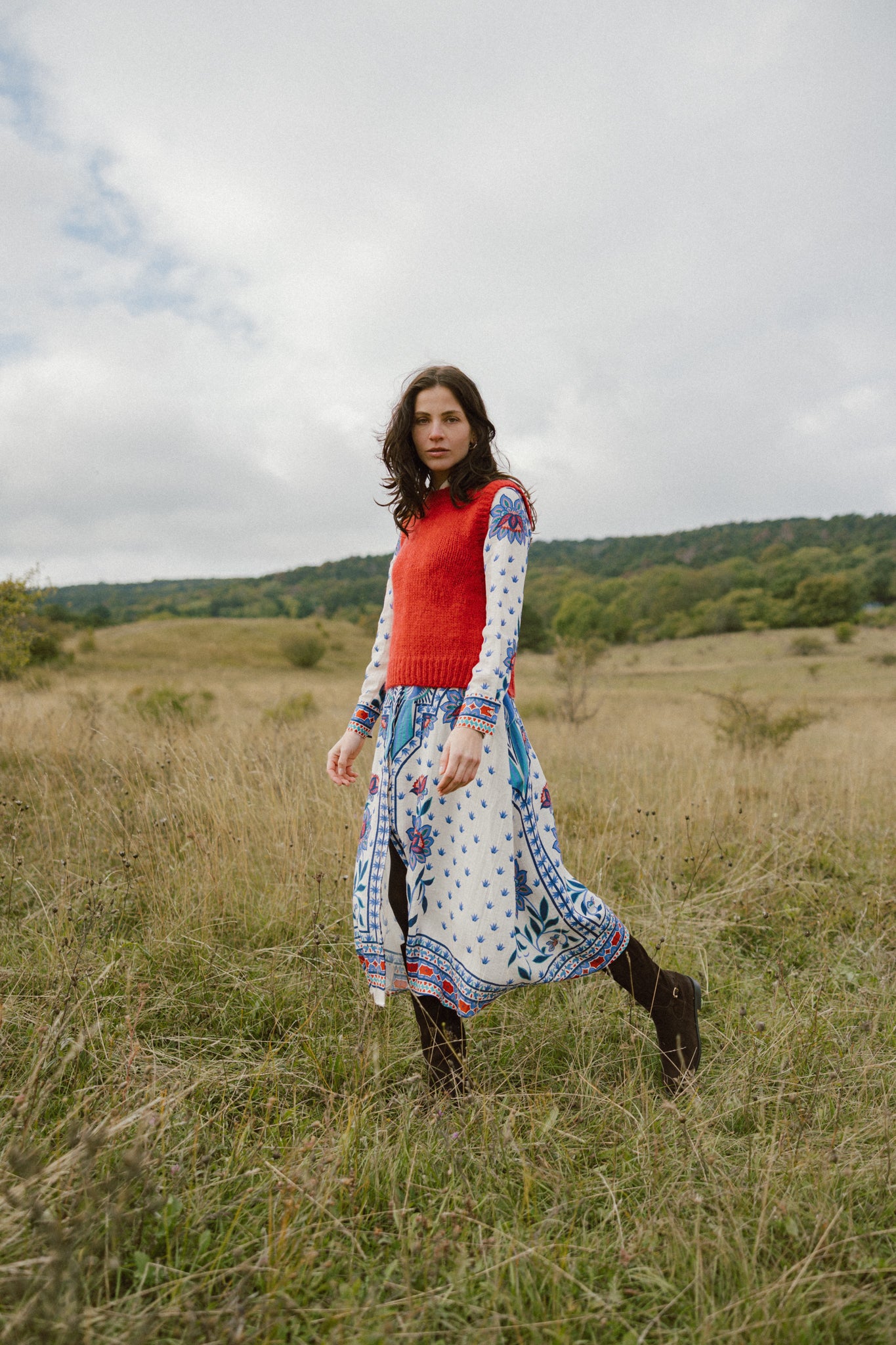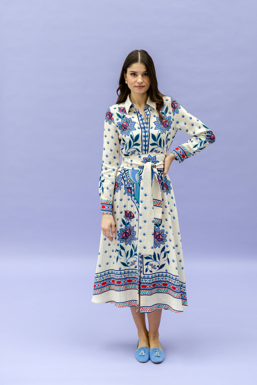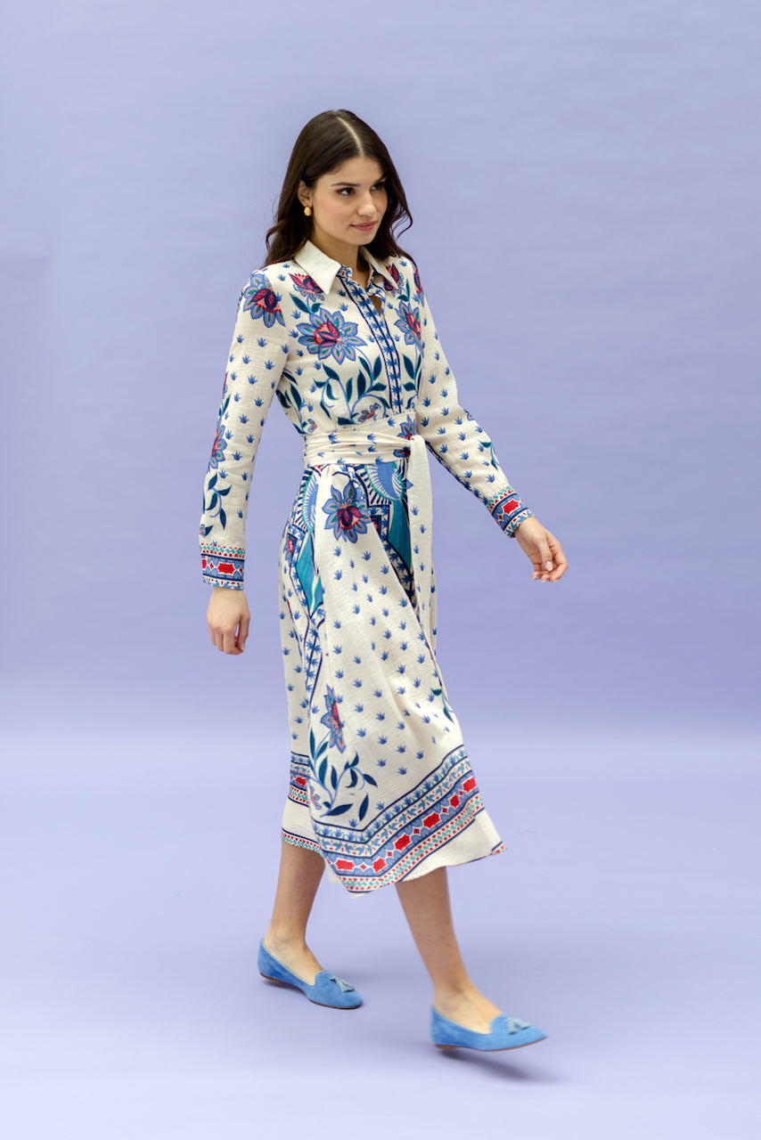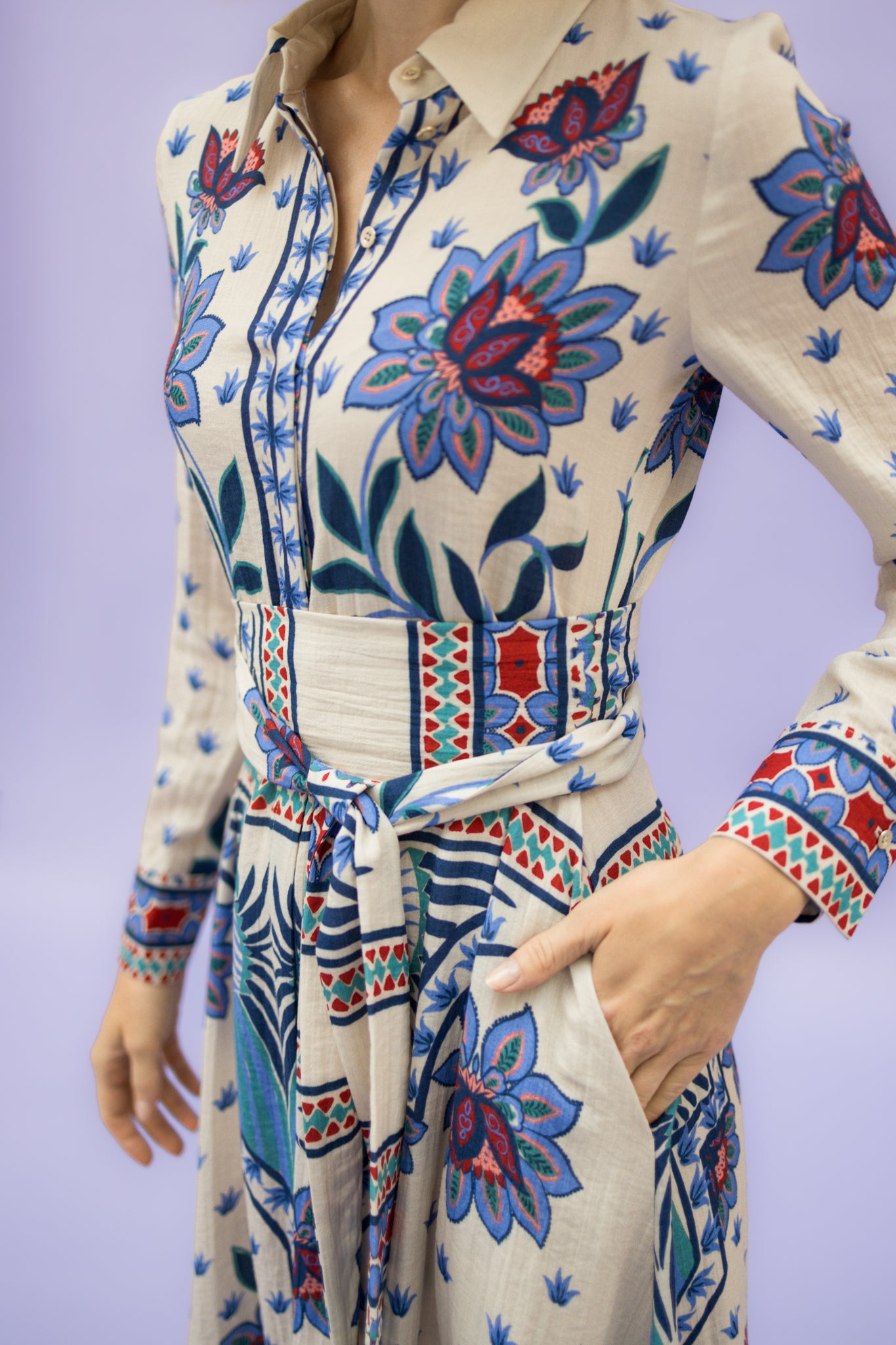 A shirt dress that makes dreams come true. It has pockets, a removable belt that can also be replaced with other JOHANNA belts. A midi dress that is elegant, chic and cozy at the same time. It is a flowing, soft, and airy fabric.