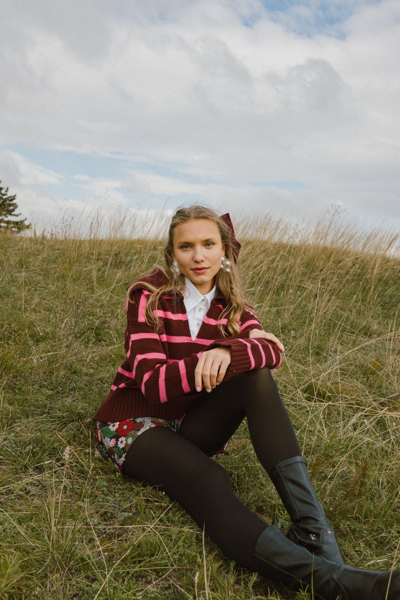 ALLEGRA strikes the perfect balance between casual chic and thoughtful details. The classic stripe pattern meets an open polo collar, adding a sporty yet elegant touch. Subtle slit details at the sleeves create a refined accent and give the piece that special something. Made from soft knit fabric, ALLEGRA offers exceptional comfort and effortless style. Whether paired with jeans for a relaxed look or dressed up with tailored trousers or skirts – this sweater is a true wardrobe favorite.
