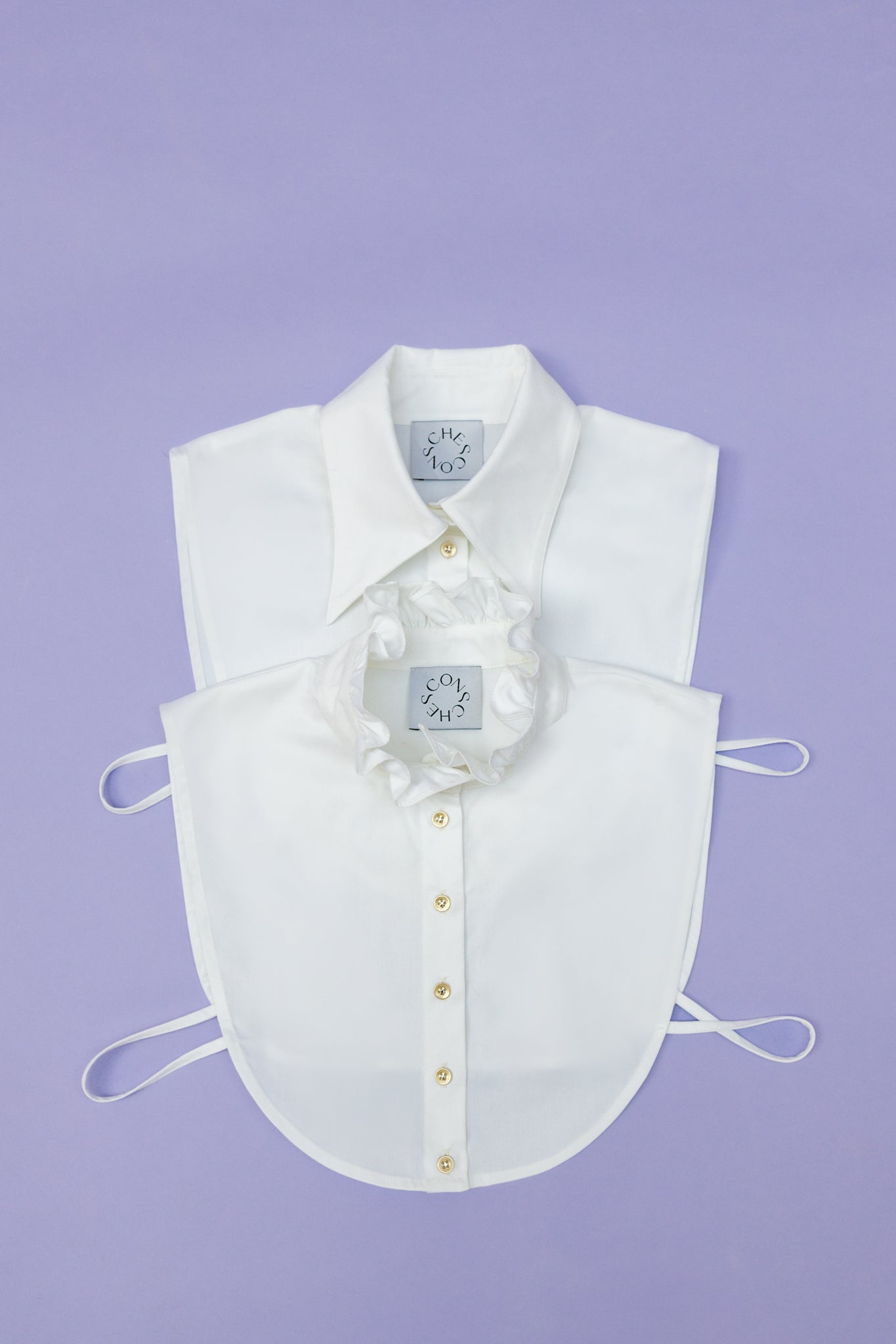 Our CHOUPETTE collars are the perfect addition to any outfit! Ideal for layering under dresses or our knit pieces, they add a stylish touch to your look. The classic collar design offers a timeless elegance, while the side ties ensure the collar stays securely in place. A must-have to give your outfit the perfect finishing touch!