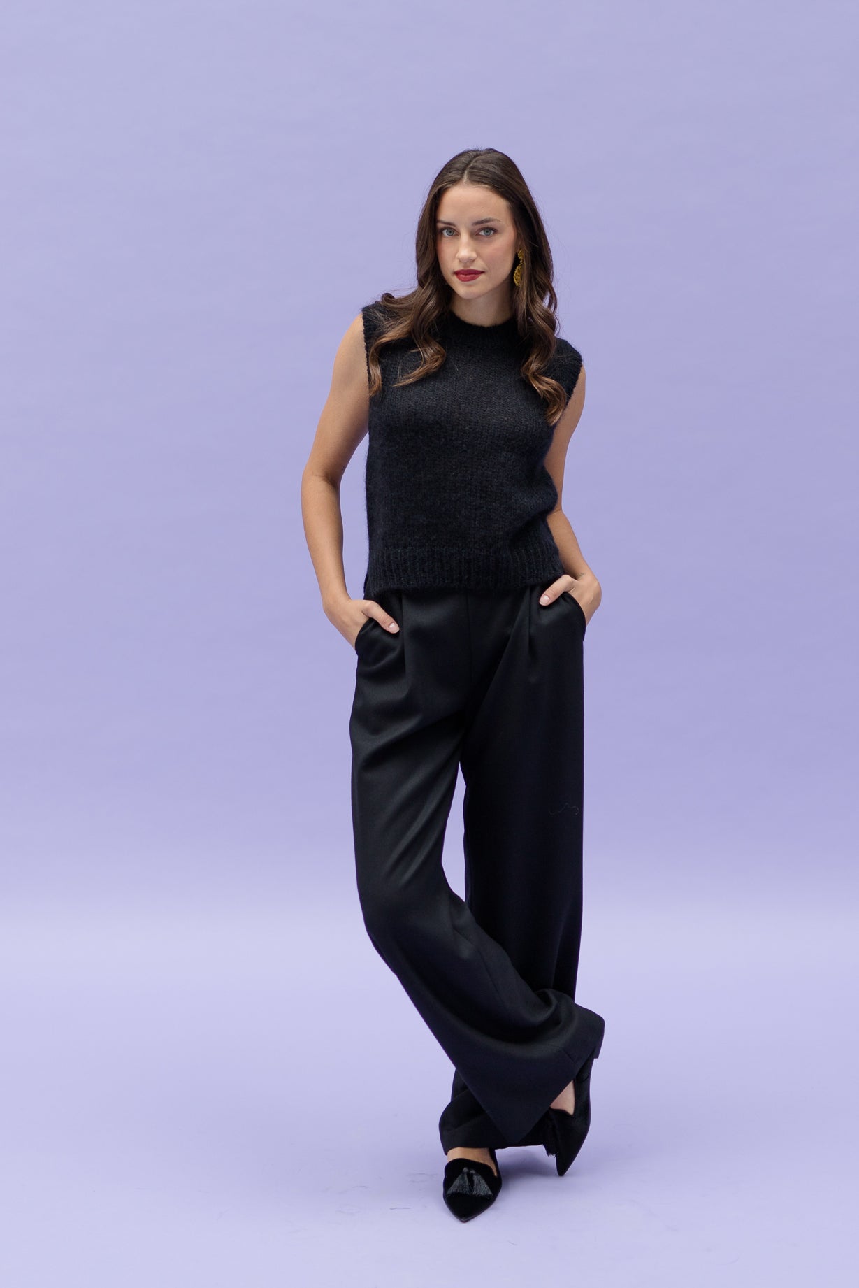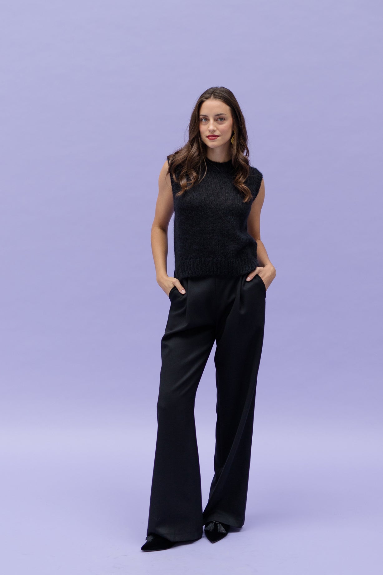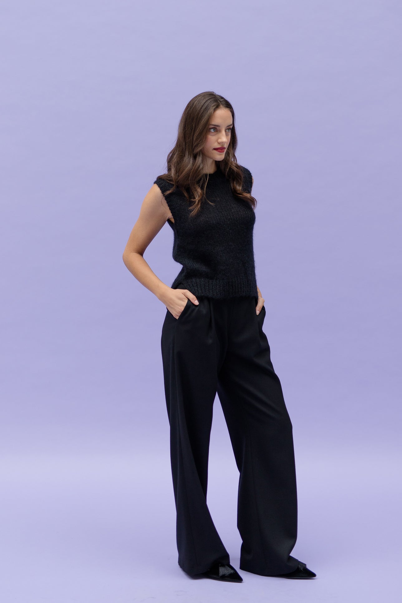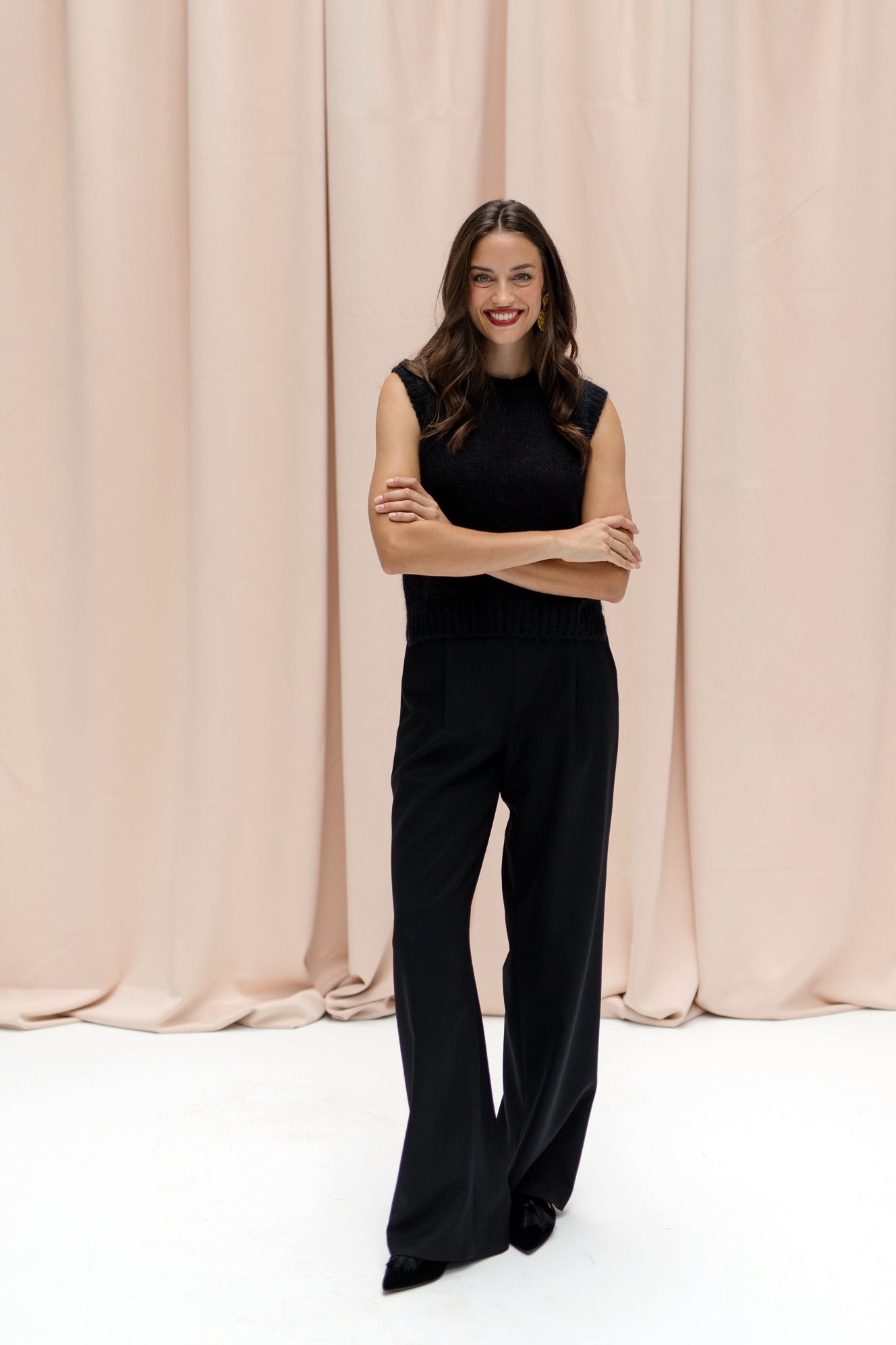 The CLEO is a chic, extra-long version of our beloved classic SHORTY. With a flattering pleated waistband and an elegant, flared leg, it offers a stylish yet comfortable fit. The side zipper adds a sophisticated detail, making it the perfect choice for a relaxed yet polished look.