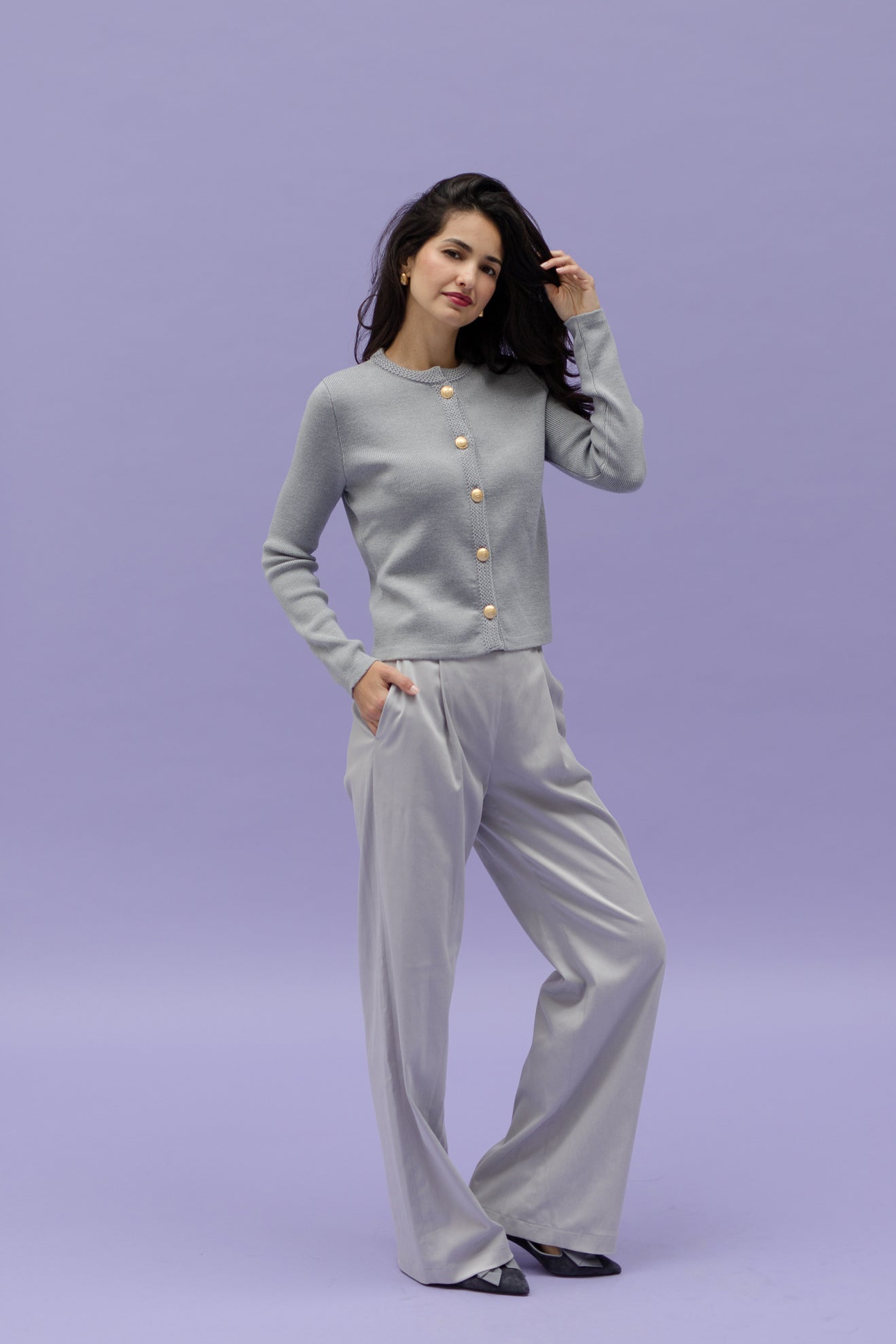 The CLEO is a chic, extra-long version of our beloved classic SHORTY. With a flattering pleated waistband and an elegant, flared leg, it offers a stylish yet comfortable fit. The side zipper adds a sophisticated detail, making it the perfect choice for a relaxed yet polished look.