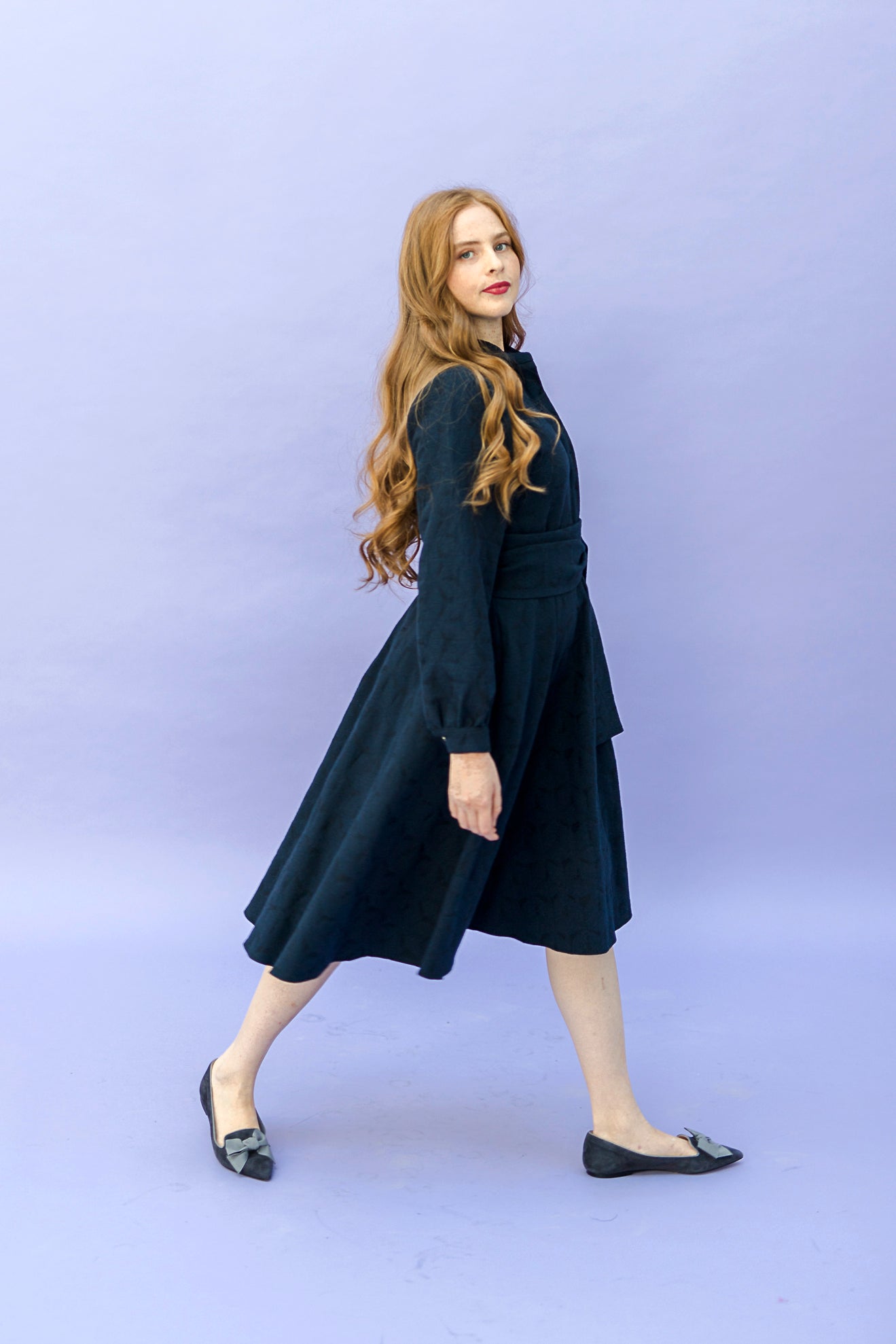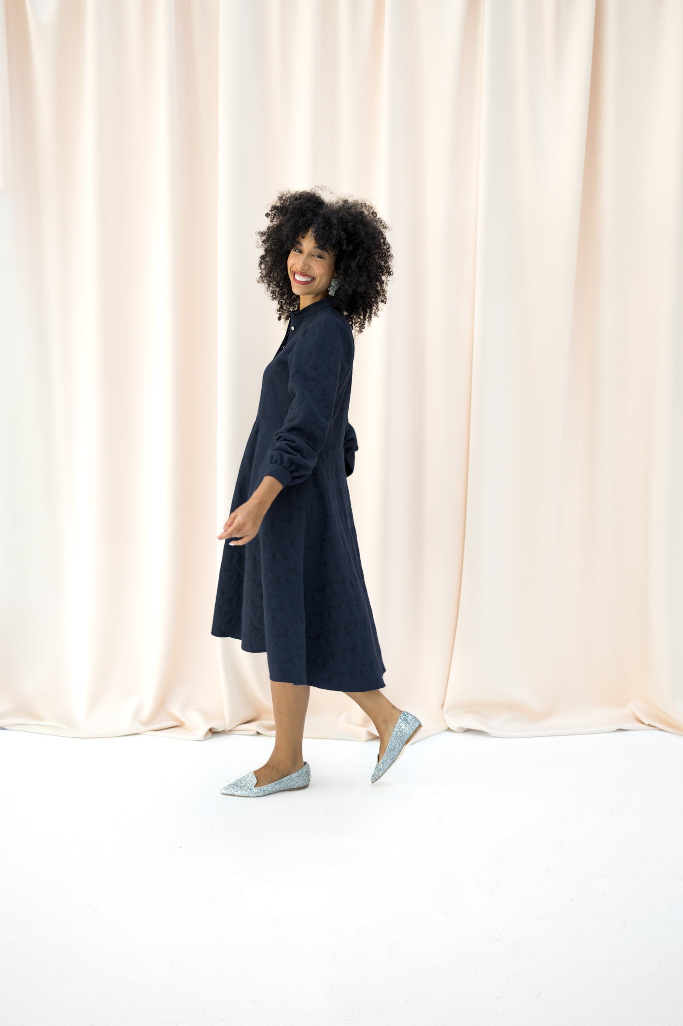 DORA is going to be your new everyday dress. It's perfect for the office, your business lunch as well as dinner with friends right after. It is an everyday, 365-days-a-year kind of dress and easily dressed up or down. The loose fit and below-the-knees-length will make you feel comfortable in every situation. You can roll up the sleeves or unbutton it to make it fit your style. Comes without the belt.