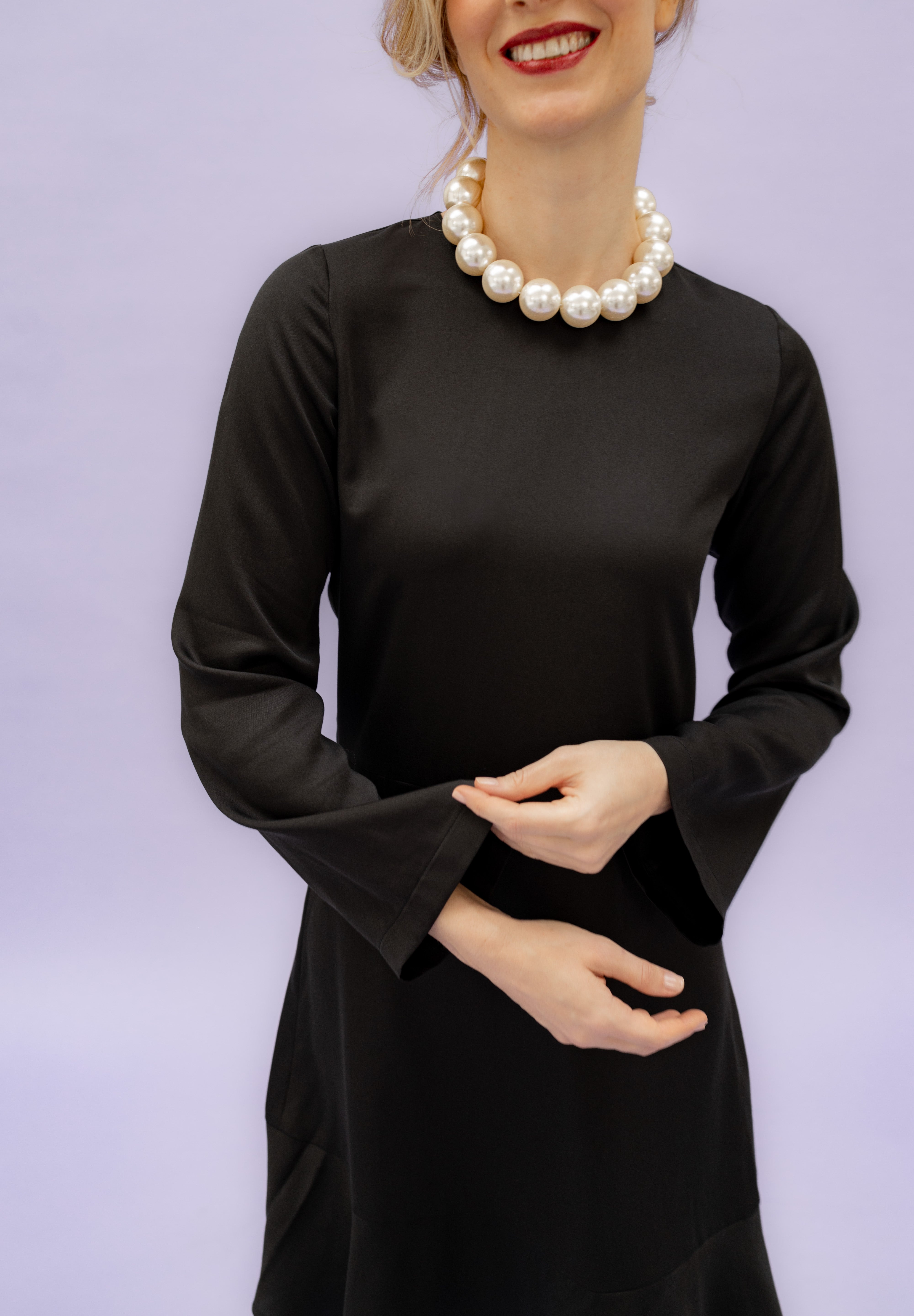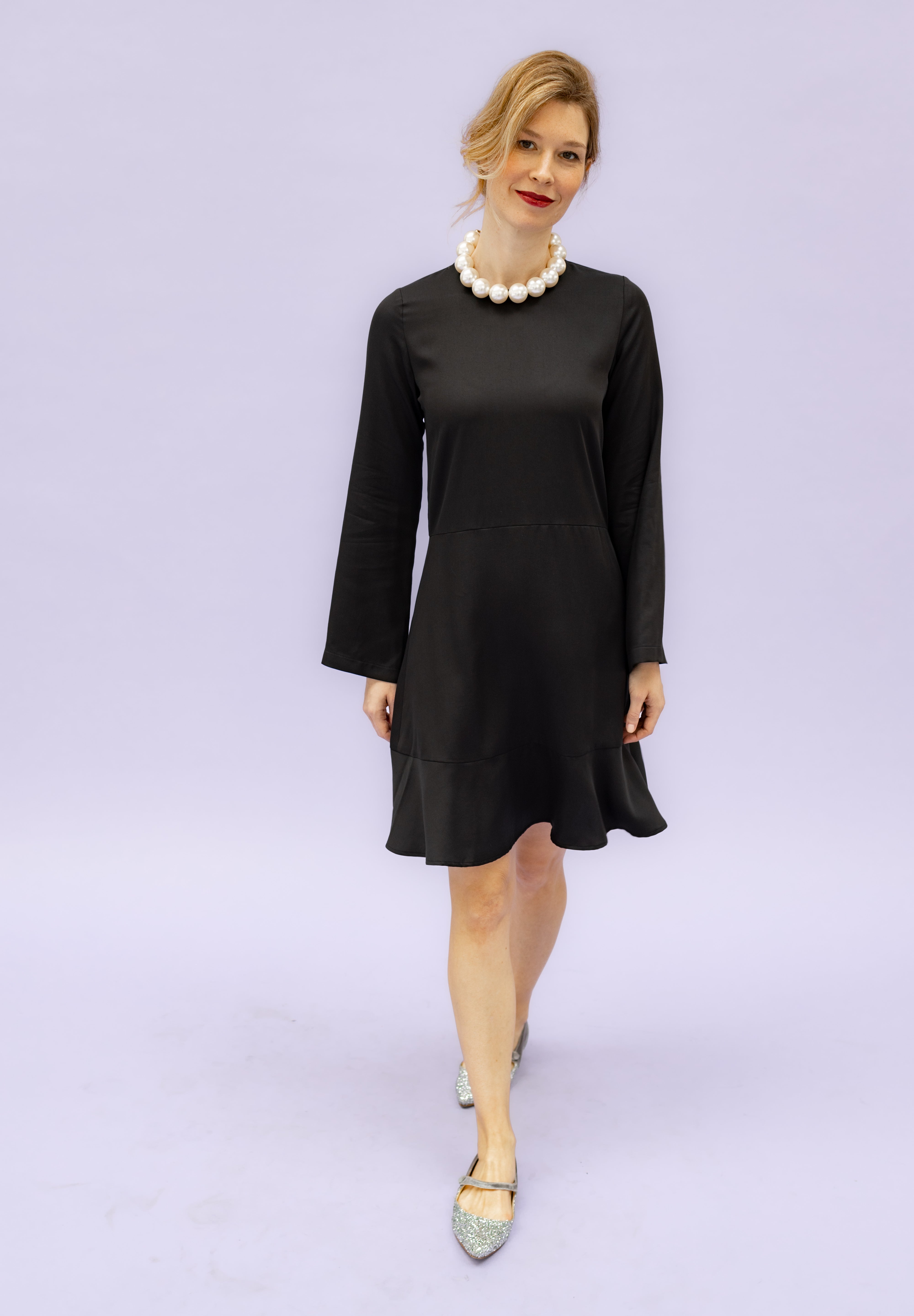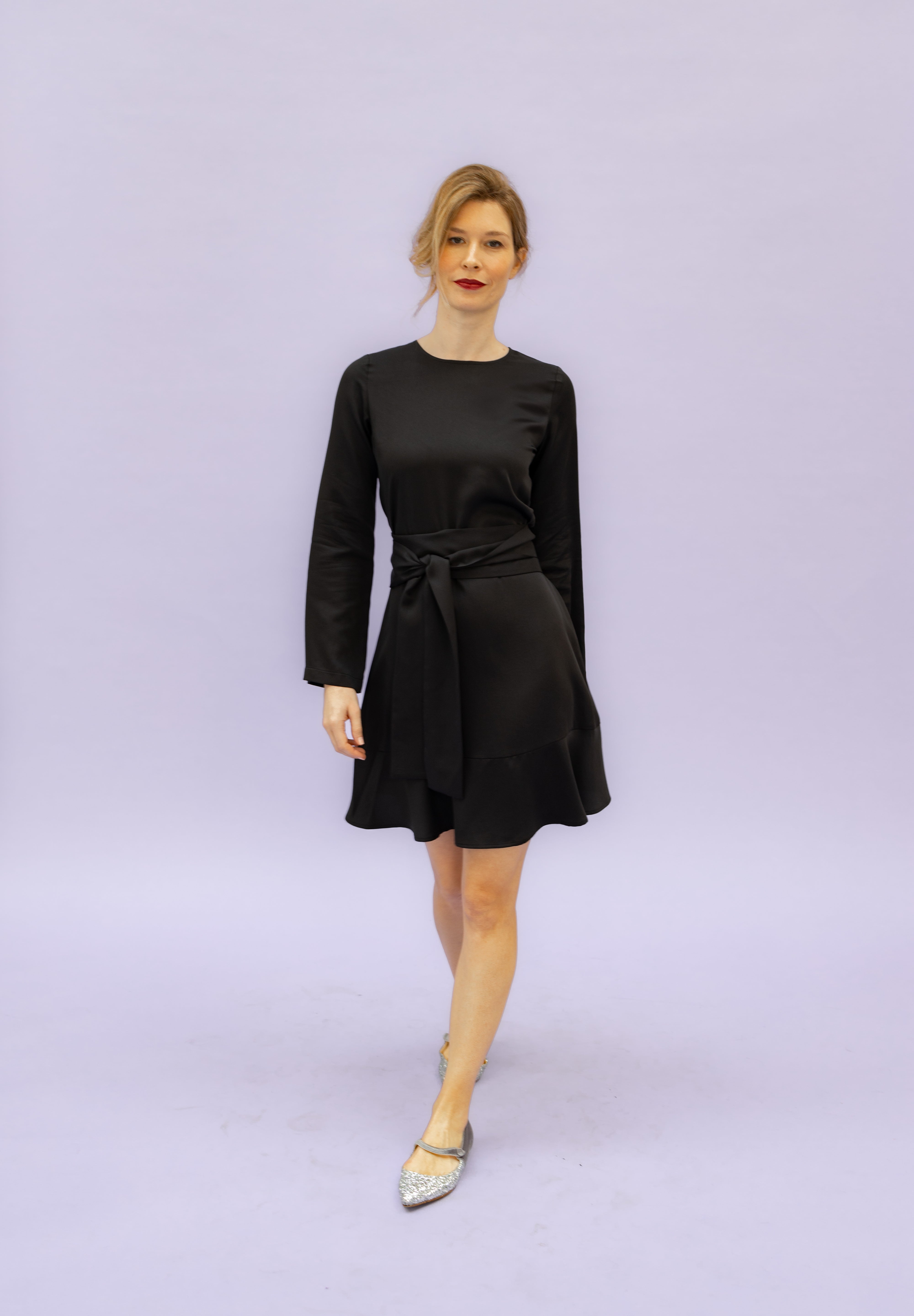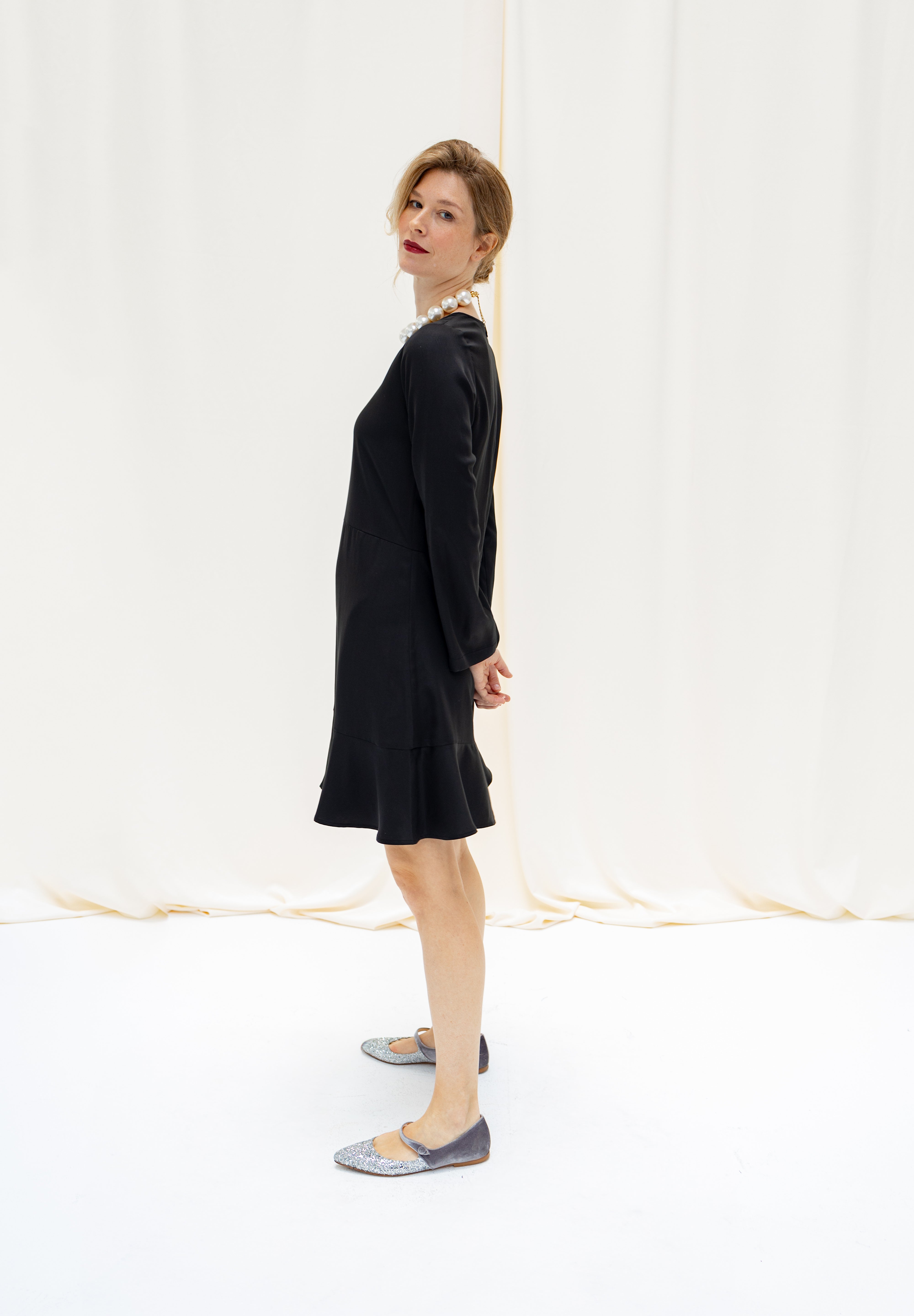GINA is a stylish, knee-length dress that perfectly accentuates the figure with its elegant waist seam. The flounce skirt adds a feminine and playful touch, bringing graceful movement and lightness to the look. Ideal for various occasions, it combines timeless elegance with a modern, refined cut. The soft lines flatter the silhouette, making GINA a versatile choice for any event. It can also be beautifully styled with the matching belt for an extra polished finish. You find the matching belts here.