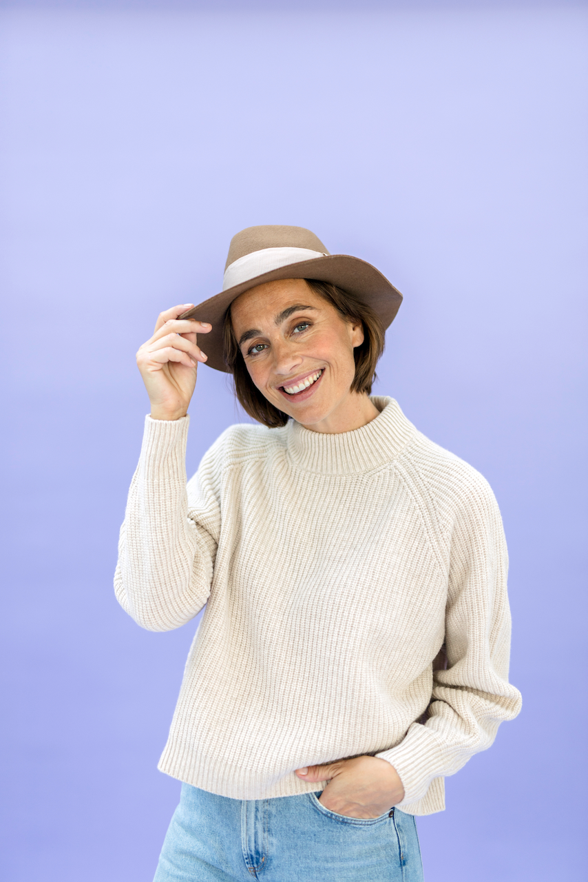 GRETA is a knit sweater straight from heaven, the ultimate gift of warmth for any of your cold winter days. Made with 100% extra fine merino wool, GRETA will keep you warm and cozy for many years. With its classic design you can wear it with everything for added warmth. GRETA has a perfect fit to keep you warm & cosy all winter long.