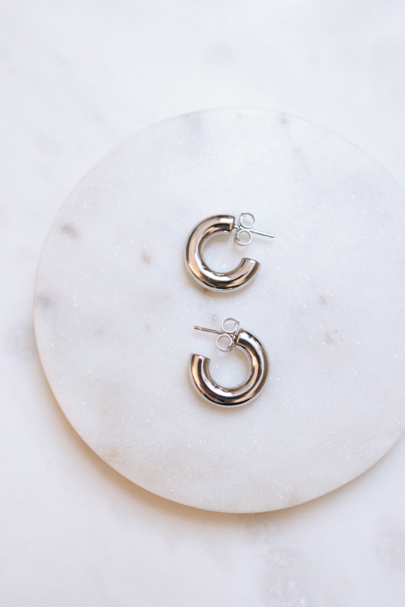 Elegant hoops crafted from rhodium-plated 925 sterling silver. Simple, versatile, and perfect for everyday wear, these hoops are a subtle yet striking addition to any jewelry collection. Approximately 2 cm long.