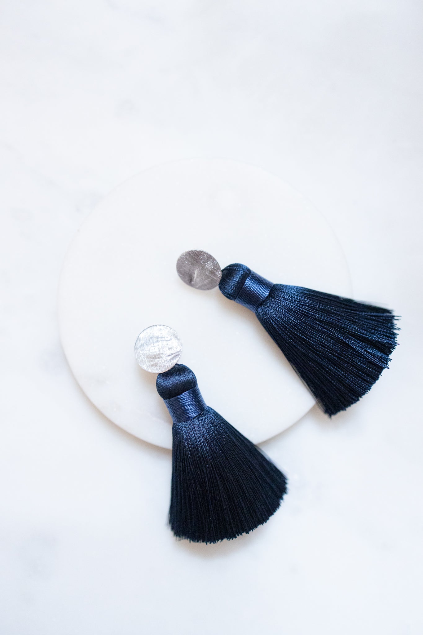 Wonderful precious earrings made of 925 sterling silver and nickel free, the tassel is made of silk.