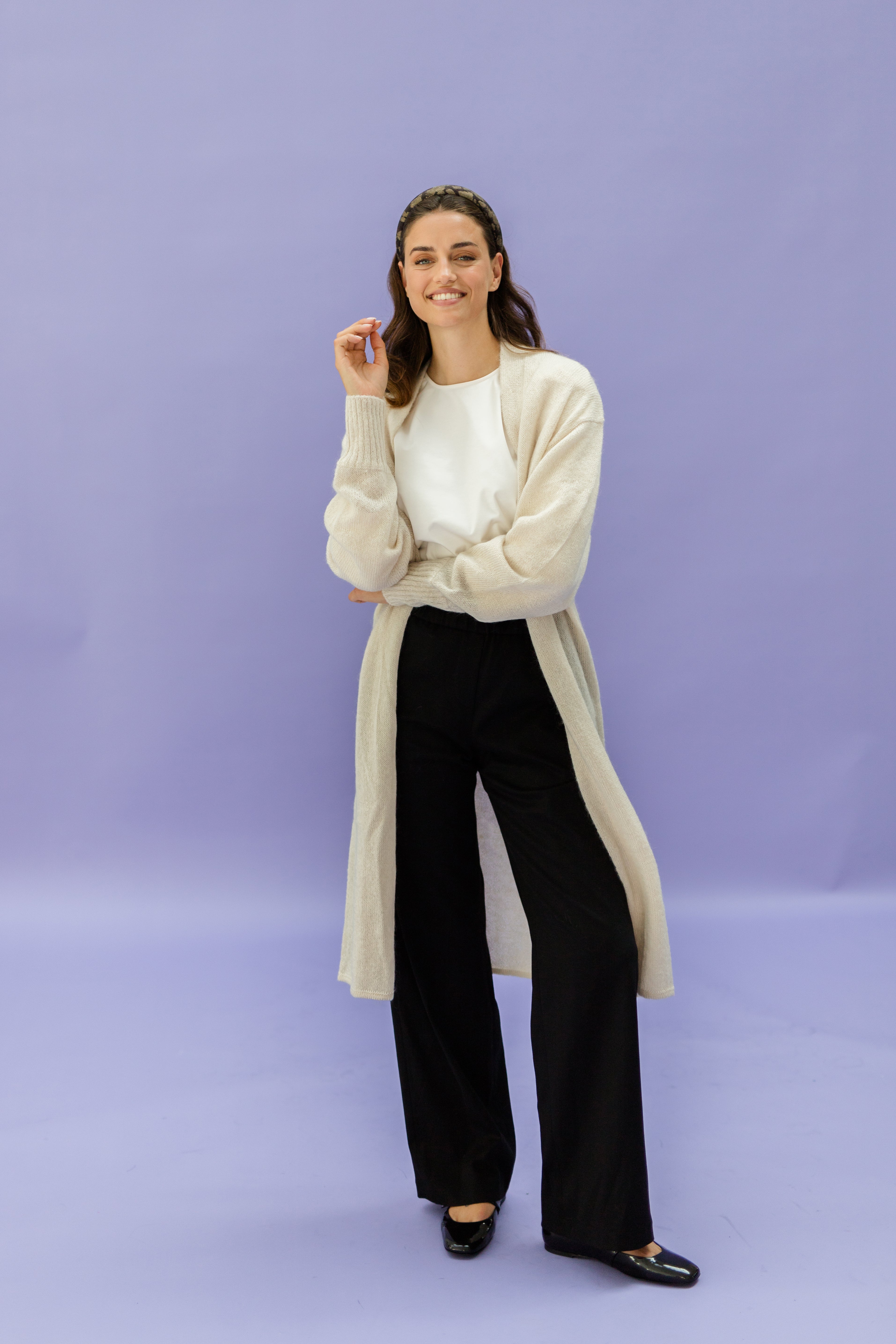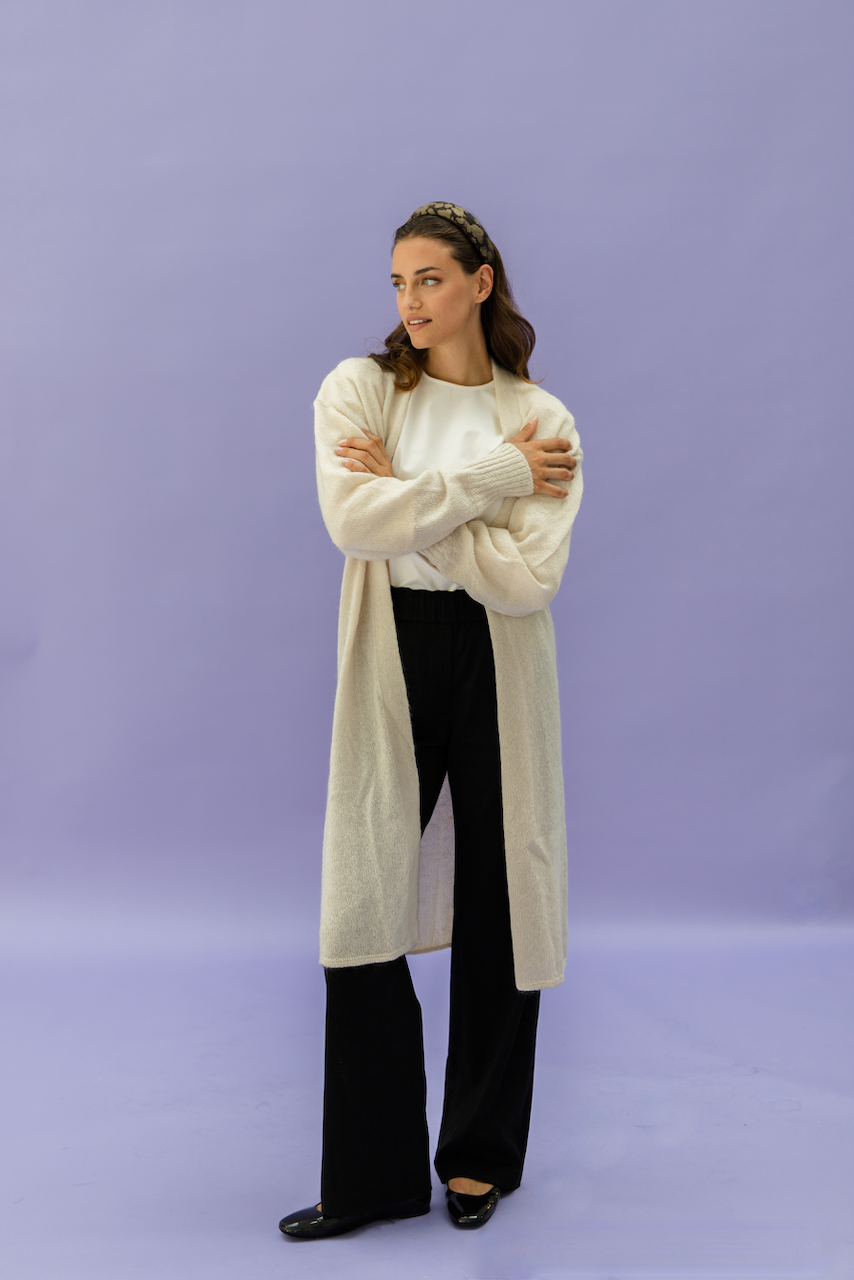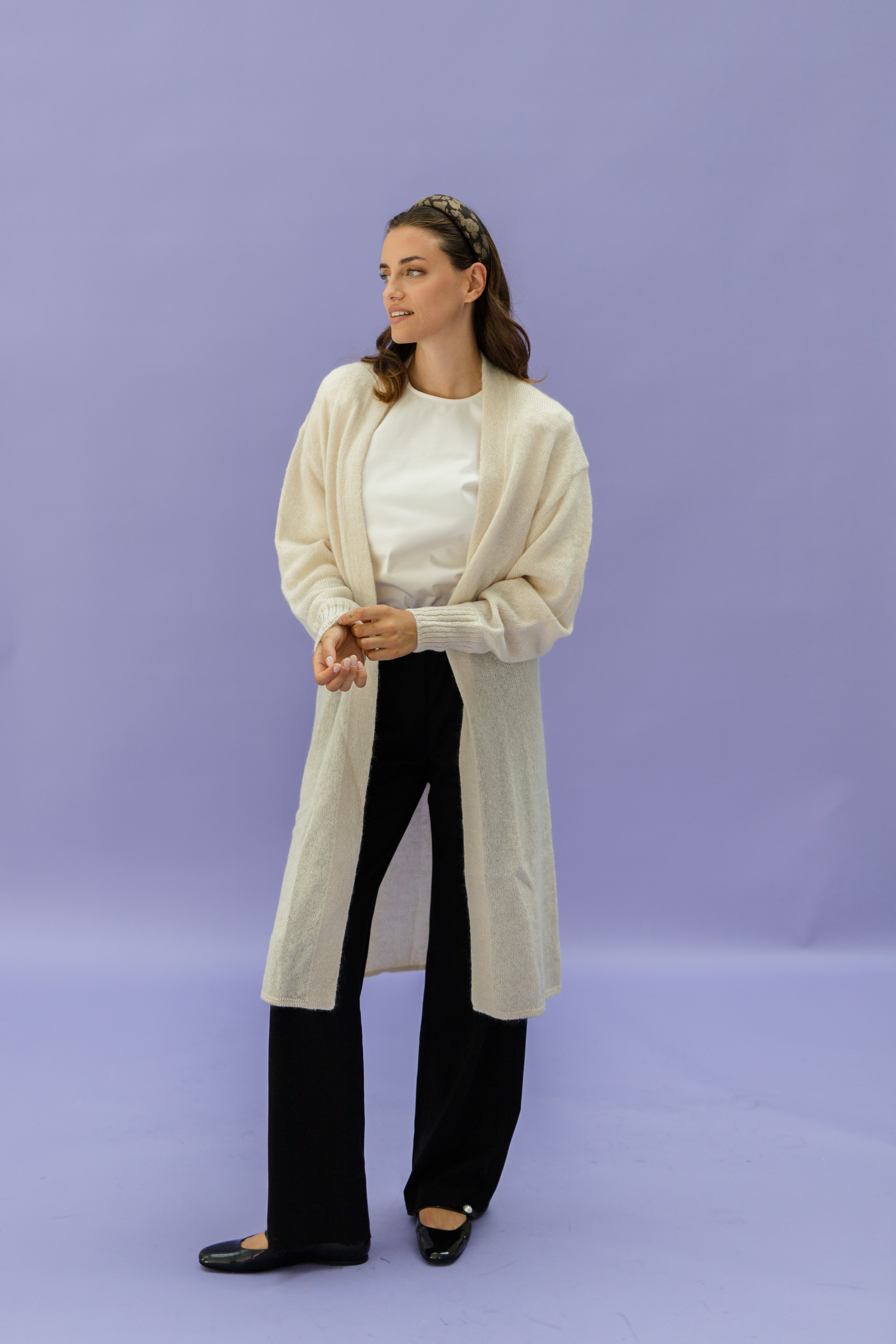 JOJO is a long cardigan with balloon sleeves straight from heaven, the ultimate gift of warmth for any of your cold winter days. Layer it over anything for added warmth. JOJO has a perfect fit to keep you warm & cosy all winter long.