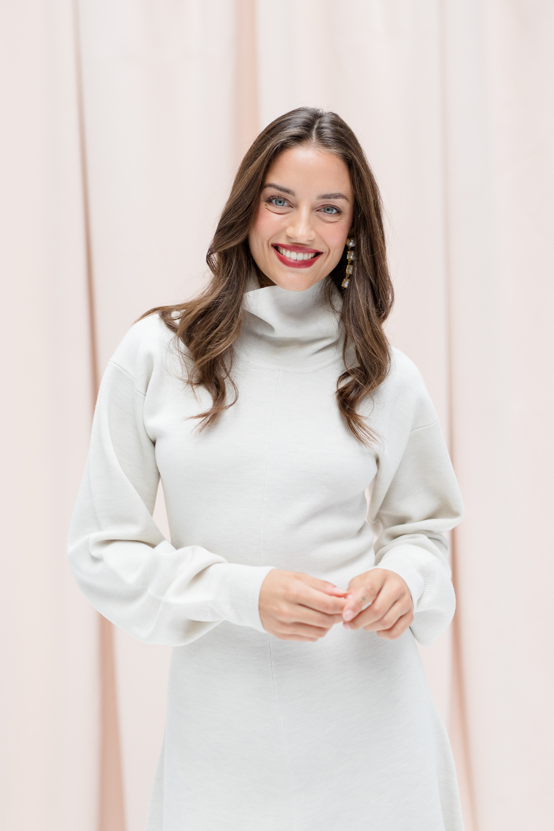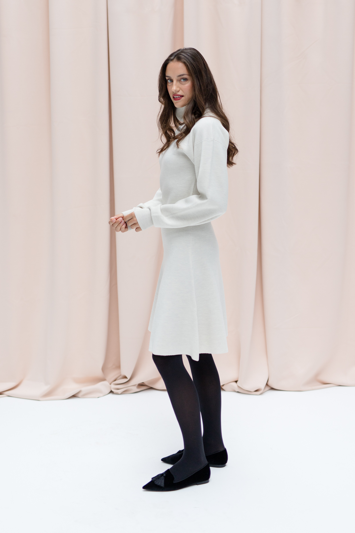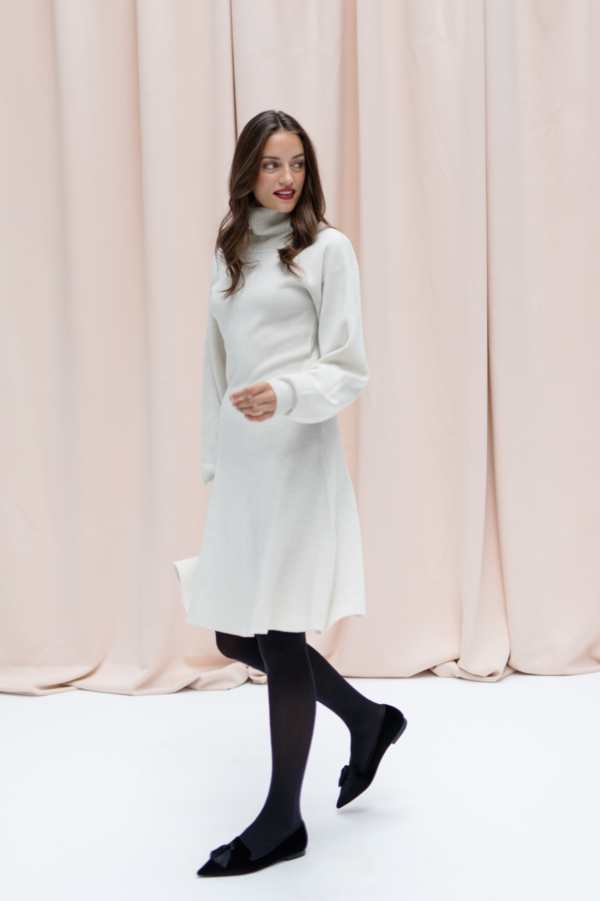 With KATE, we proudly present our very first knit dress – an elegant all-rounder that perfectly blends comfort and style. The stand-up collar adds a clean, modern touch, while the balloon sleeves bring a hint of drama. Its A-line silhouette gently skims the knees, offering a flattering and feminine fit. Made from soft, shape-retaining knit fabric, KATE not only feels incredibly comfortable but also opens up countless styling options.