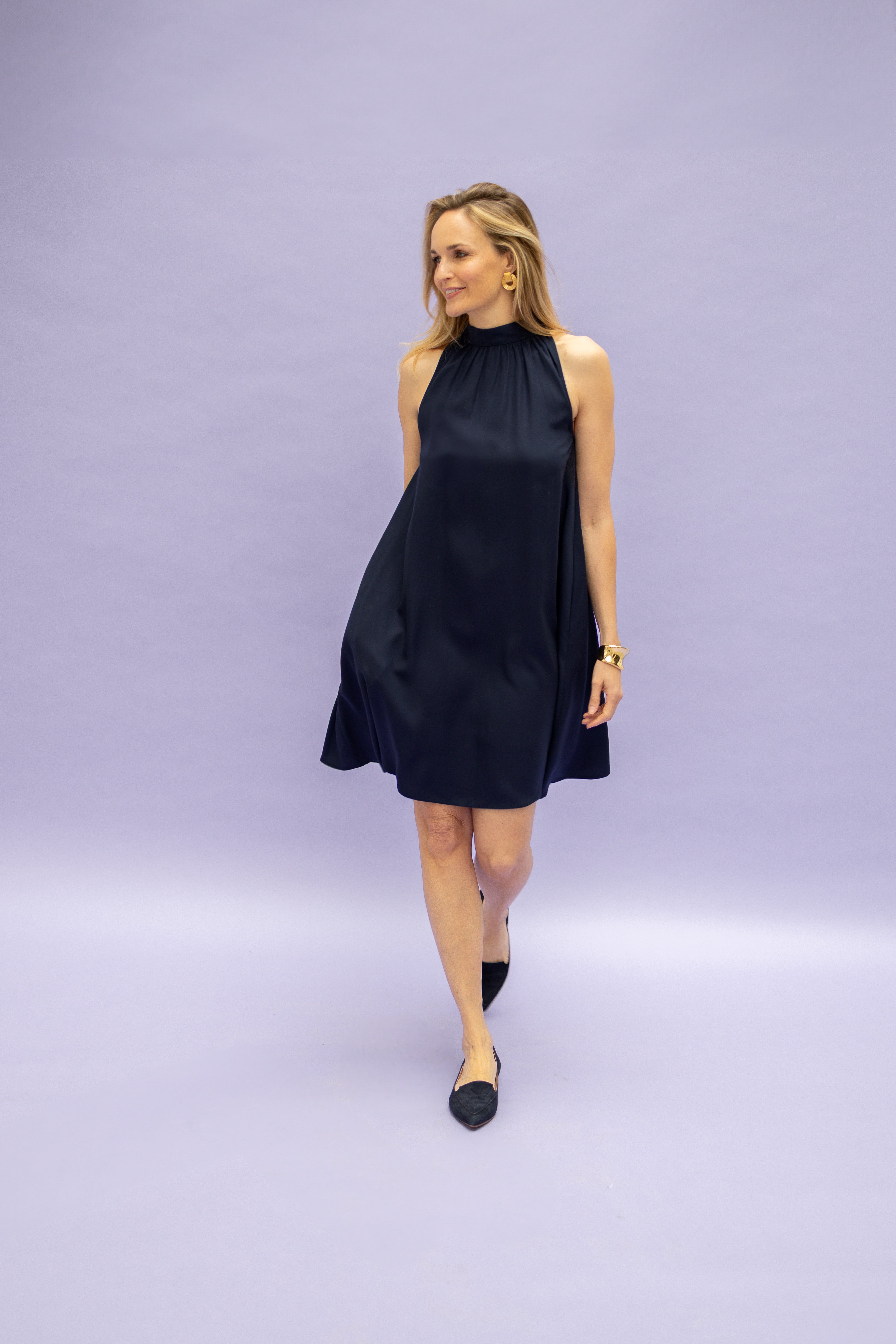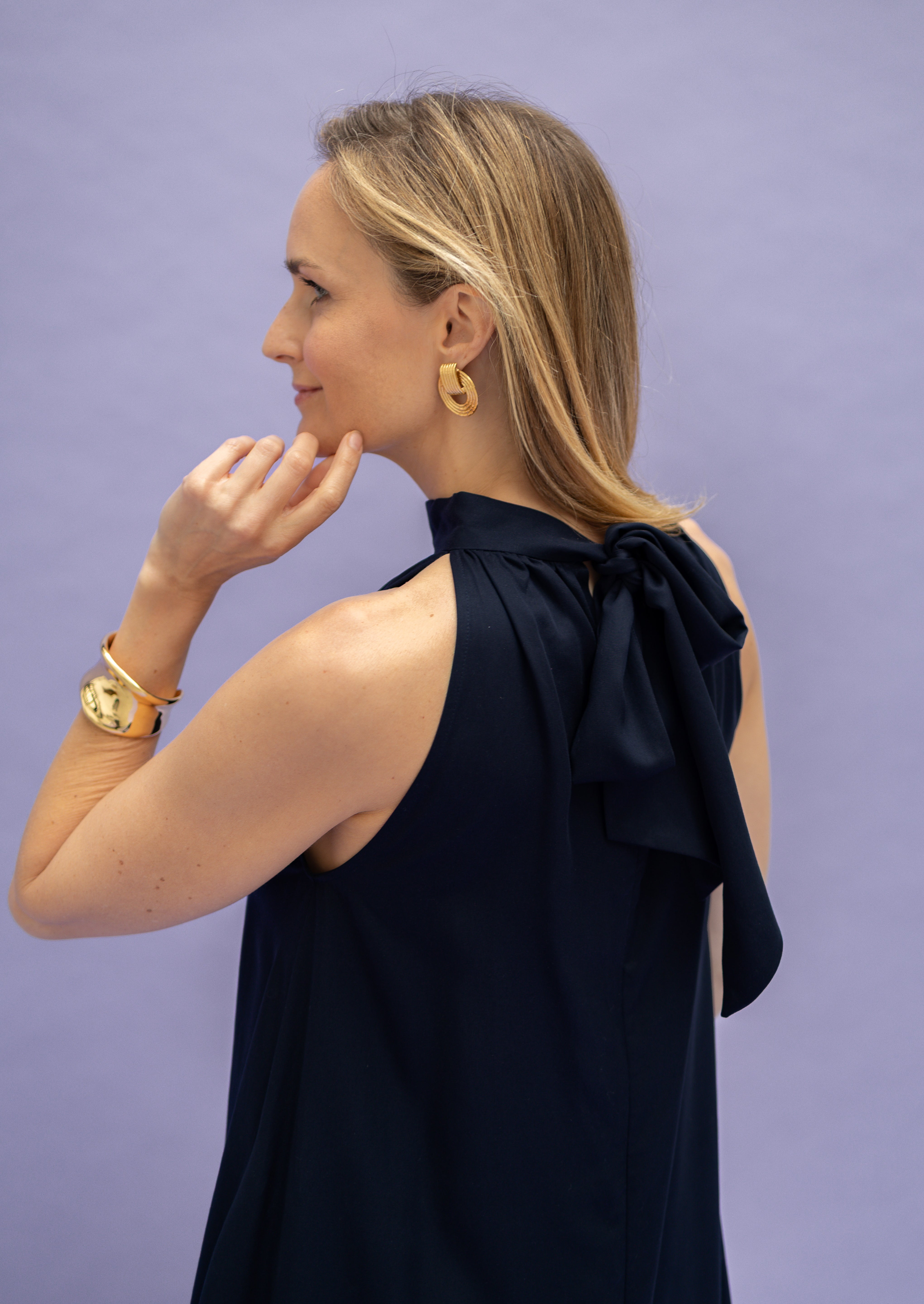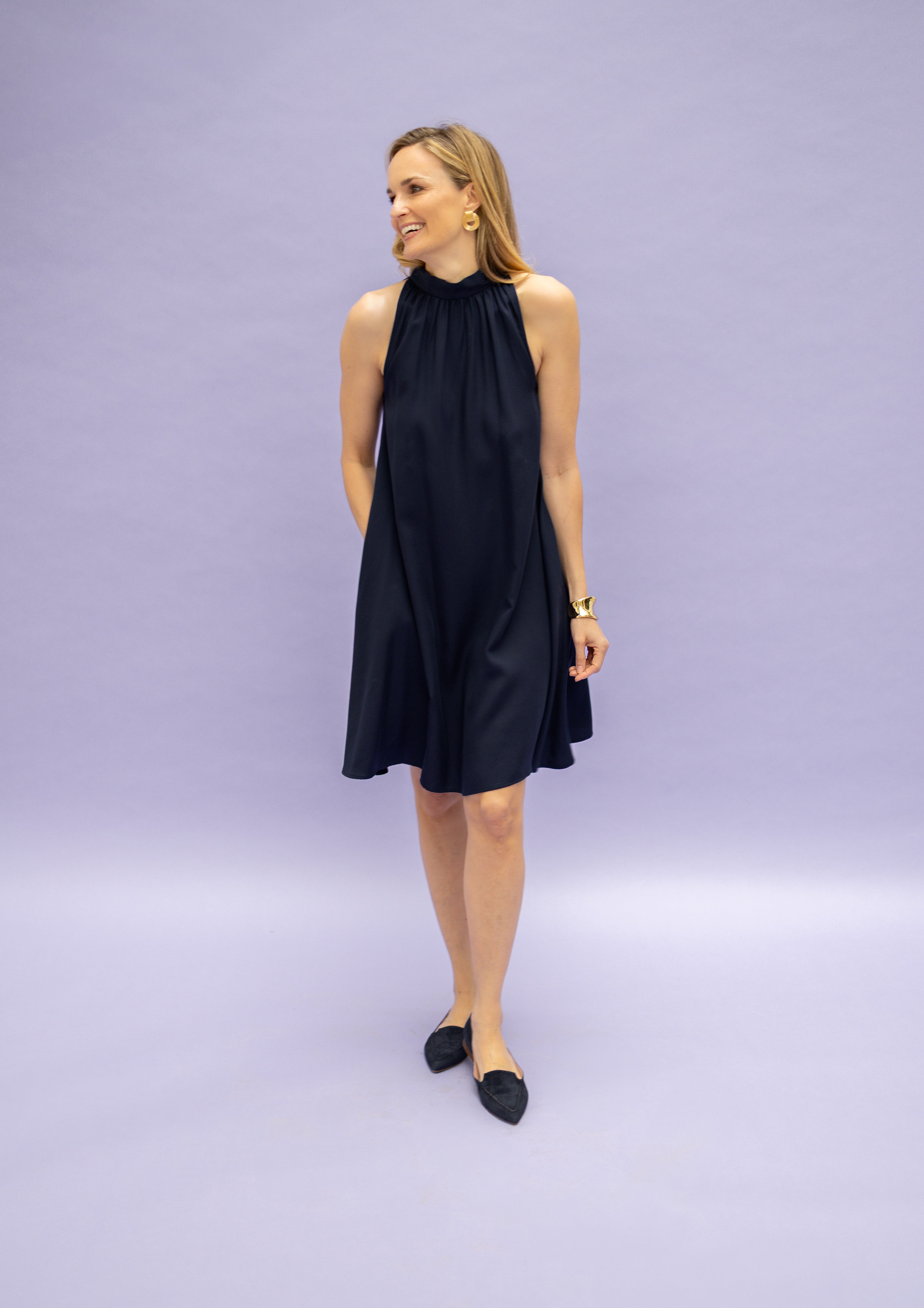 KATIE is the chic, playful counterpart to our beloved FRANCESCA gown. Designed with the same attention to elegance and detail, this sleeveless A-line dress features soft gathering at the neckline and a sweet bow accent at the back for a touch of charm. The ruffle inserts along the side seams add volume and movement, bringing a flirty flair to the shorter silhouette.Its lightweight, flowing fabric moves beautifully with you. Perfect for cocktail parties, garden weddings, and any event where sophistication meets fun.