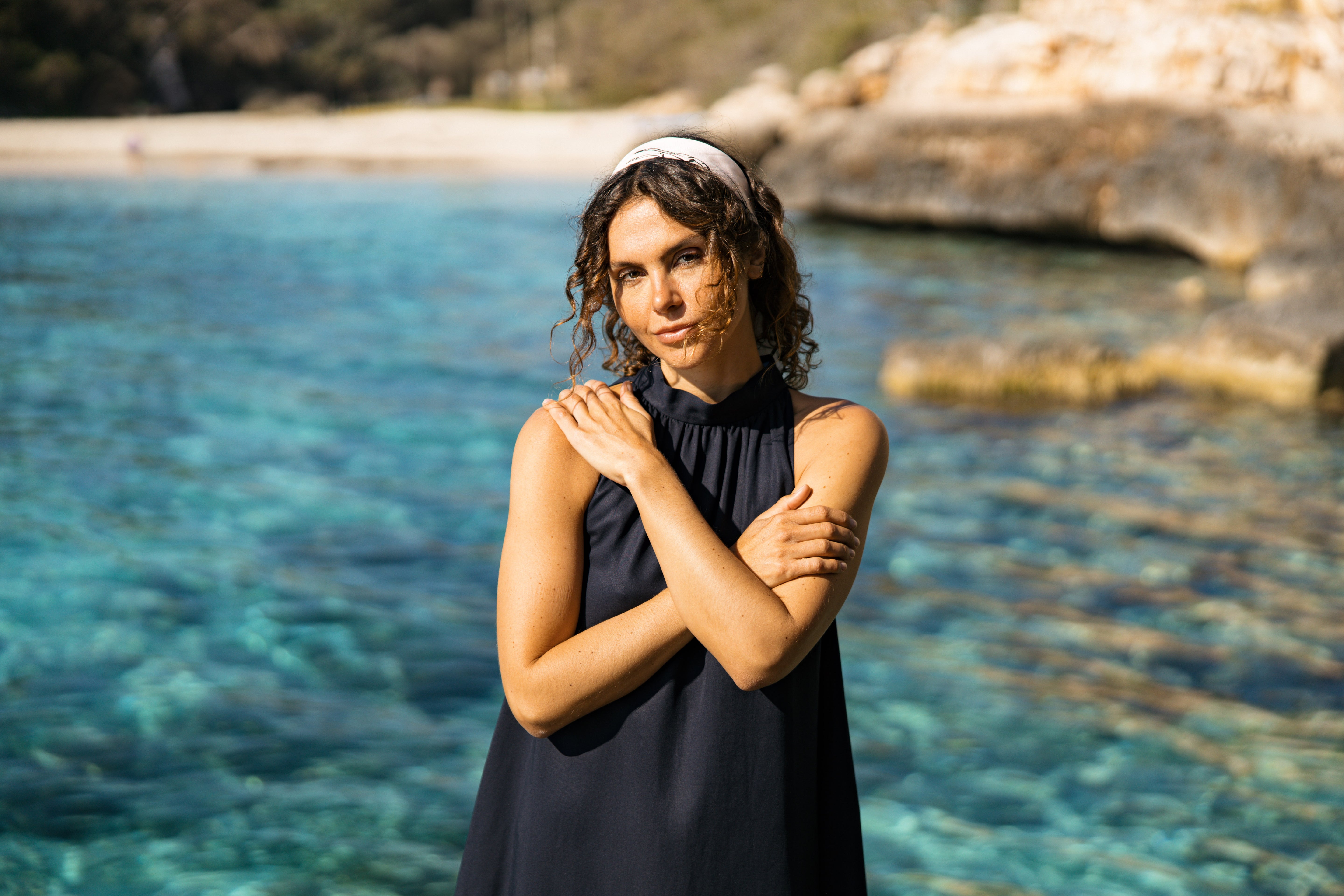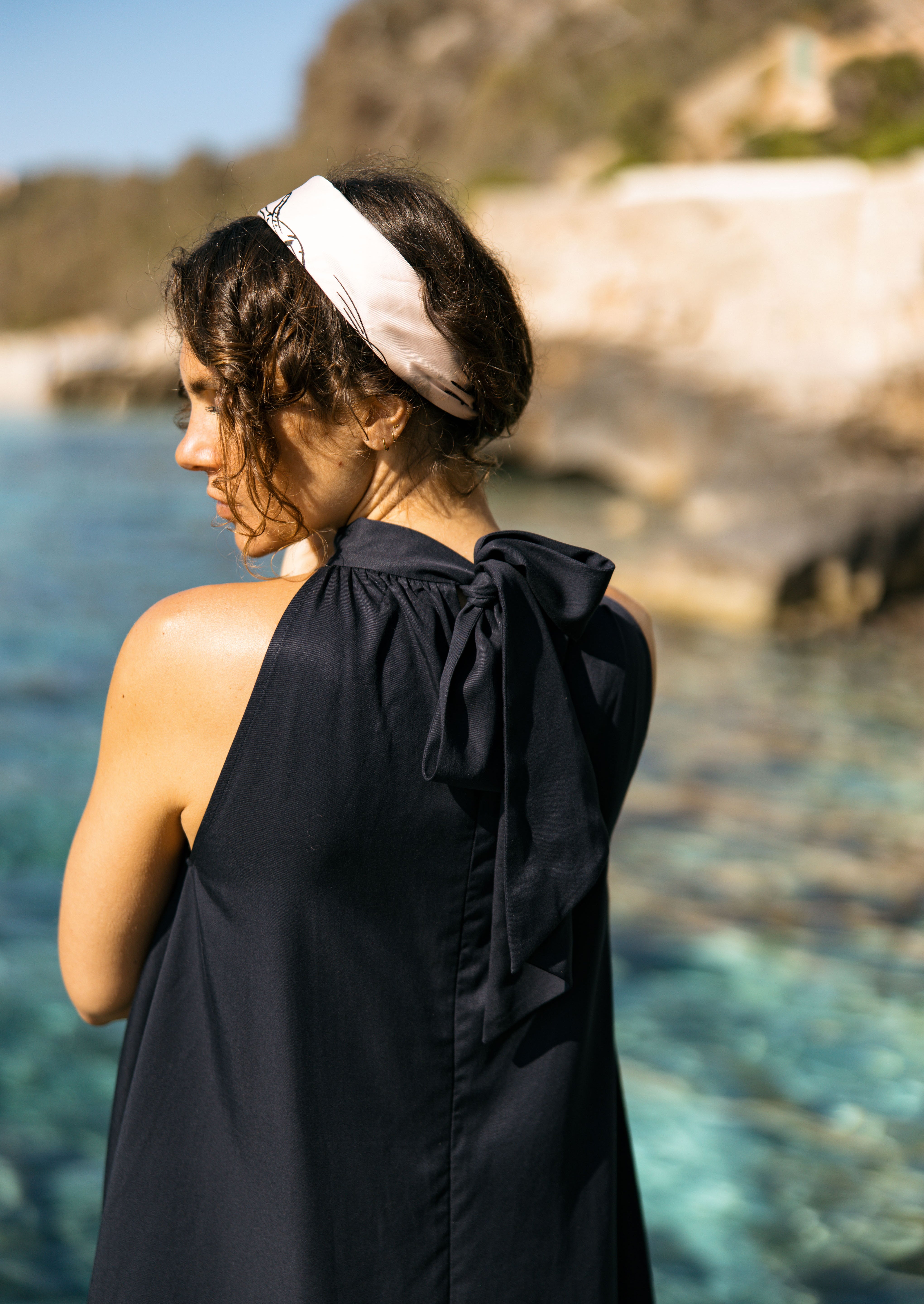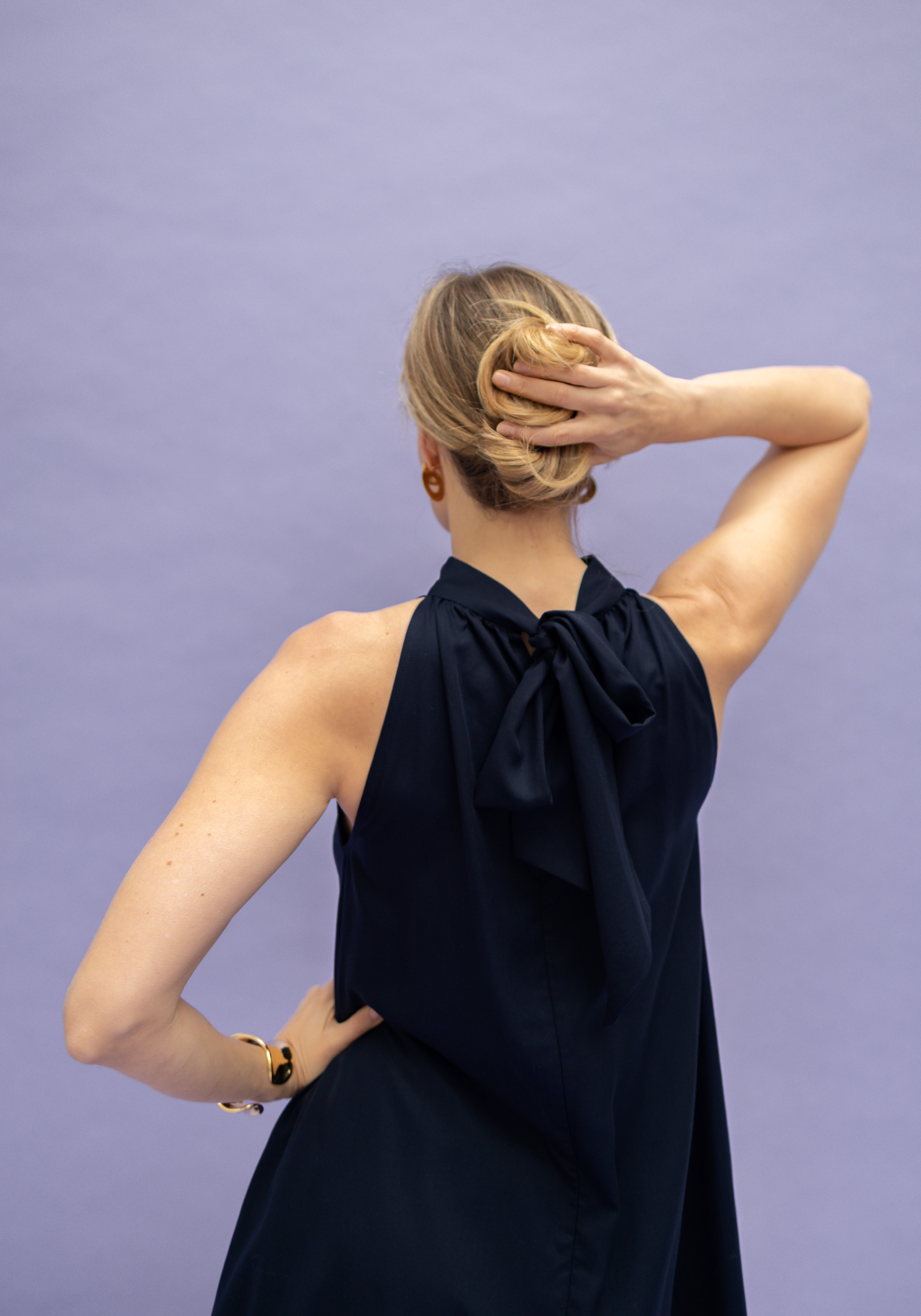KATIE is the chic, playful counterpart to our beloved FRANCESCA gown. Designed with the same attention to elegance and detail, this sleeveless A-line dress features soft gathering at the neckline and a sweet bow accent at the back for a touch of charm. The ruffle inserts along the side seams add volume and movement, bringing a flirty flair to the shorter silhouette.Its lightweight, flowing fabric moves beautifully with you. Perfect for cocktail parties, garden weddings, and any event where sophistication meets fun.