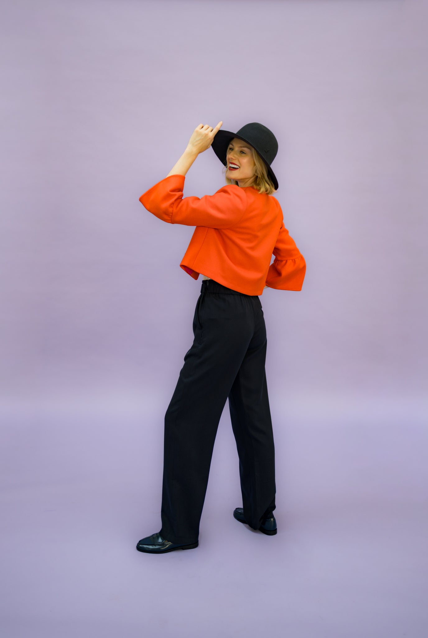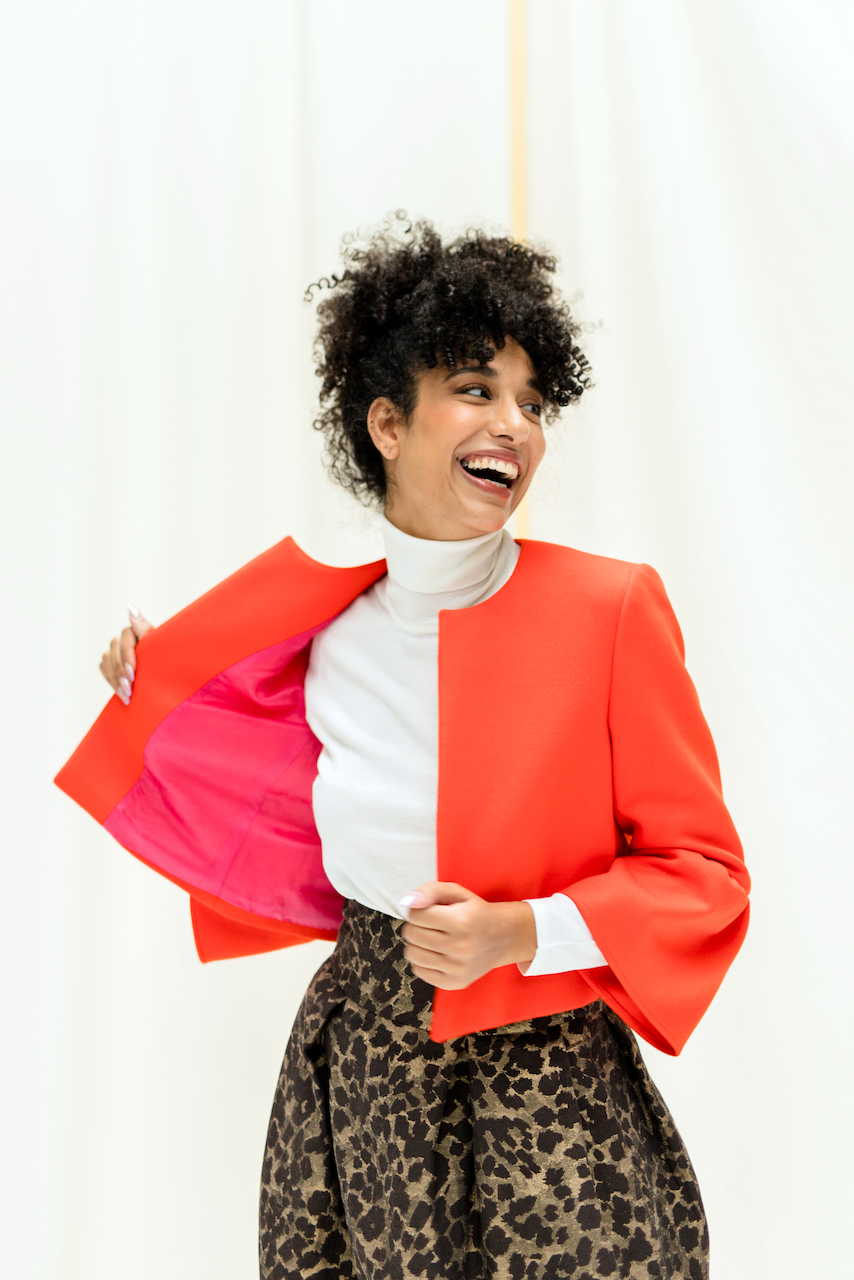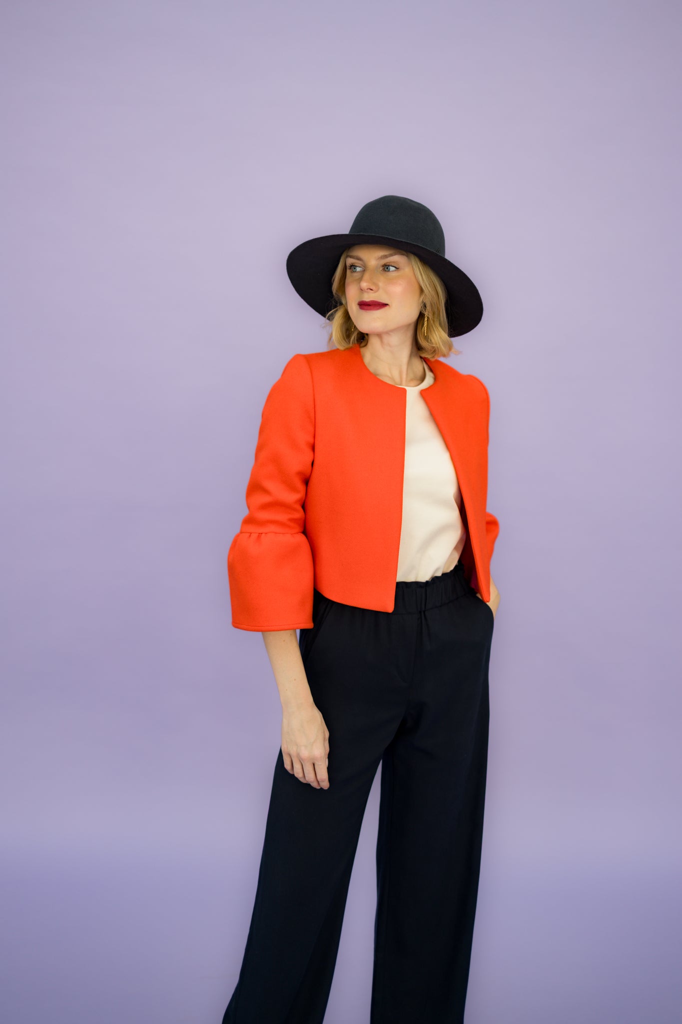 This open-front, short blazer is designed to add a touch of sophistication to any outfit. Featuring a playful pink lining and flounced sleeves, it combines elegance with a hint of fun. Perfect for both professional and casual settings, the KIM Blazer is your go-to piece for effortless style.