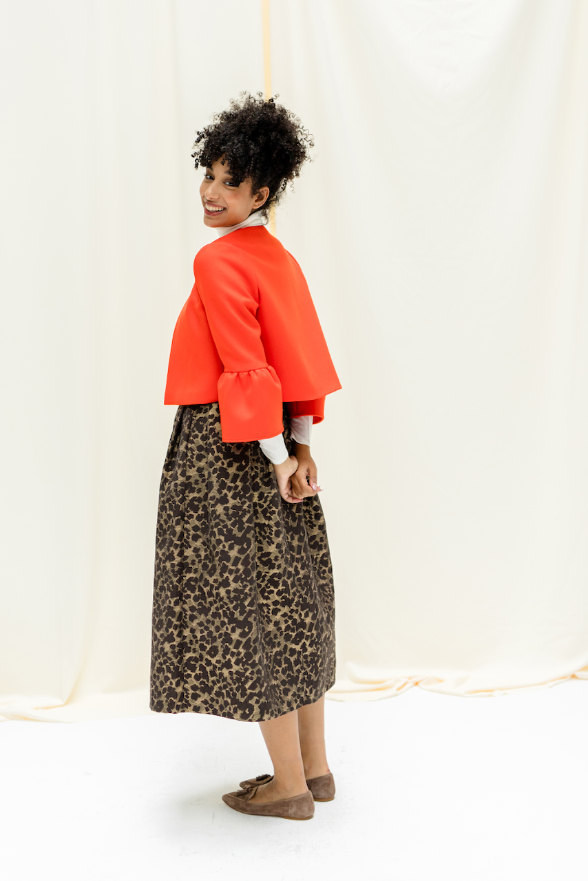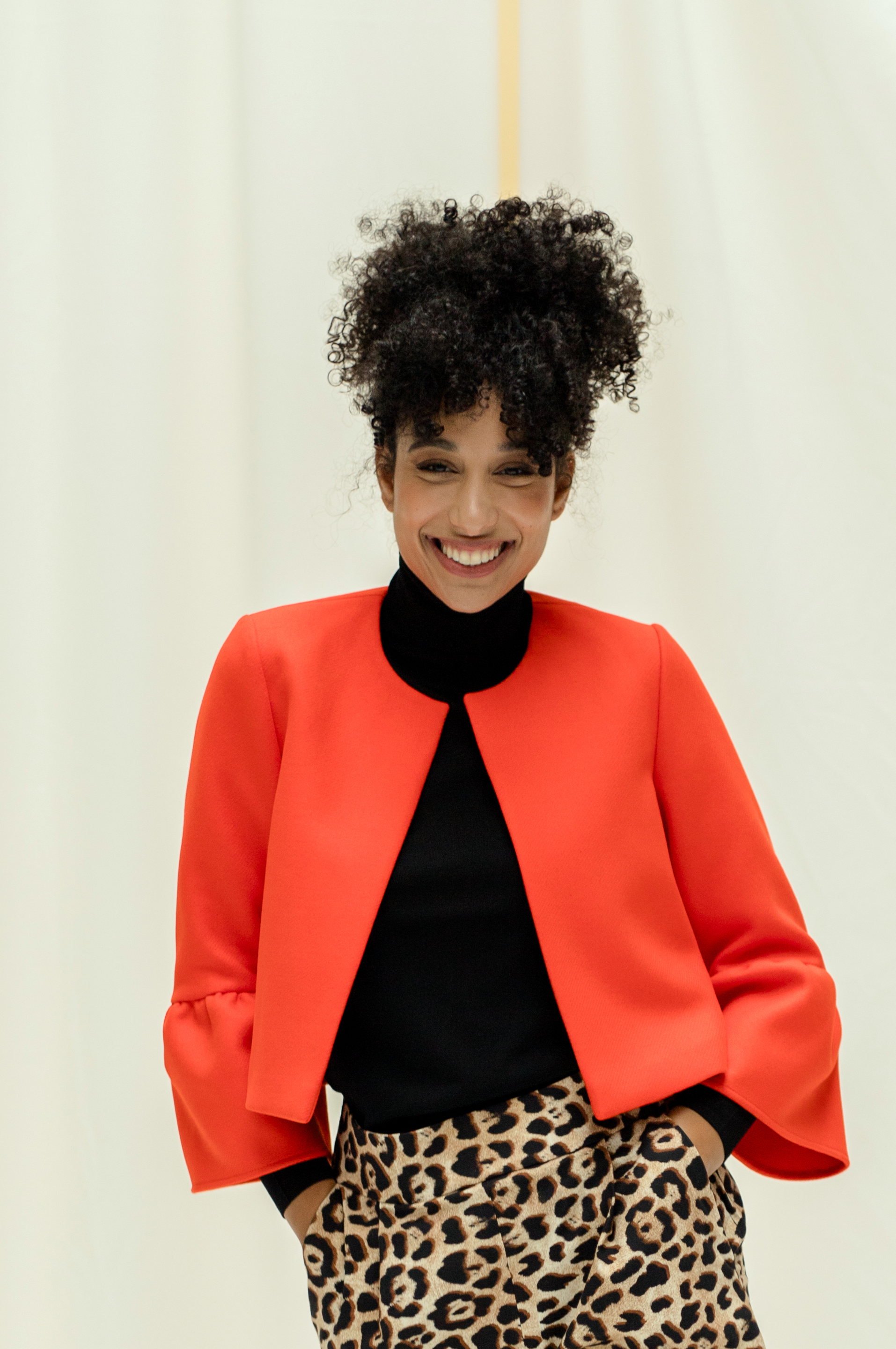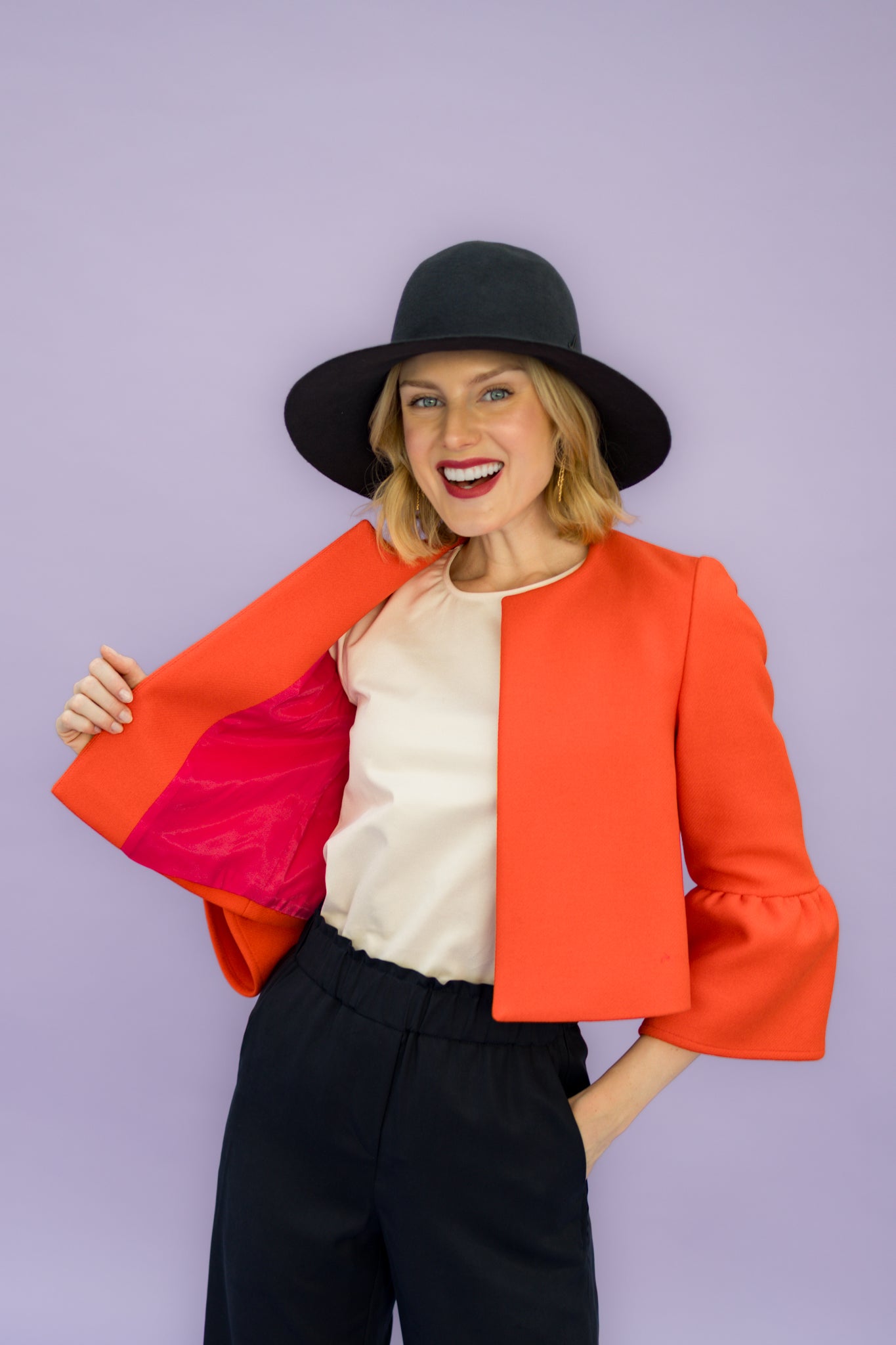 This open-front, short blazer is designed to add a touch of sophistication to any outfit. Featuring a playful pink lining and flounced sleeves, it combines elegance with a hint of fun. Perfect for both professional and casual settings, the KIM Blazer is your go-to piece for effortless style.