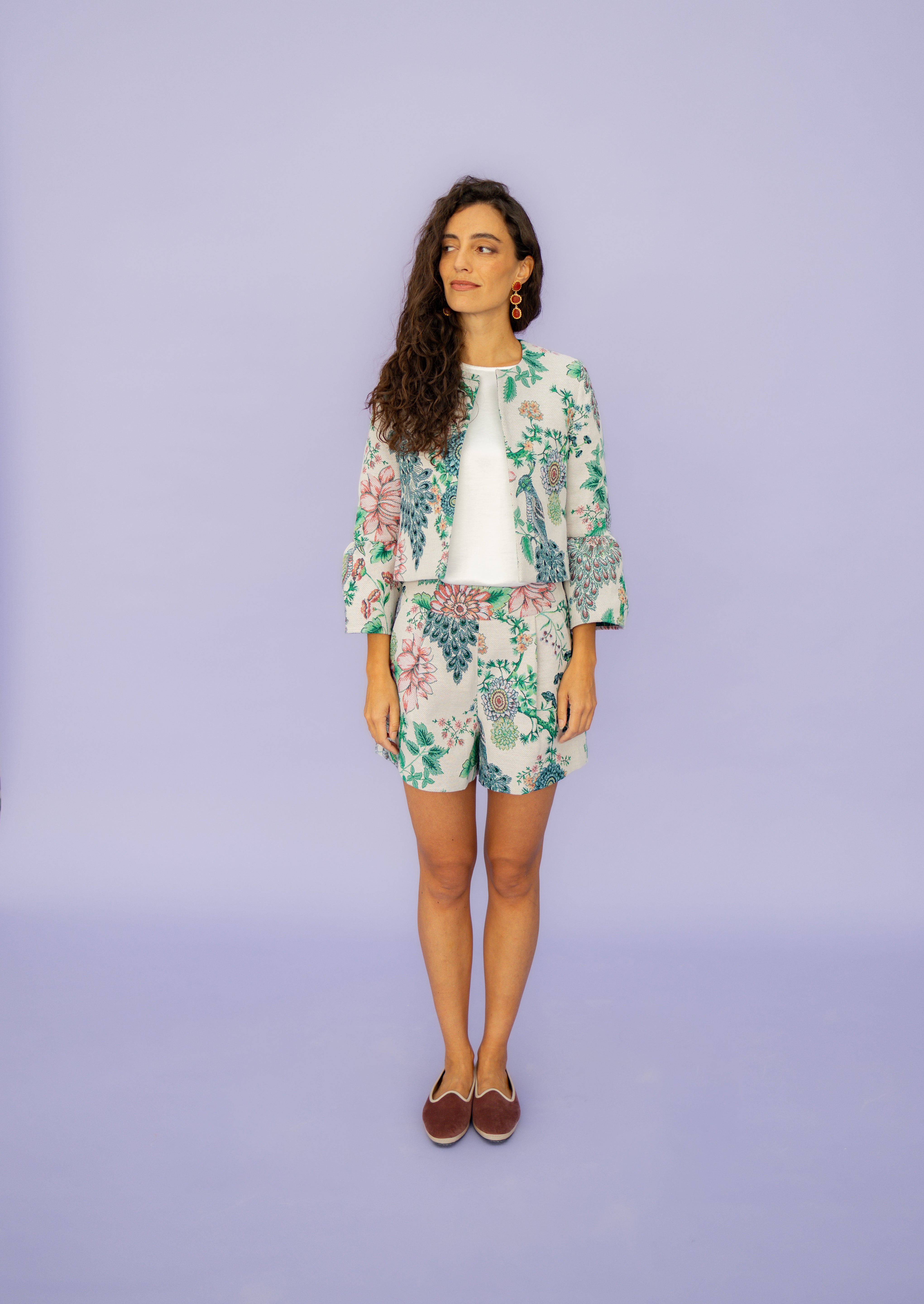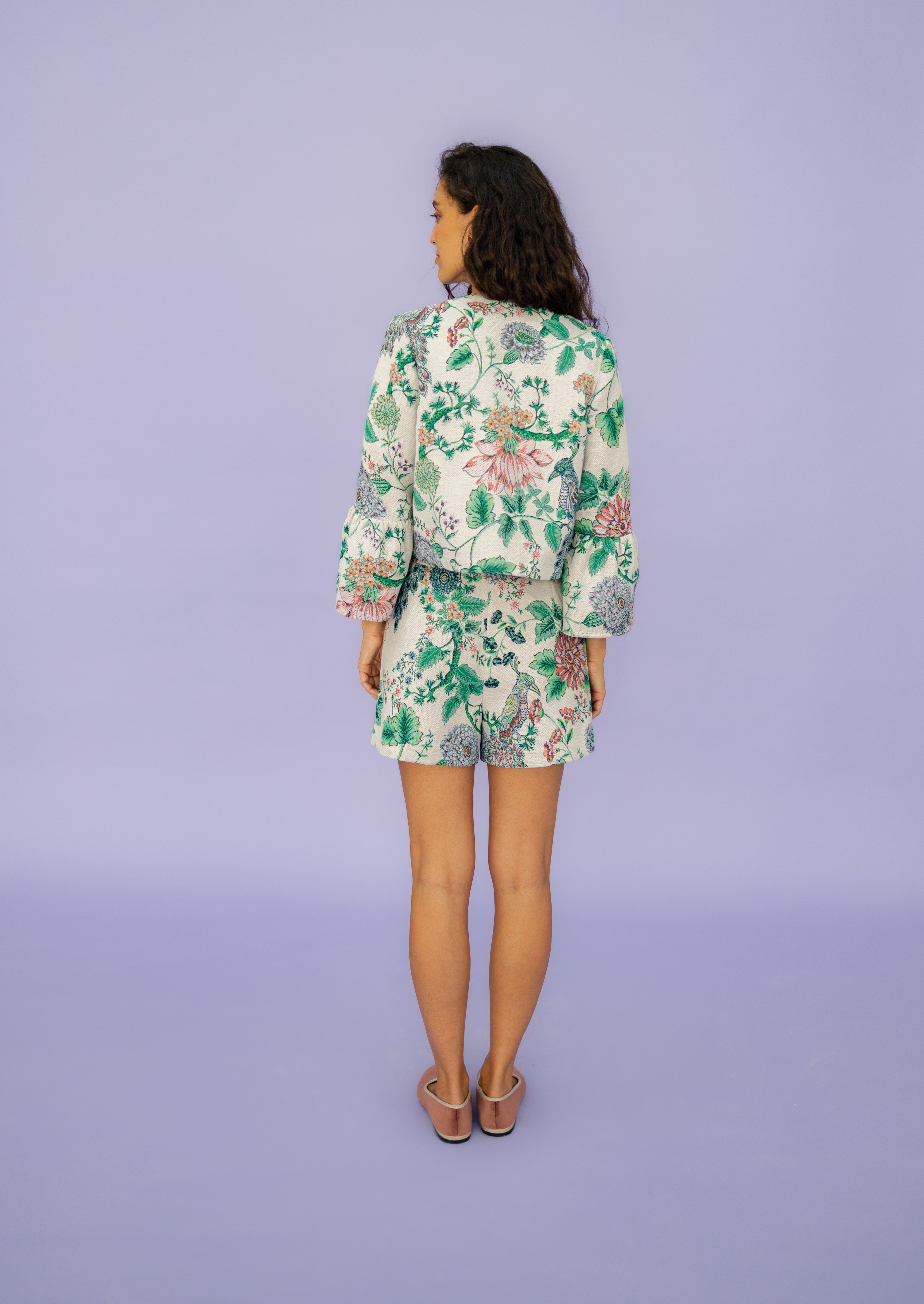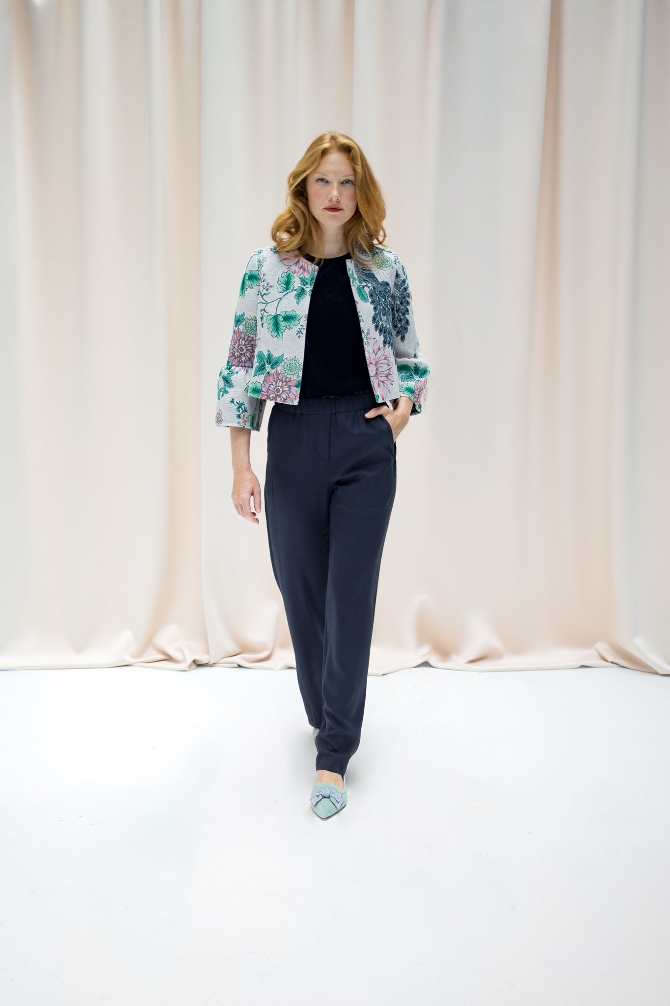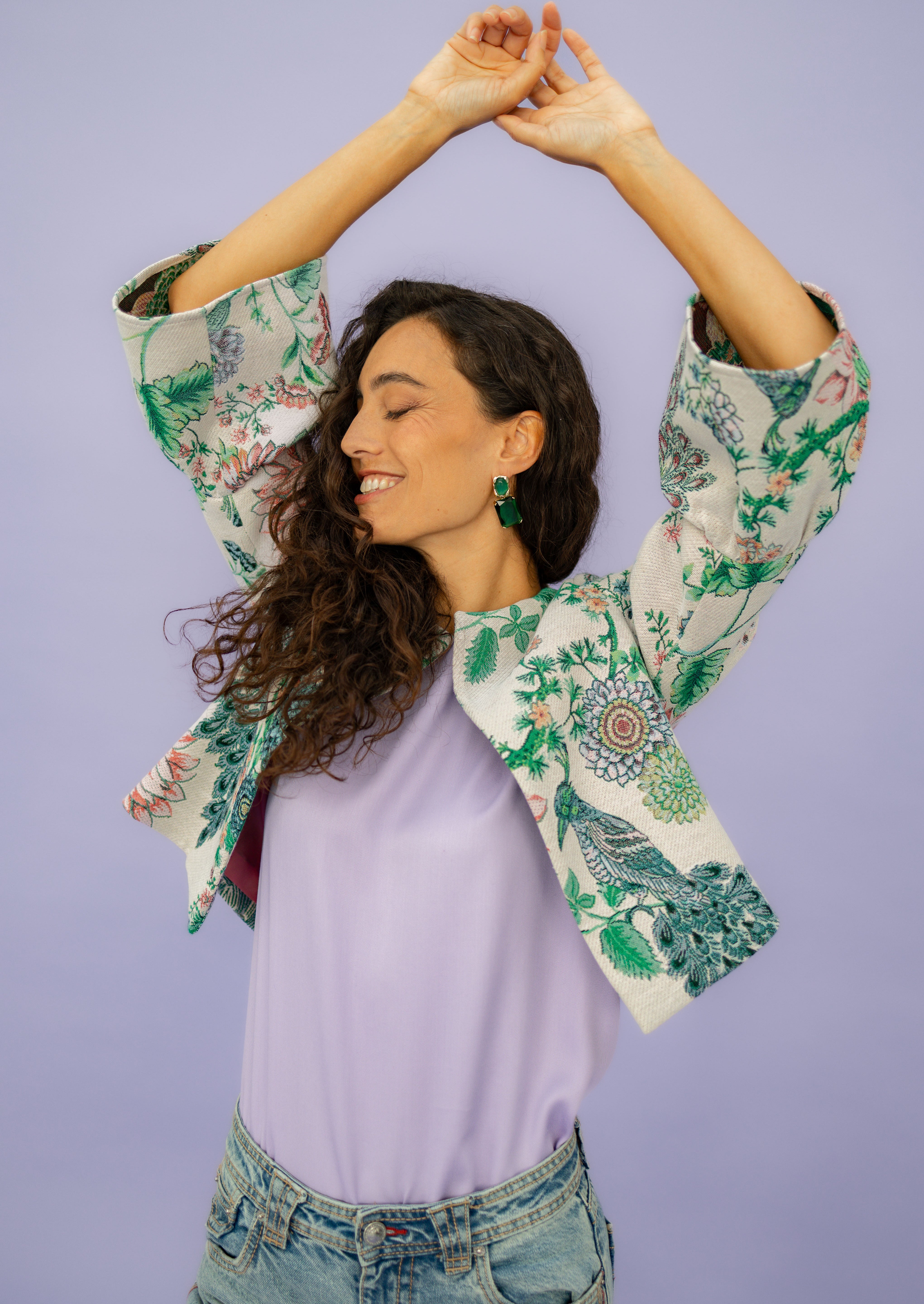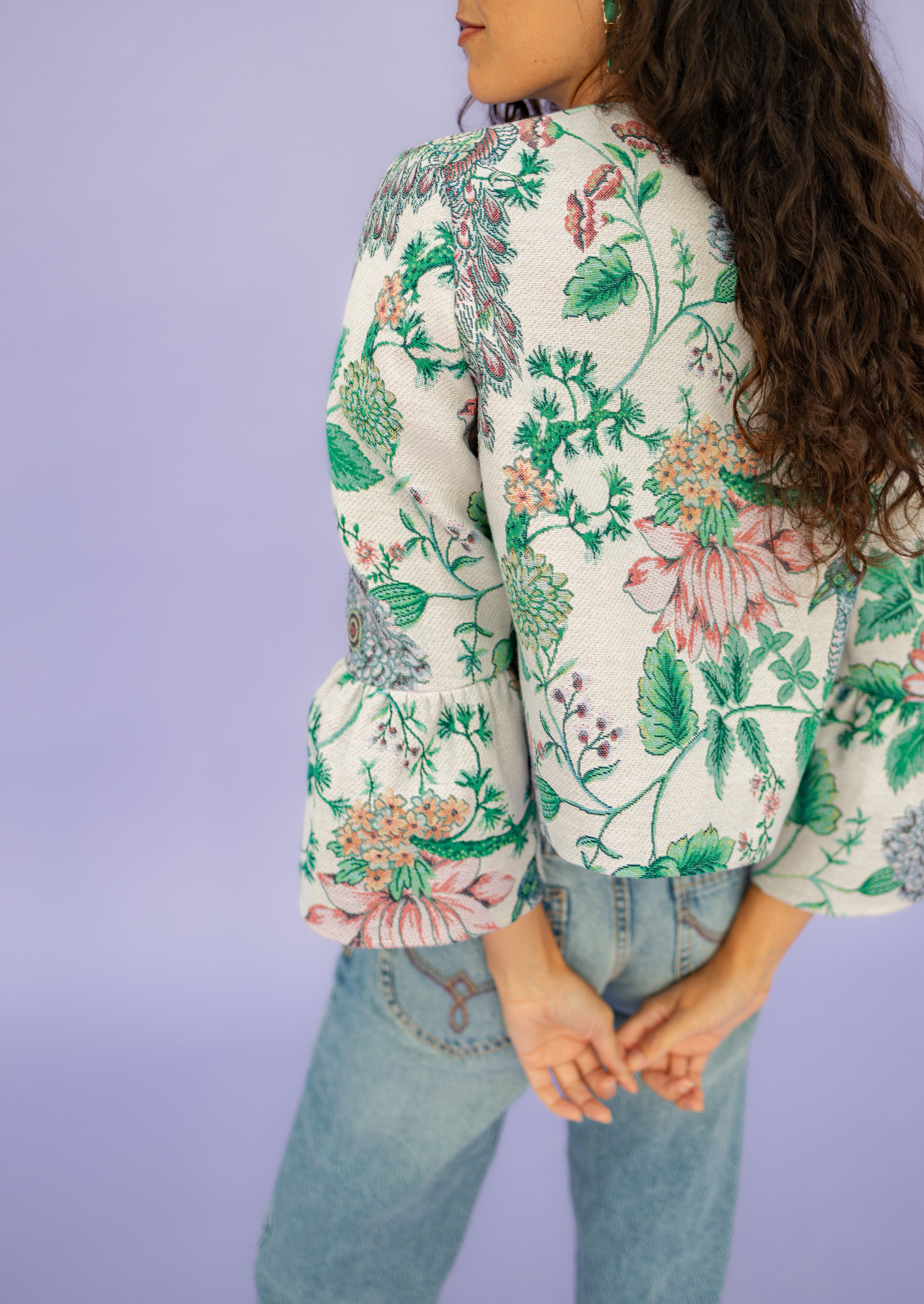 This open-front, short blazer is designed to add a touch of sophistication to any outfit. Featuring a playful pink lining and flounced sleeves, it combines elegance with a hint of fun. Perfect for both professional and casual settings, the KIM Blazer is your go-to piece for effortless style.