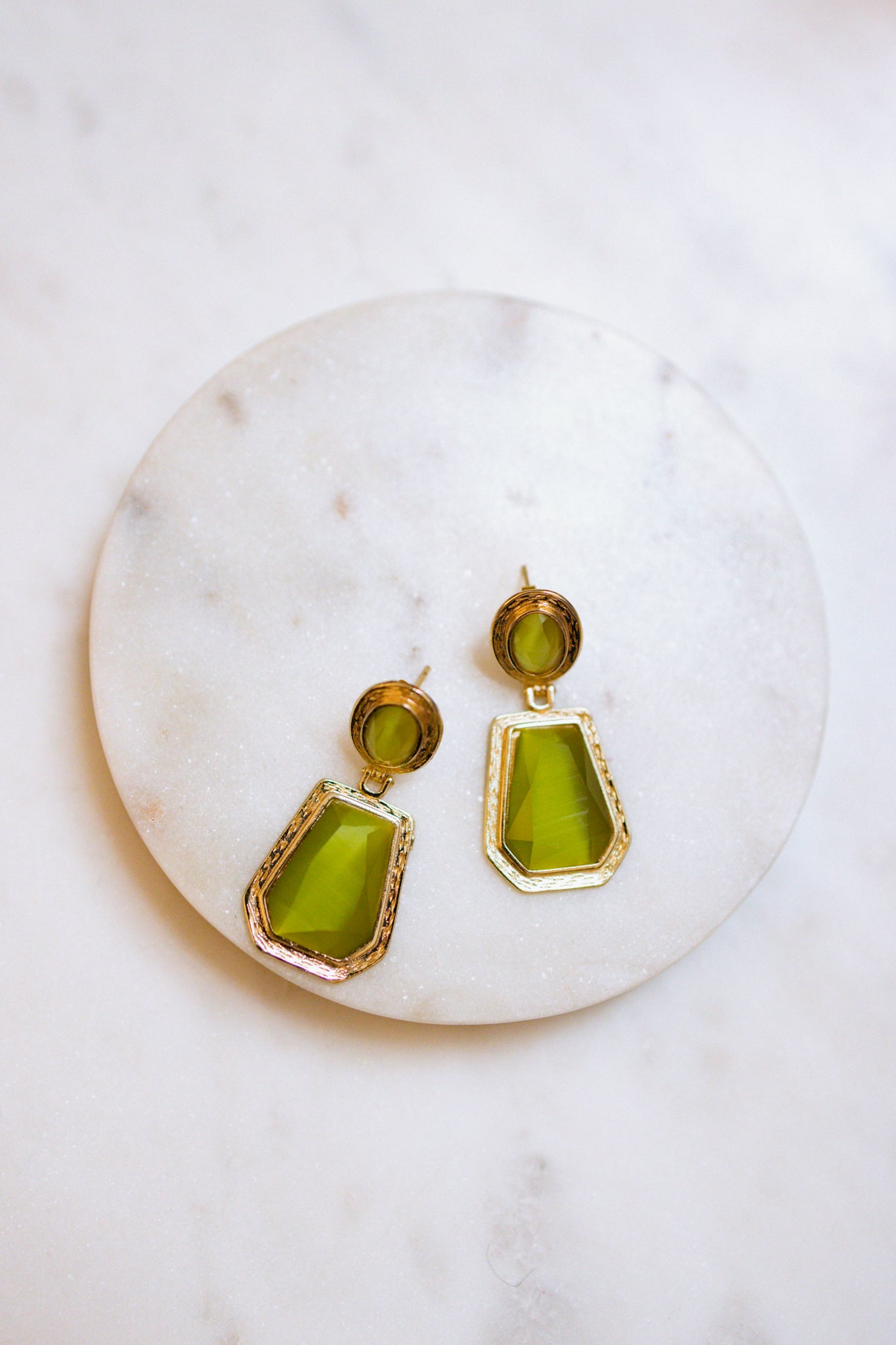 Elegant earrings crafted from gold-plated bronze, featuring a warm, homogenized quartz stone. With a subtle baroque touch, these earrings bring timeless charm and sophistication to any look. Approximately 4 cm long.