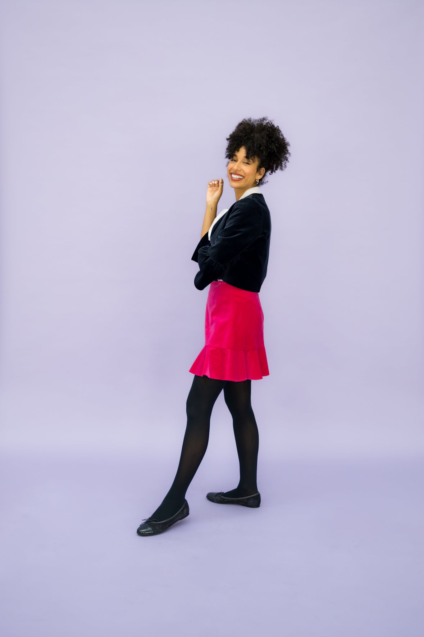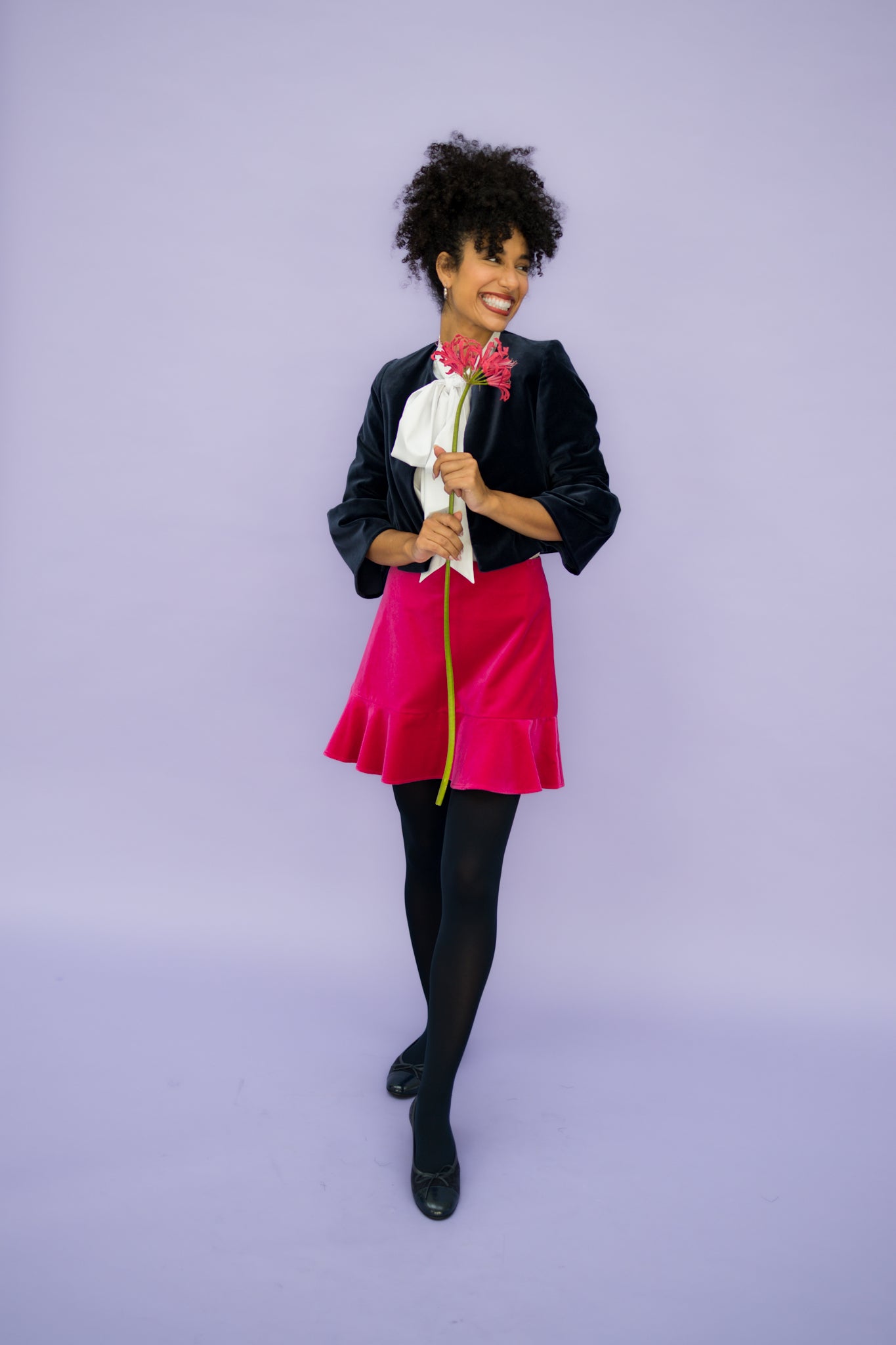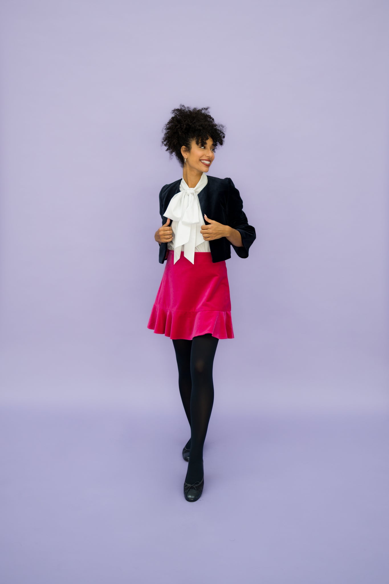 LEILA, the skirt that goes with anything. With its flowing silhouette and feminine flair, our volant skirt brings effortless elegance to your everyday wardrobe. Crafted from premium fabric, it offers exceptional comfort for long days at the office or on the go. Thanks to its versatile design, LEILA styles beautifully with a wide range of tops and jackets — making it your go-to piece for work, weekends, and everything in between.
