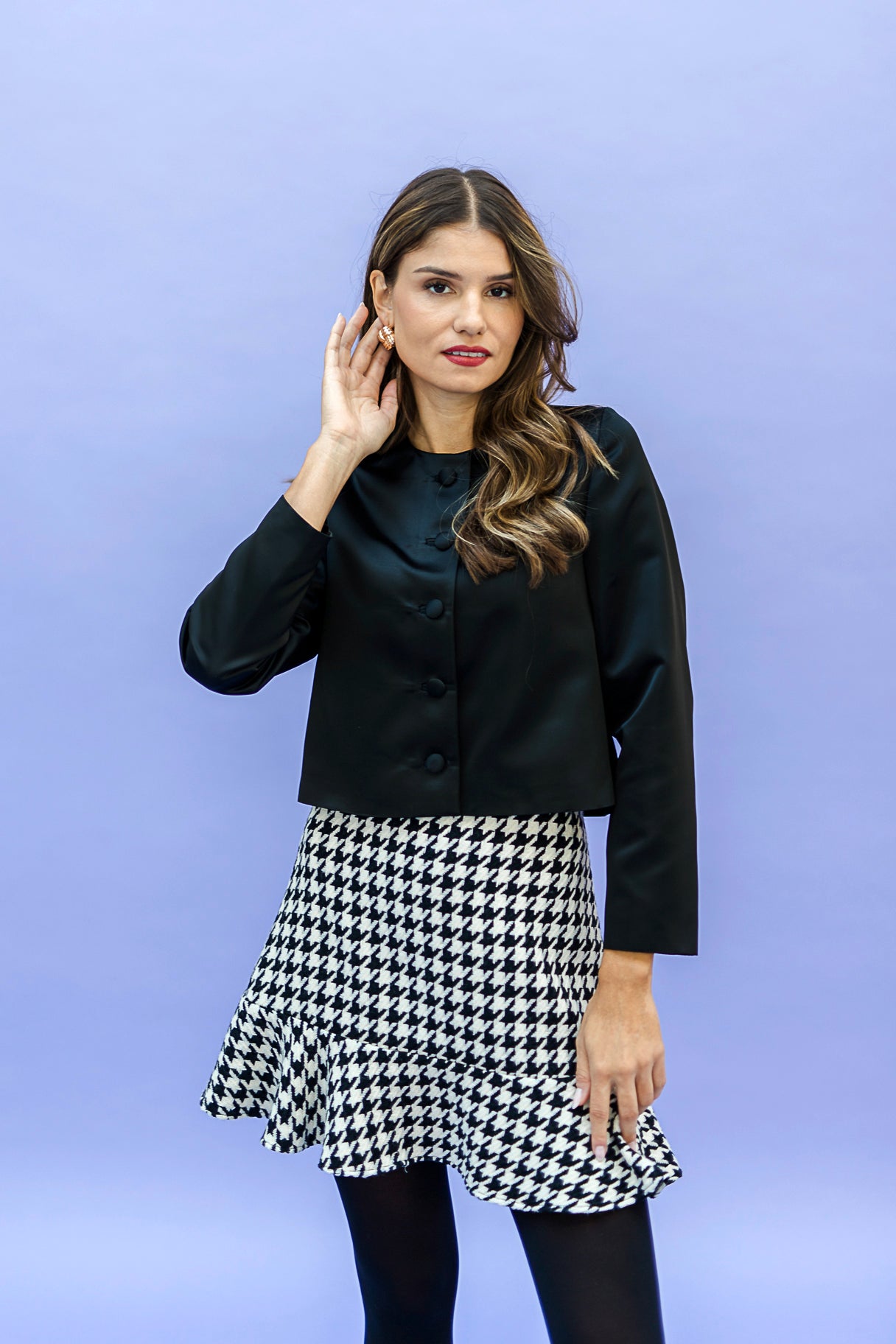 LEILA, the skirt that goes with anything. With its flowing silhouette and feminine flair, our volant skirt brings effortless elegance to your everyday wardrobe. Crafted from premium fabric, it offers exceptional comfort for long days at the office or on the go. Thanks to its versatile design, LEILA styles beautifully with a wide range of tops and jackets — making it your go-to piece for work, weekends, and everything in between.