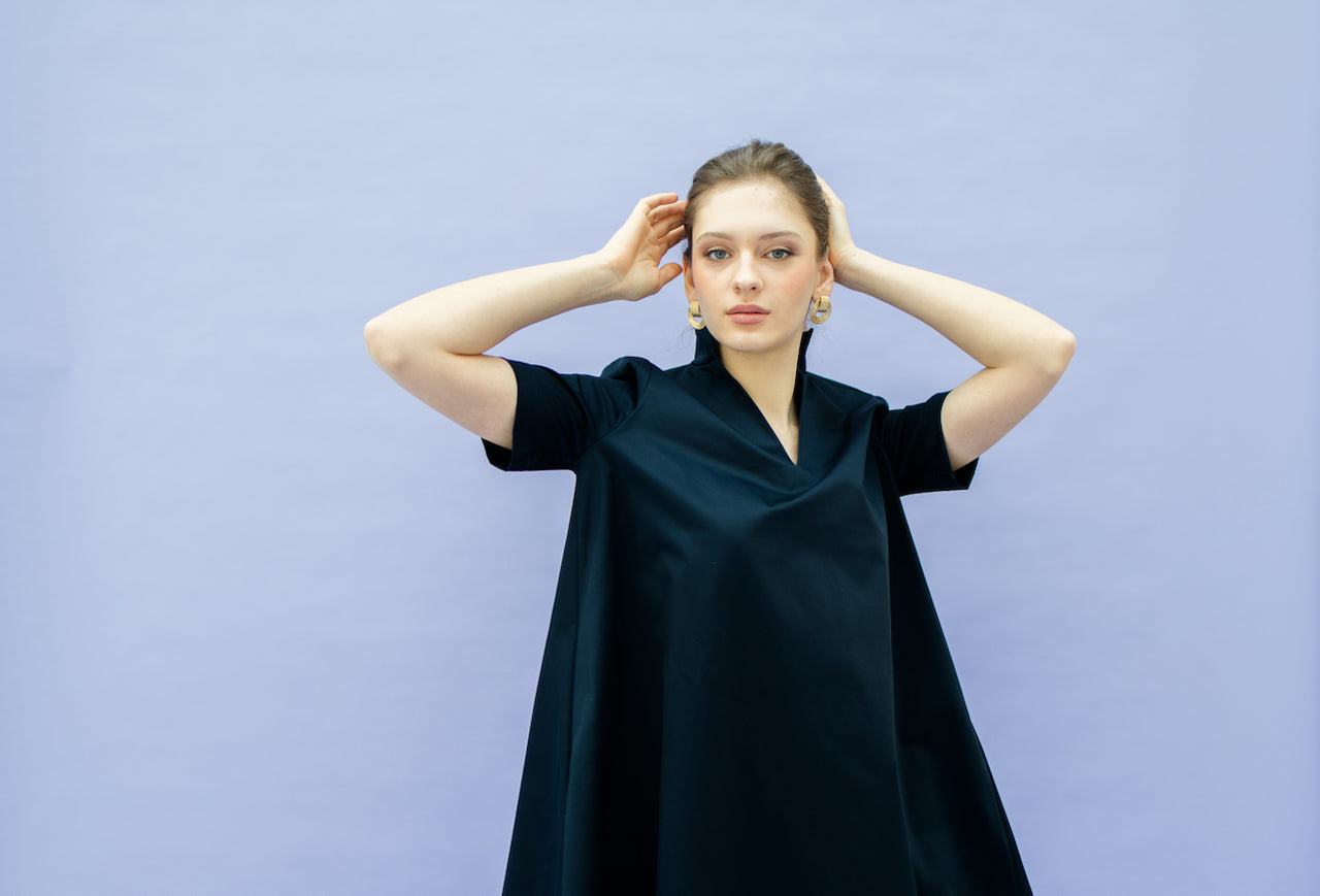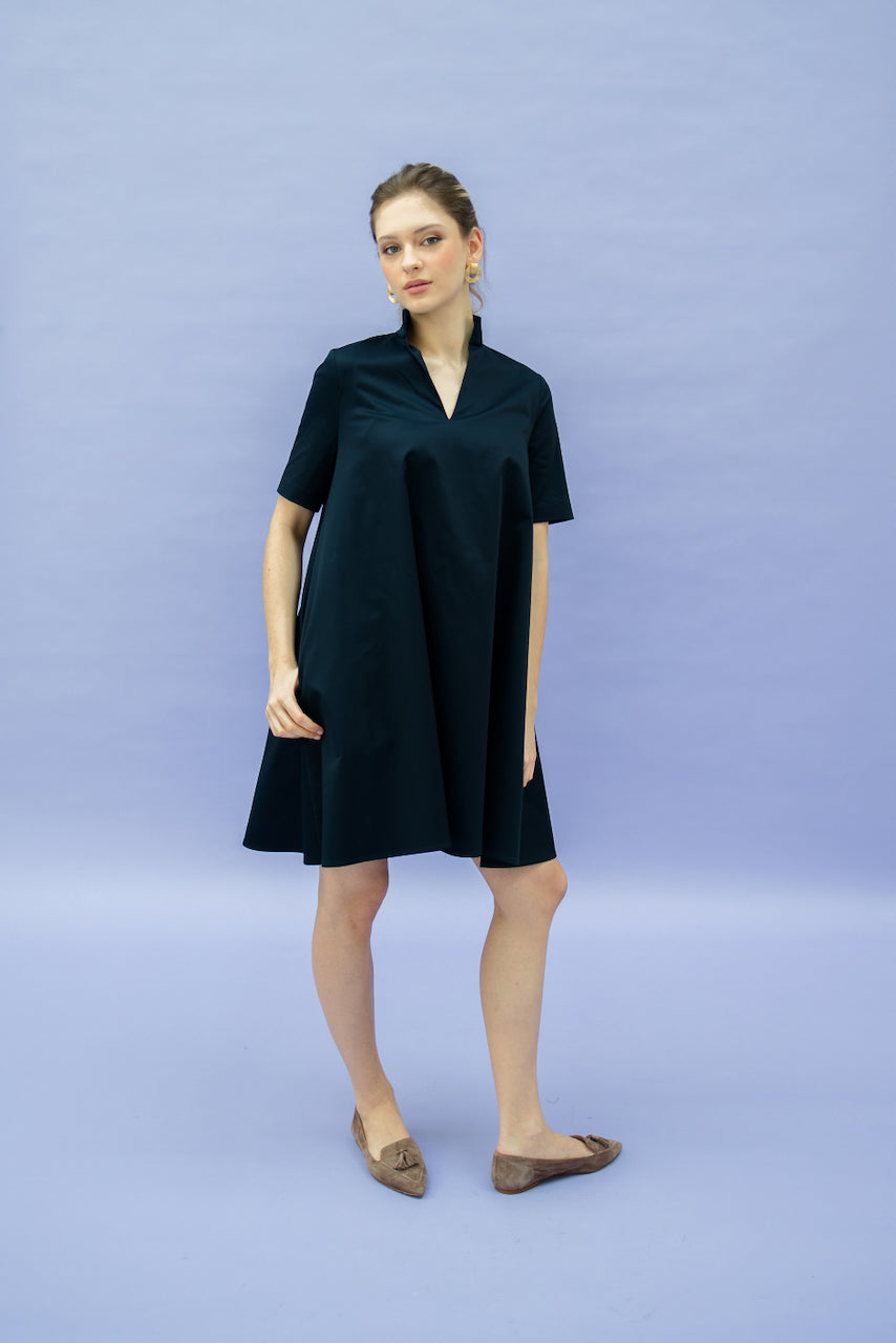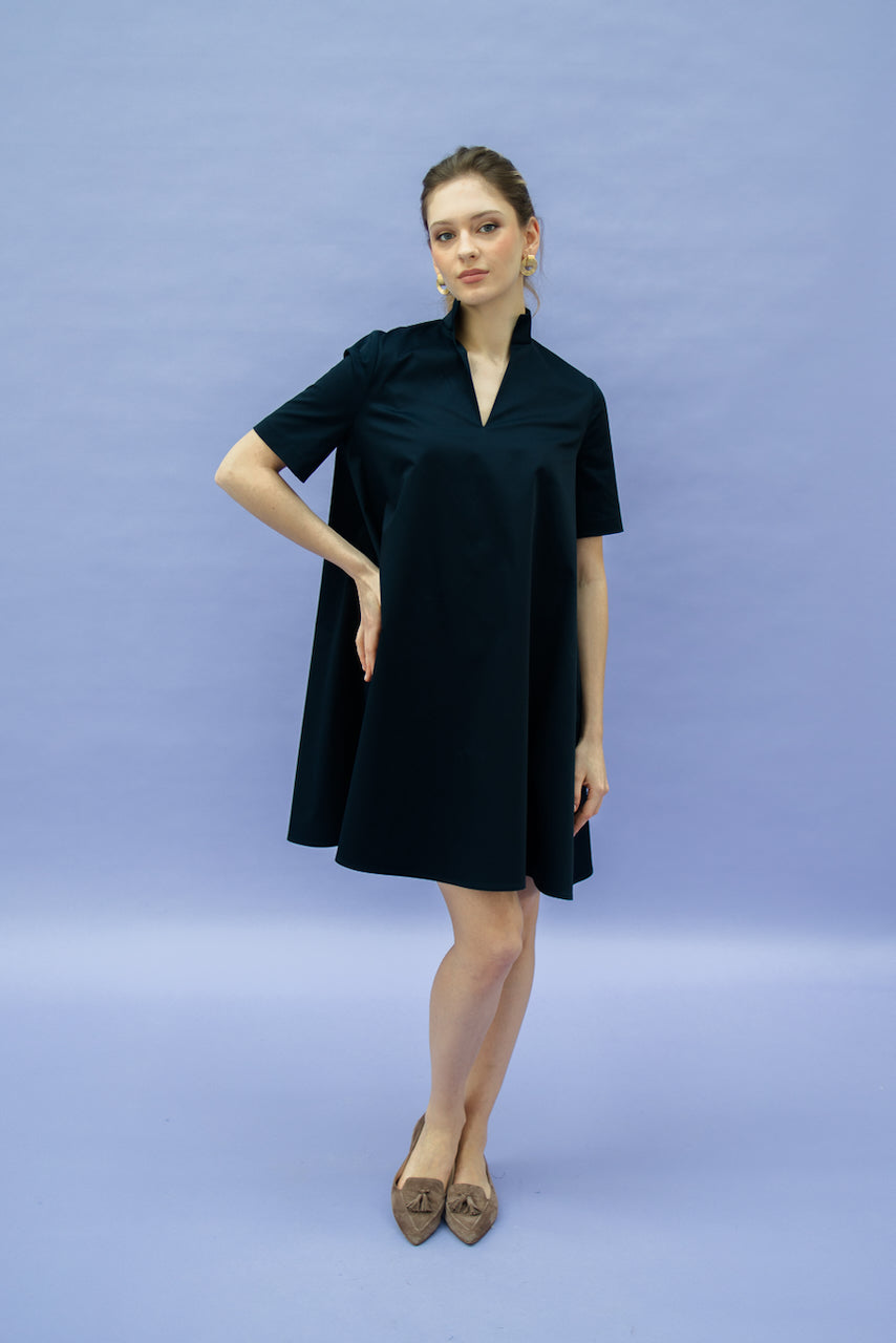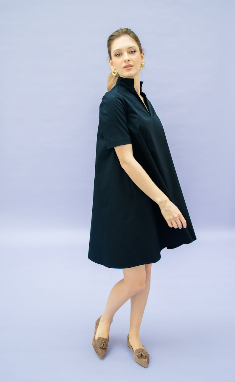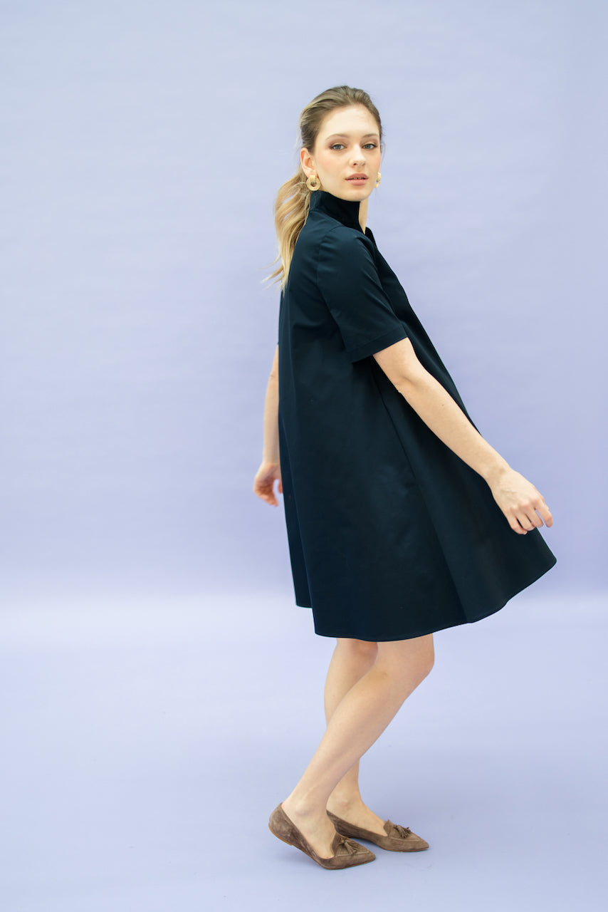 LINN is your new go-to for effortlessly chic style. With its stand-up collar, flared A-shape silhouette, and convenient pockets, this shorter version of our beloved MARTA dress is perfect for any occasion.