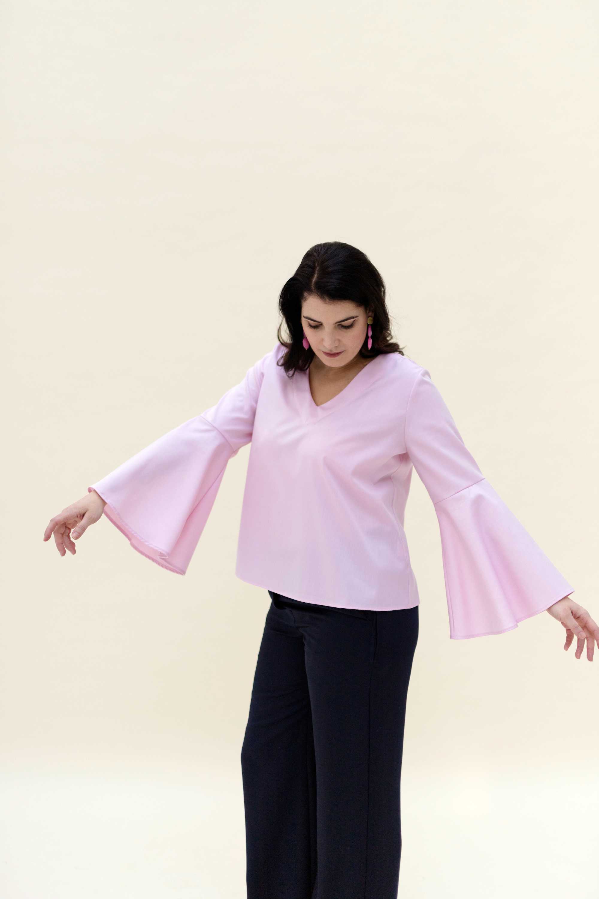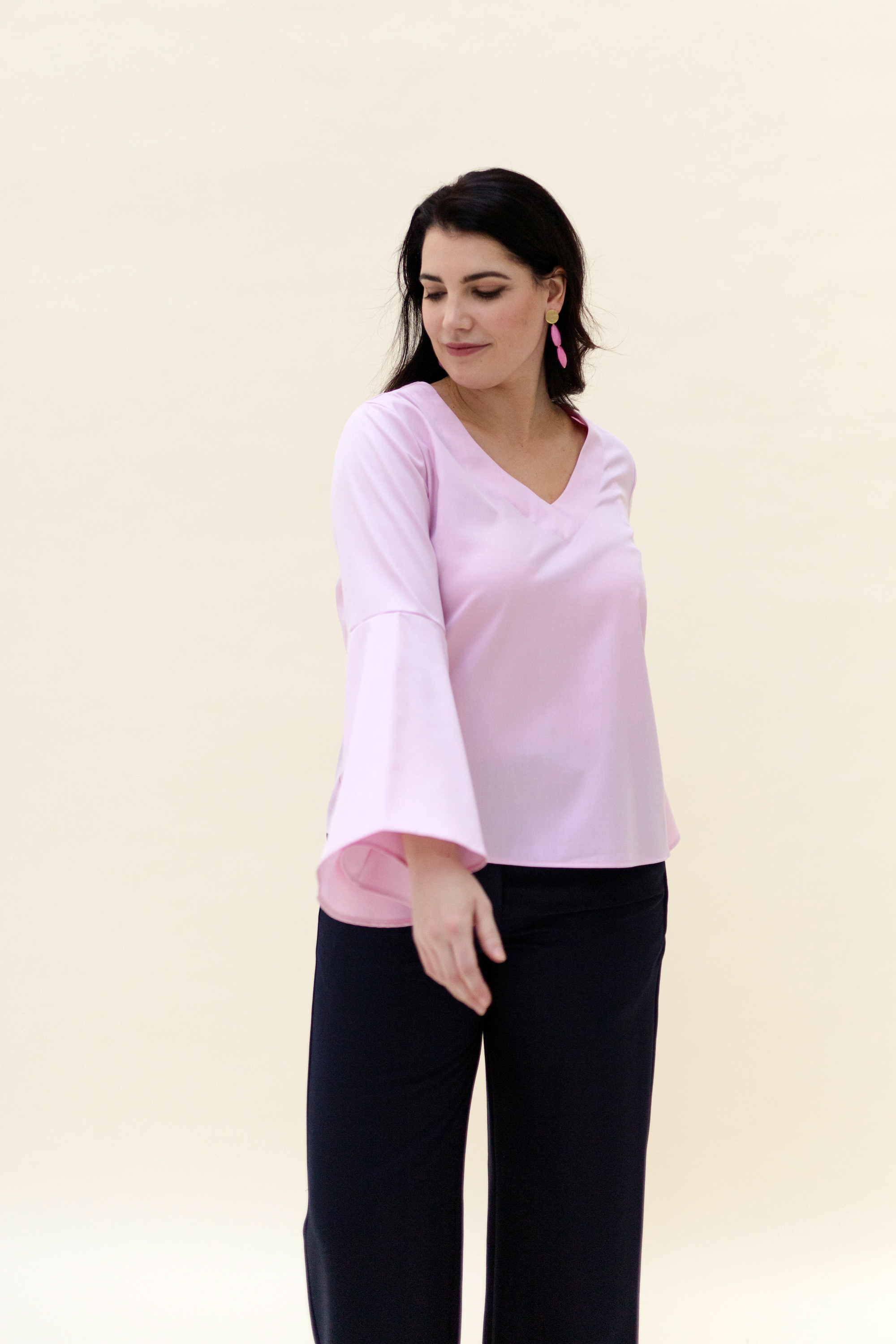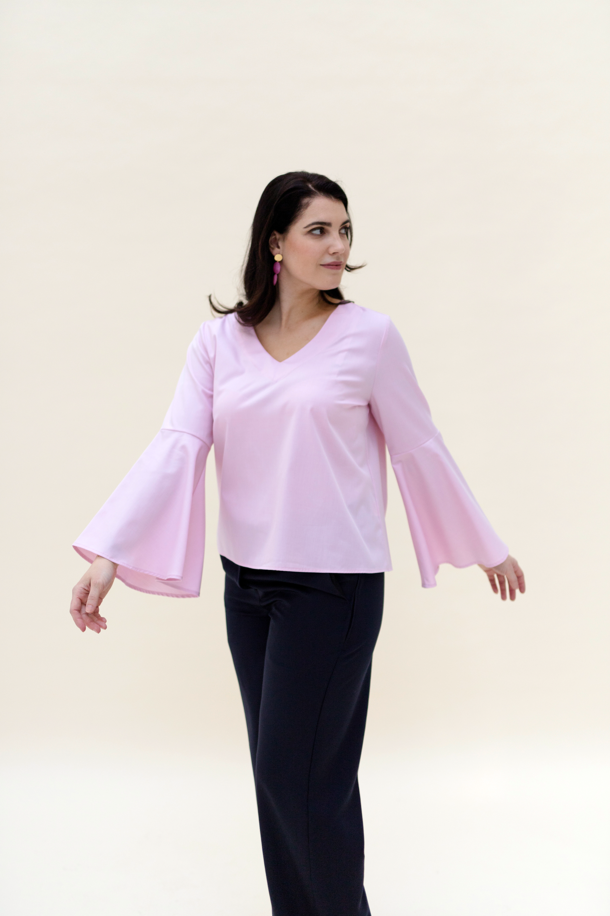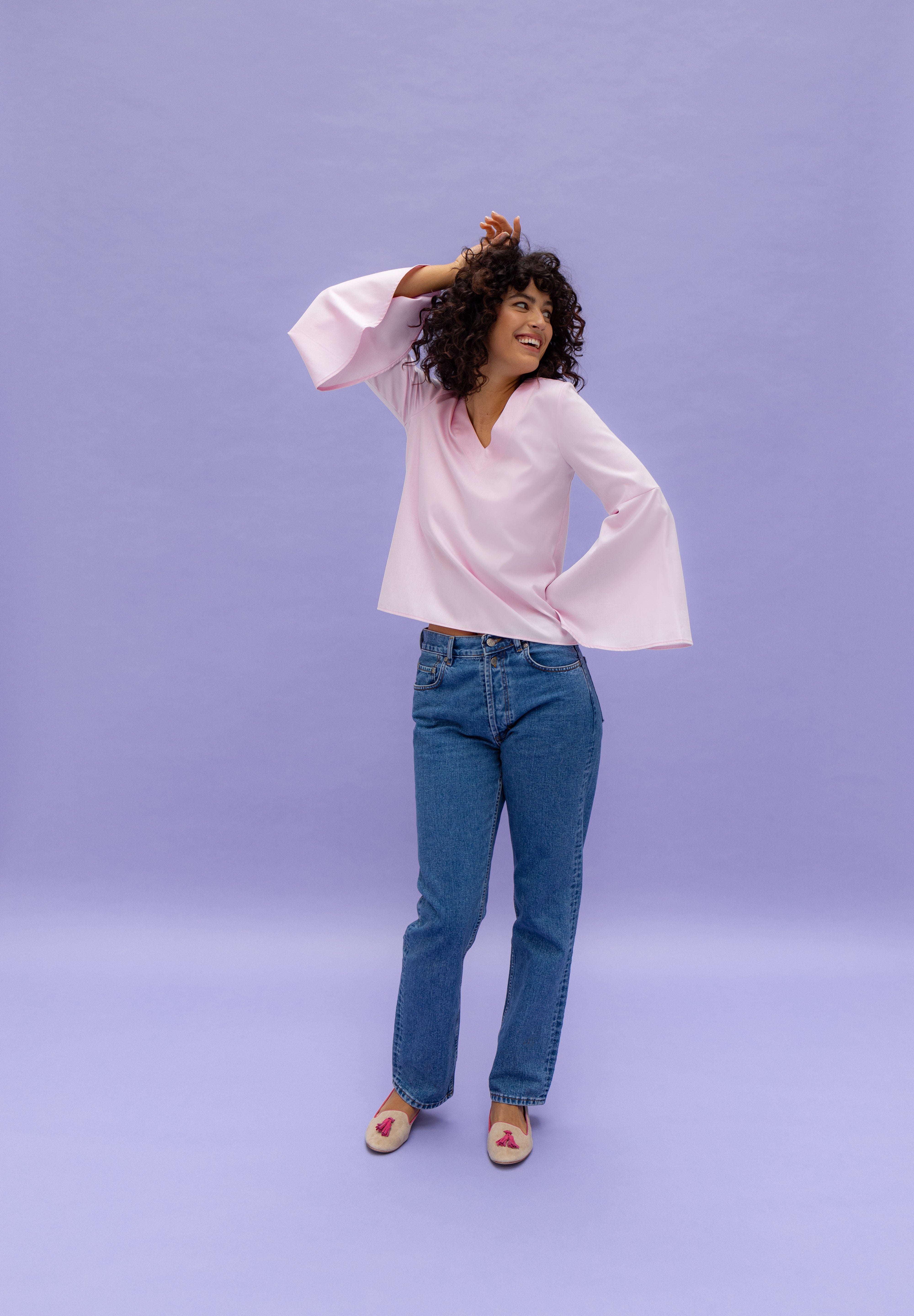 LISA is the CONSCHES version of a perfect blouse. With its V-neck and large volant sleeves, it is the perfect companion for any outfit, whether with shorts or an elegant skirt, you are always well dressed.