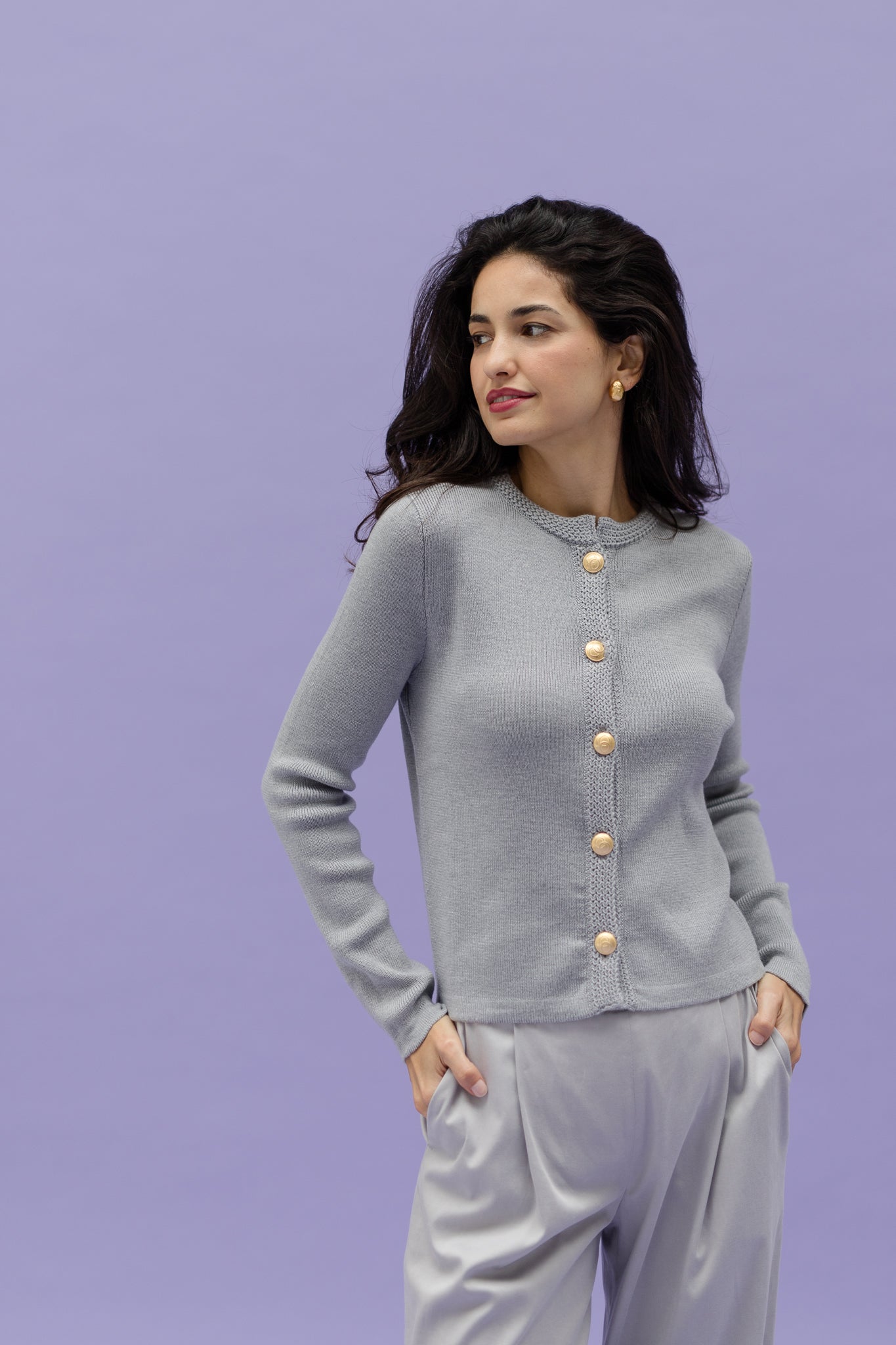 LOUISA is a luxurious knit merino cardigan that is crafted with meticulous attention to detail in Italy. The timeless knit design is elevated by CONSCHES buttons in shimmering gold, adding a touch of elegance to every outfit.