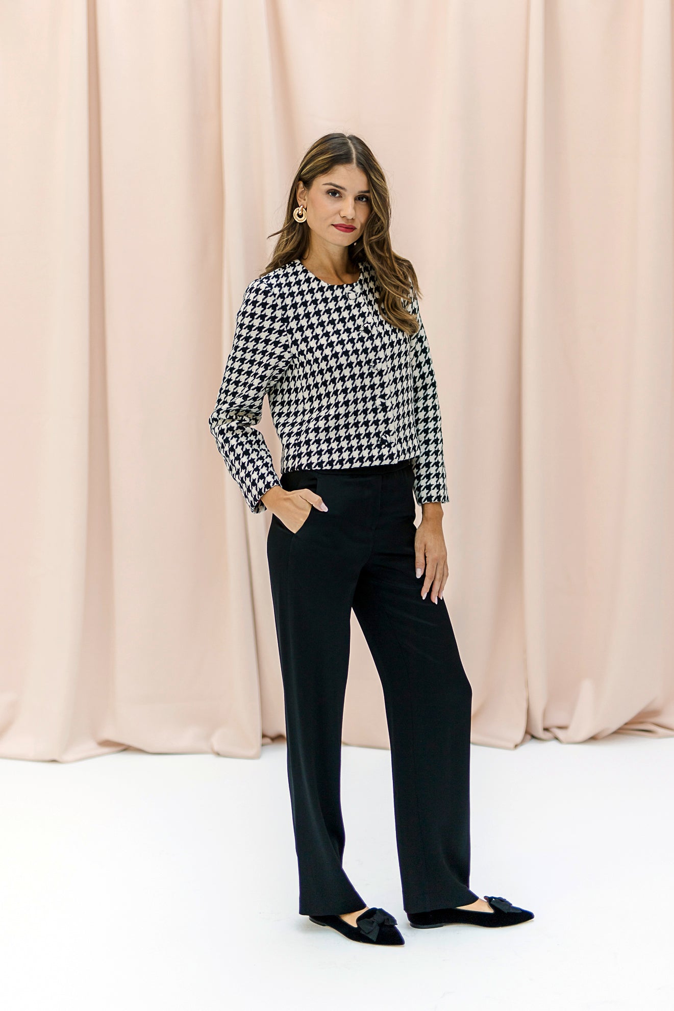 MARIE is our stunning new jacket, which can also be worn beautifully as a top. The padded buttonholes give it a uniquely elegant touch, while the covered buttons add a refined, minimalist finish. Its cropped cut and slim sleeves create a modern silhouette that flatters the figure. Whether styled with trousers or a skirt, this jacket brings timeless sophistication to any look.