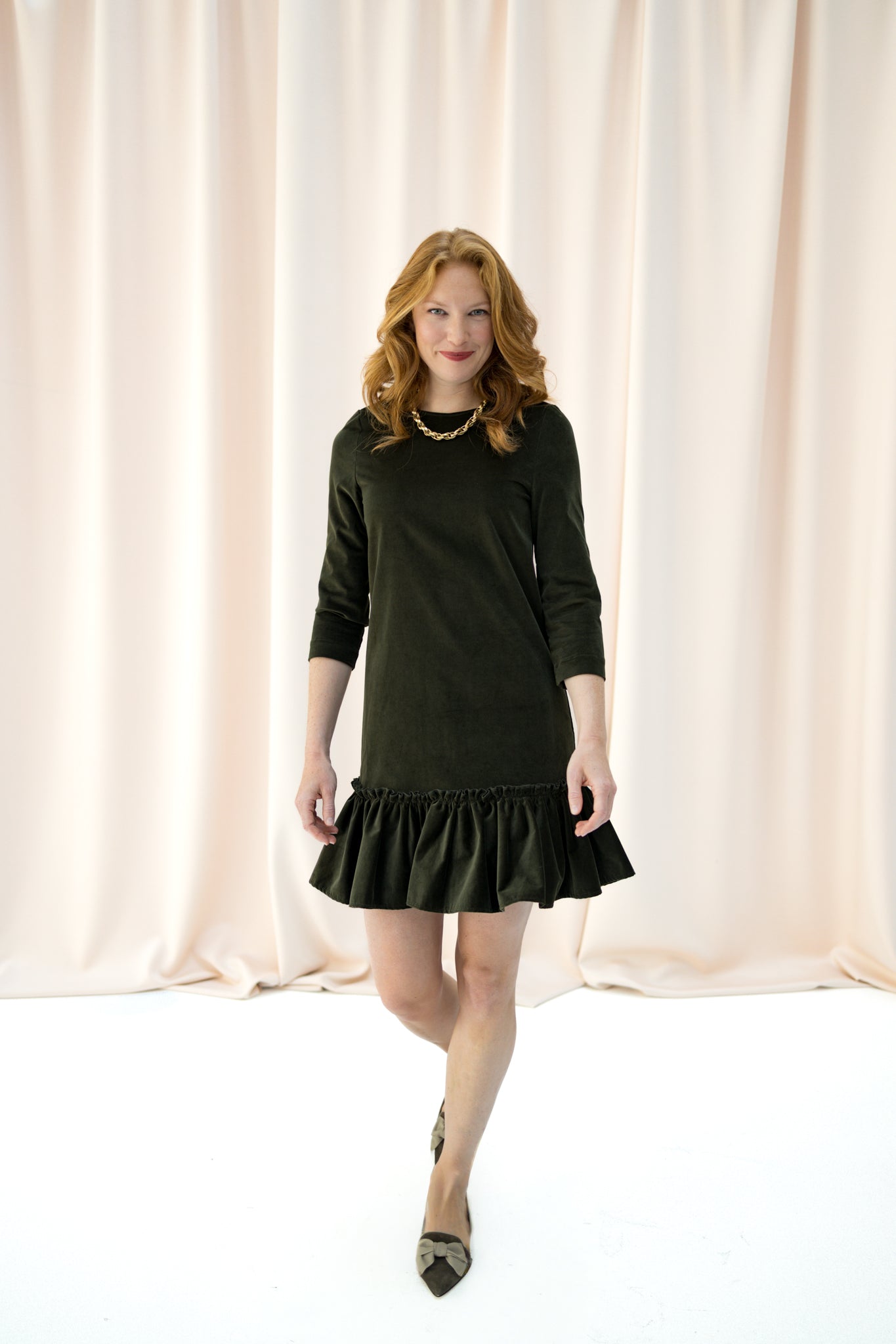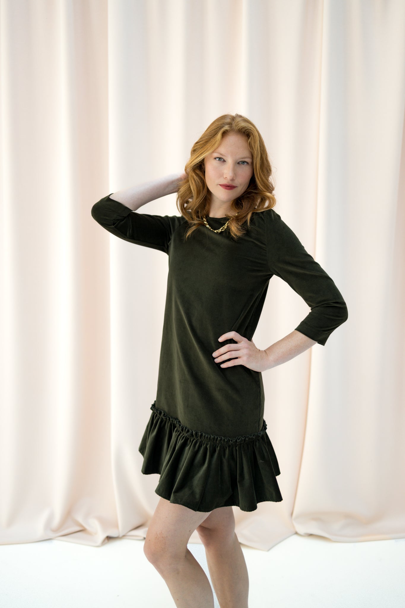 Introducing the MARLA Dress – a chic and elegant piece crafted from a luxurious, velvet fabric. This short A-line dress features a flattering flared silhouette, with a delicate ruffle hem that adds a playful touch. The 7/8 sleeves enhance its sophisticated design, while the back zipper ensures a perfect fit. Ideal for special occasions, the MARLA dress offers comfort and style in one stunning package.