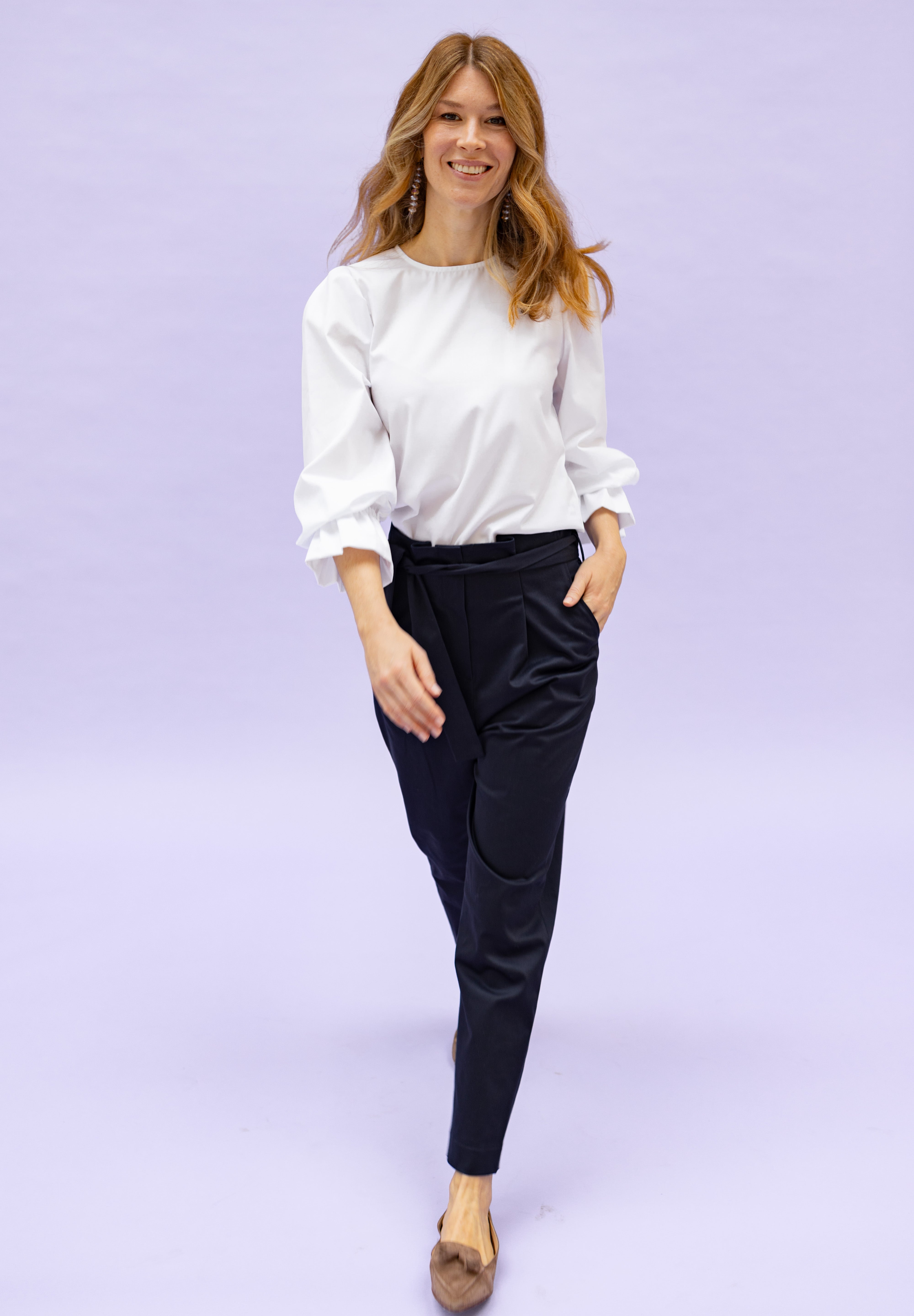 Meet MINA! Our newest stylish paperbag pants, featuring a relaxed waistband highlighted by a chic belt. They are designed with slim legs, creating a sleek silhouette for a modern look. The paperbag cut adds a touch of casual elegance, while the belt accentuates the waist in a flattering way. MINA is the perfect choice for a trendy yet comfortable outfit, ideal for both everyday wear and special occasions.
