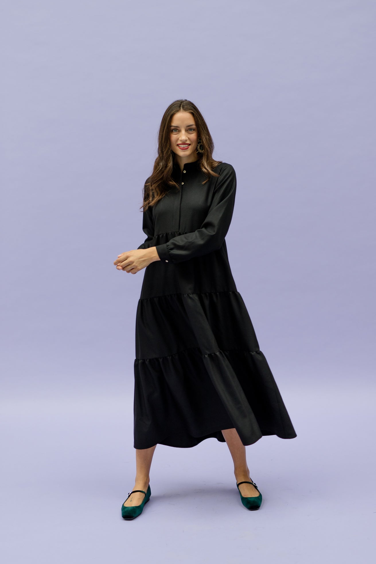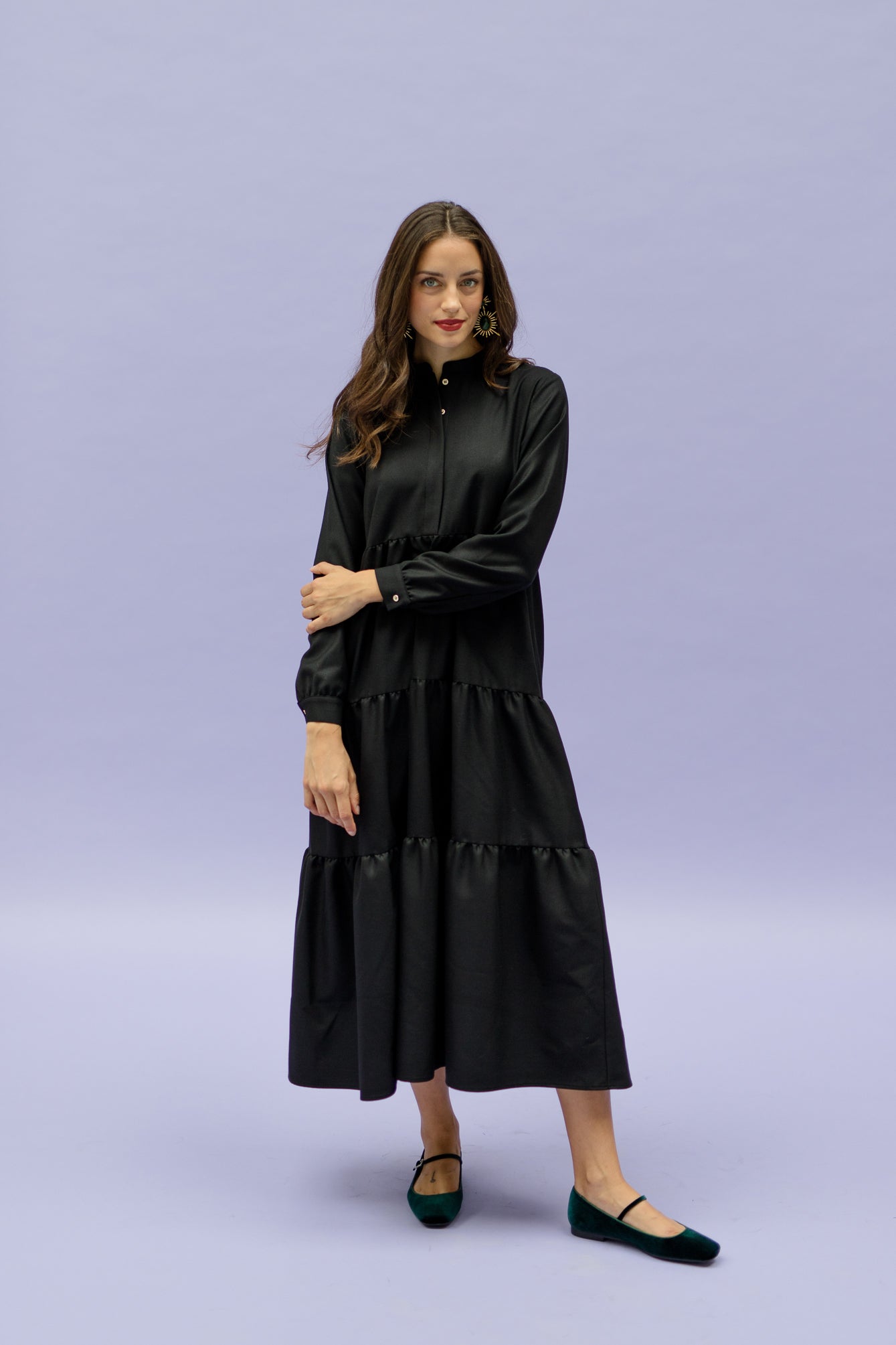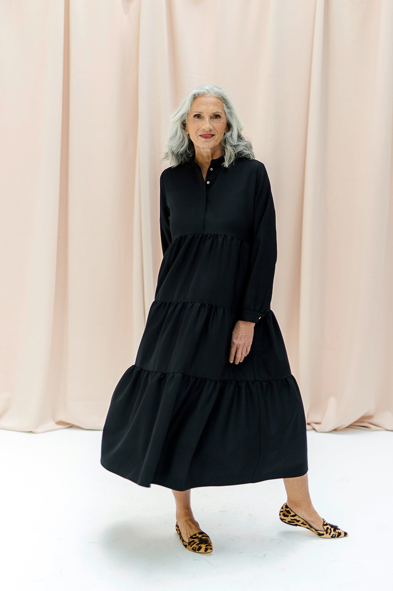 MONA will make you sparkle and emphasize your personality. It has the perfect fit for a long dress: the upper part of the dress is slightly tighter to accentuate your waist, combined with a beautiful fitted flared skirt. You can roll up the sleeves or unbutton the hidden buttons. MONA will be your favorite!