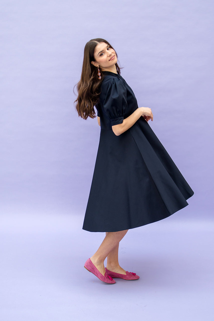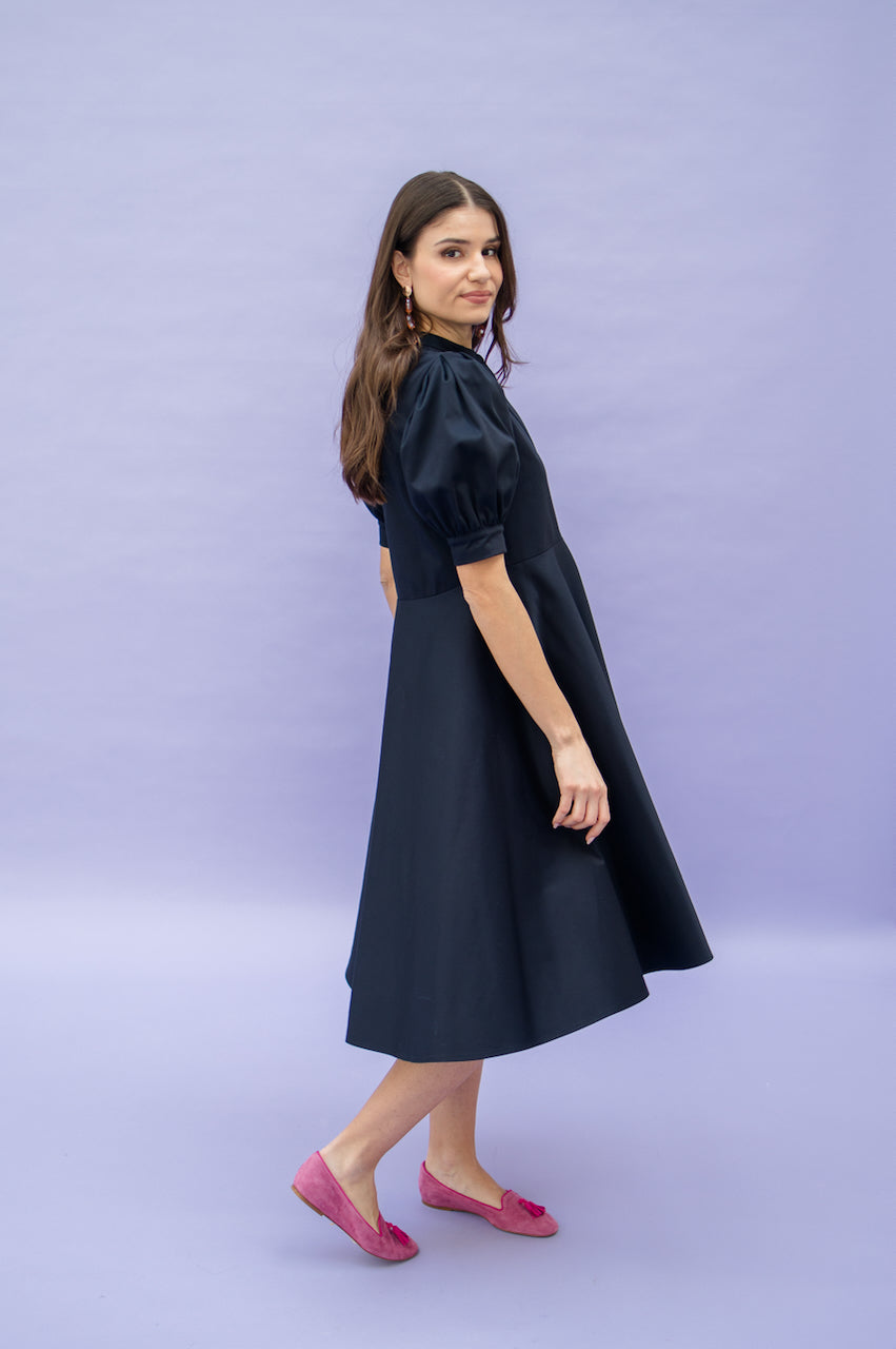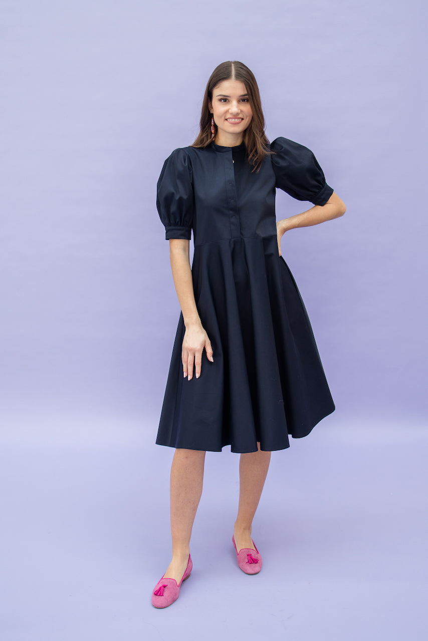 NETTY is your go-to dress for every day of the year, now with a playful twist. Designed like our beloved DORA, but featuring short puff sleeves, NETTY is perfect for the office, casual citywalks, or a dinner with friends. Its versatile style can easily be dressed up or down to suit any occasion. The loose fit and below-the-knee length ensure all-day comfort, while the feminine puff sleeves add an extra touch of charm. You find the matching belts here.