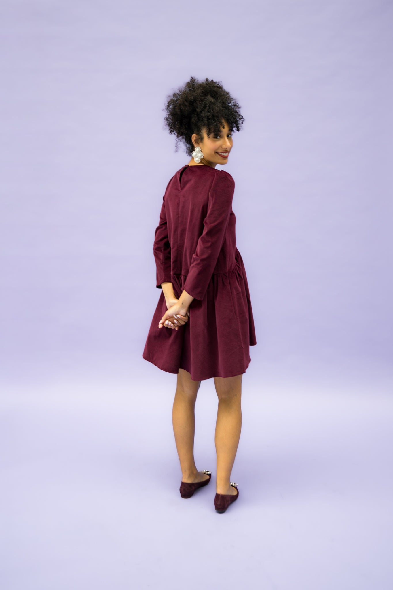 Be cheerful with a little NORA! Live in the moment and let life be fun. NORA, a dress to make you feel good. A playful dress with a 7/8 sleeve and shorter in the front than in the back, ruffled skirt. The perfect everyday dress and best of all, it has pockets.