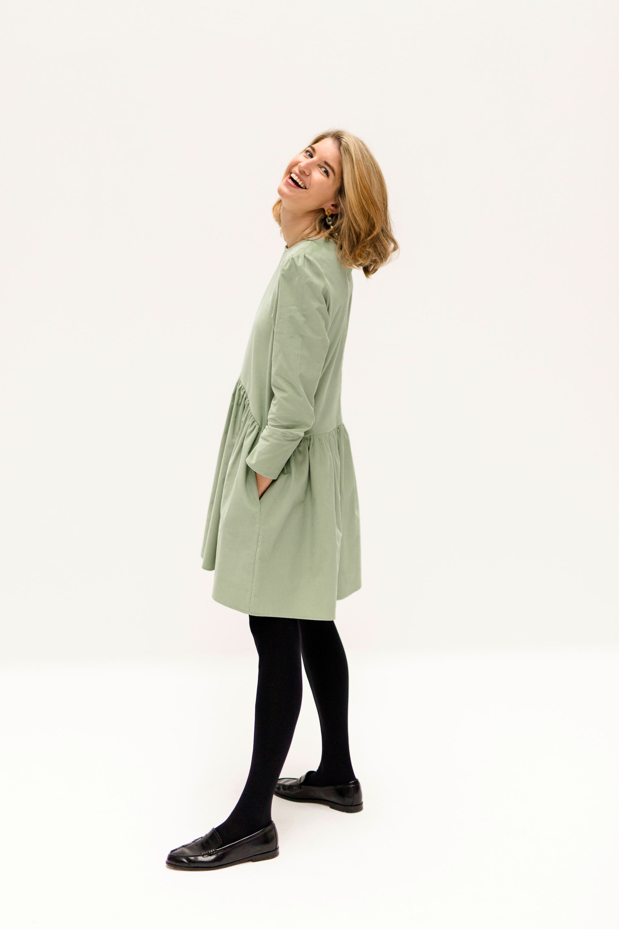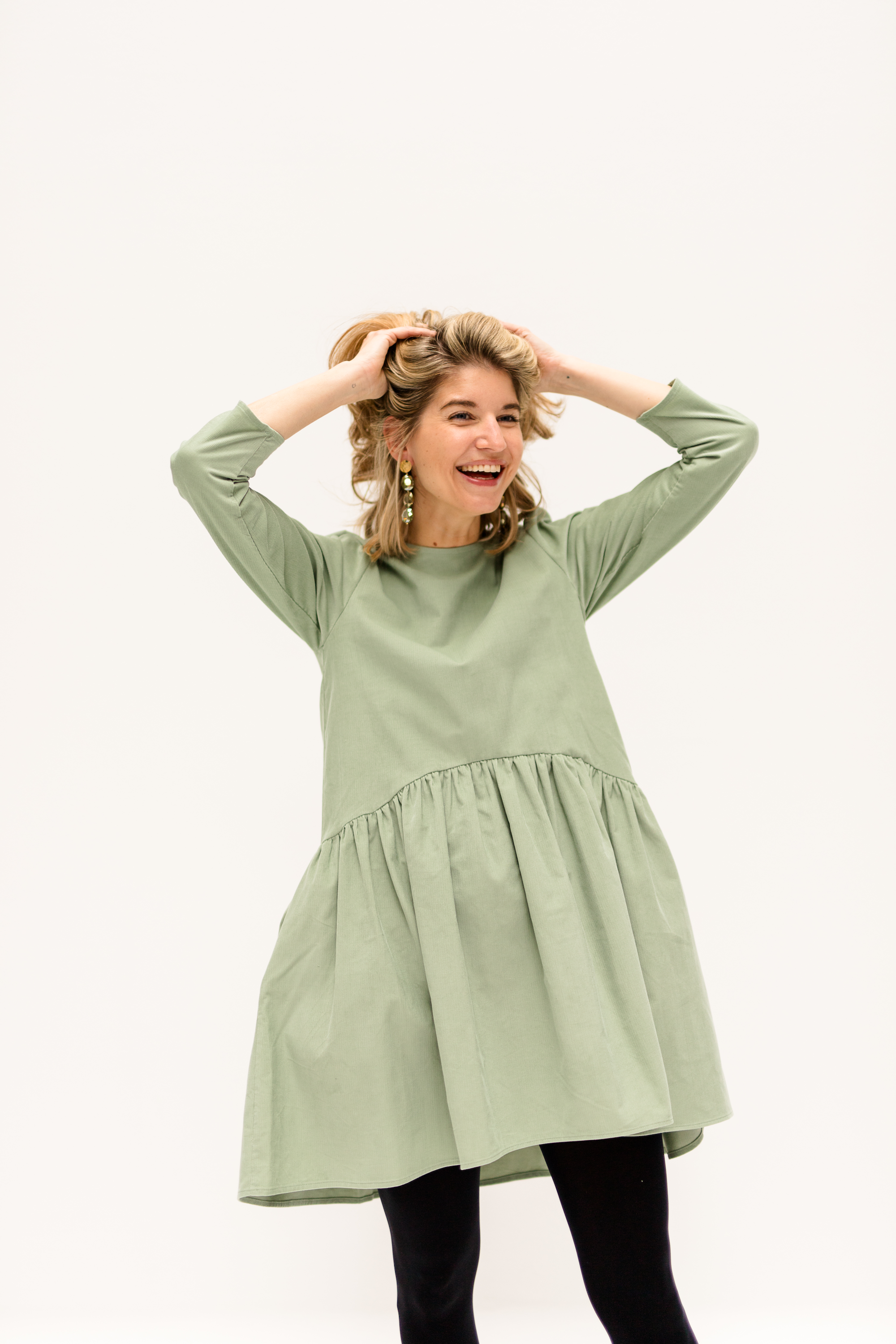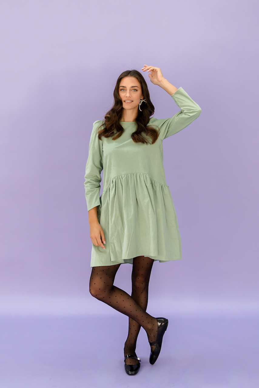 Be cheerful with a little NORA! Live in the moment and let life be fun. NORA, a dress to make you feel good. A playful dress with a 7/8 sleeve and shorter in the front than in the back, ruffled skirt, 100% cotton. The perfect everyday dress and best of all, it has pockets.