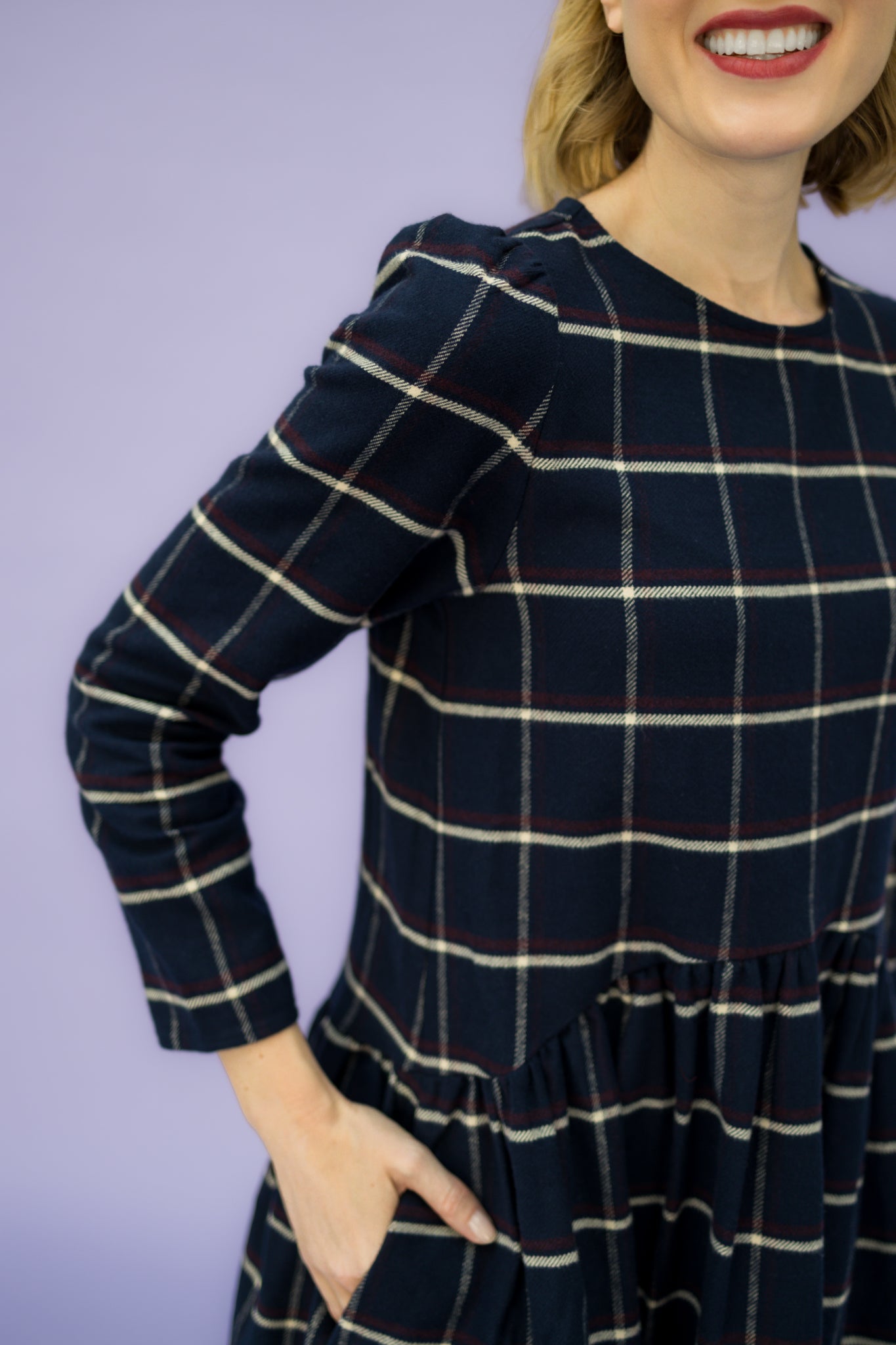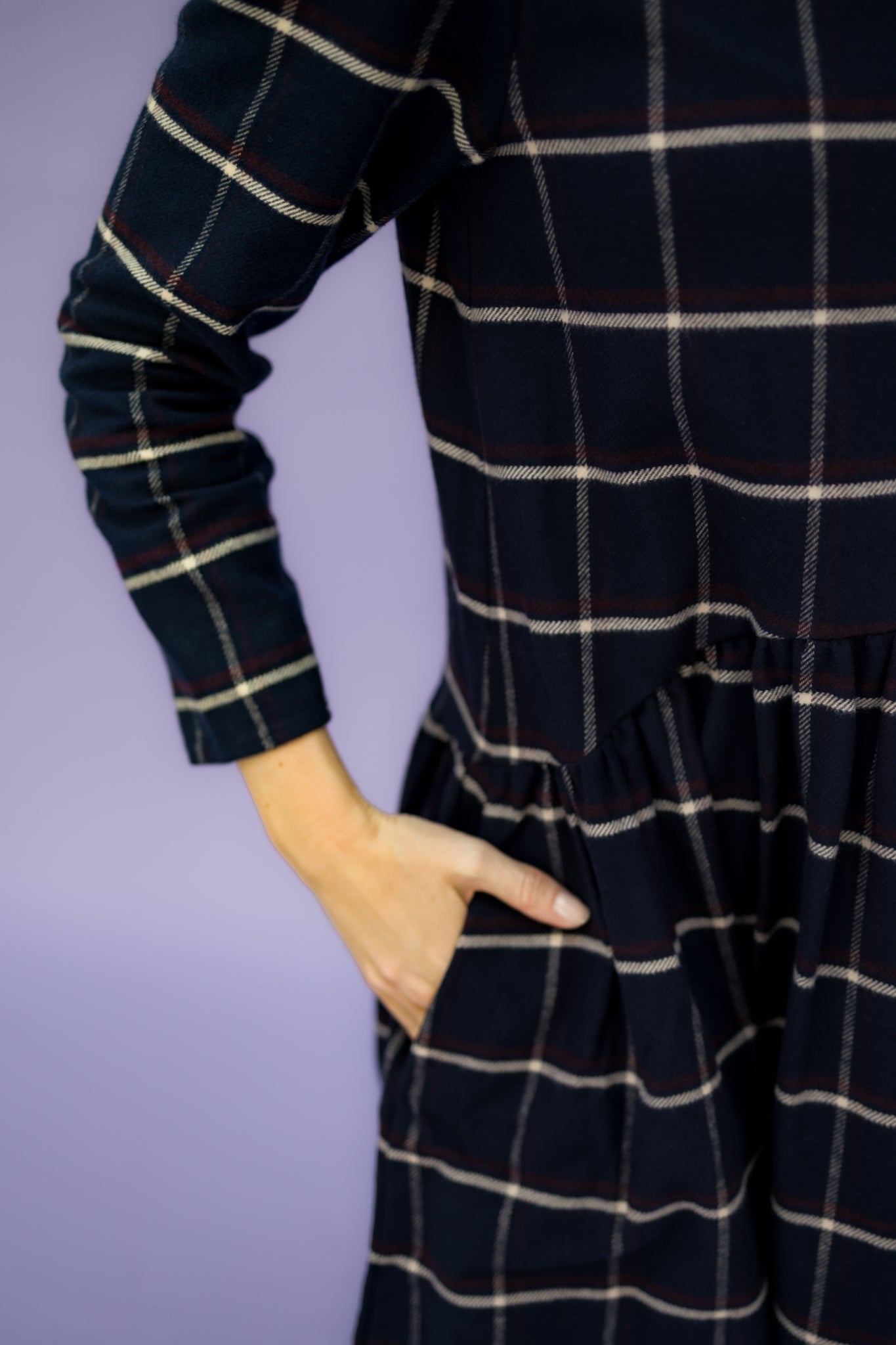 Be cheerful with a little NORA! Live in the moment and let life be fun. NORA, a dress to make you feel good. A playful dress with a 7/8 sleeve and shorter in the front than in the back, ruffled skirt. The perfect everyday dress and best of all, it has pockets.