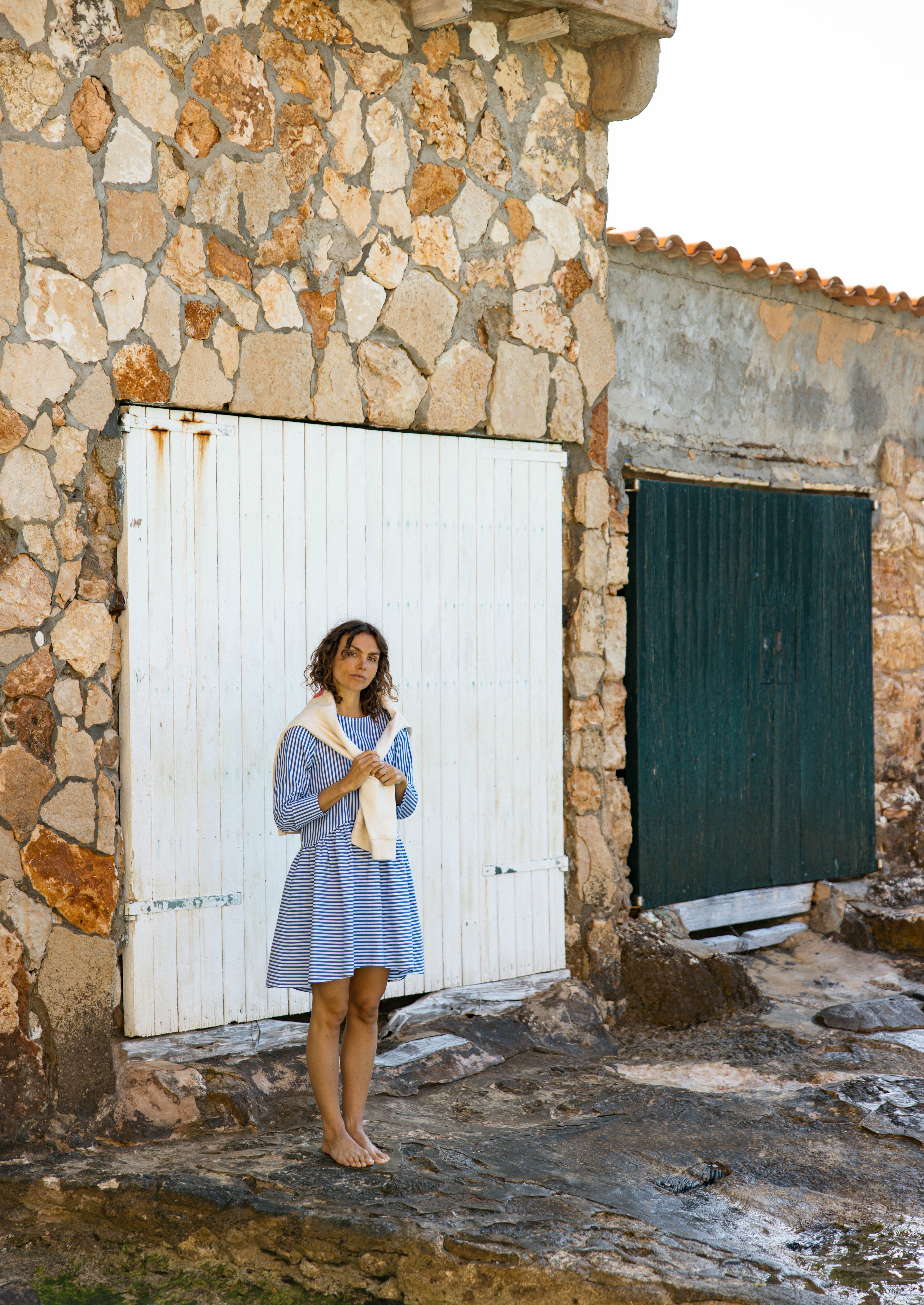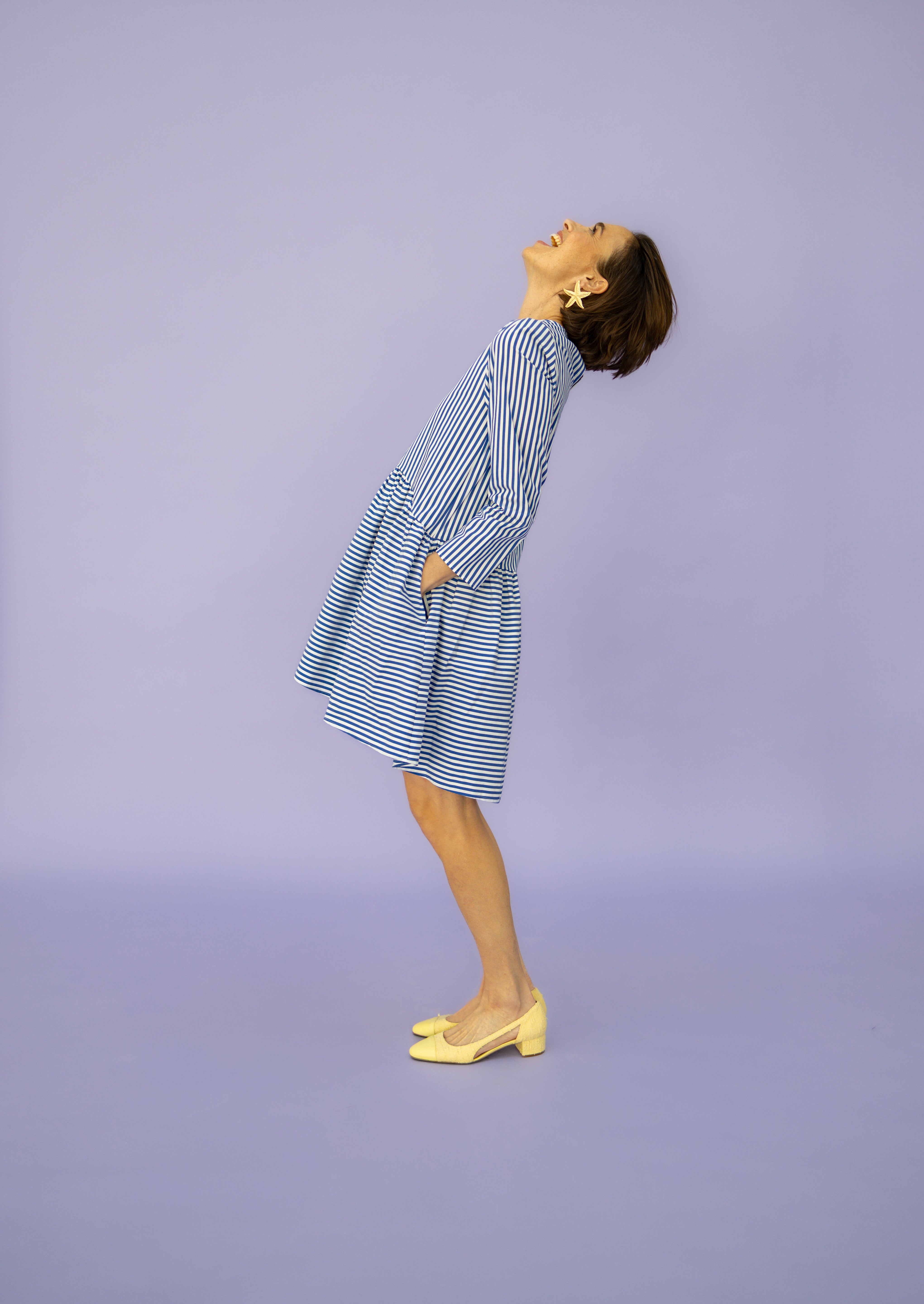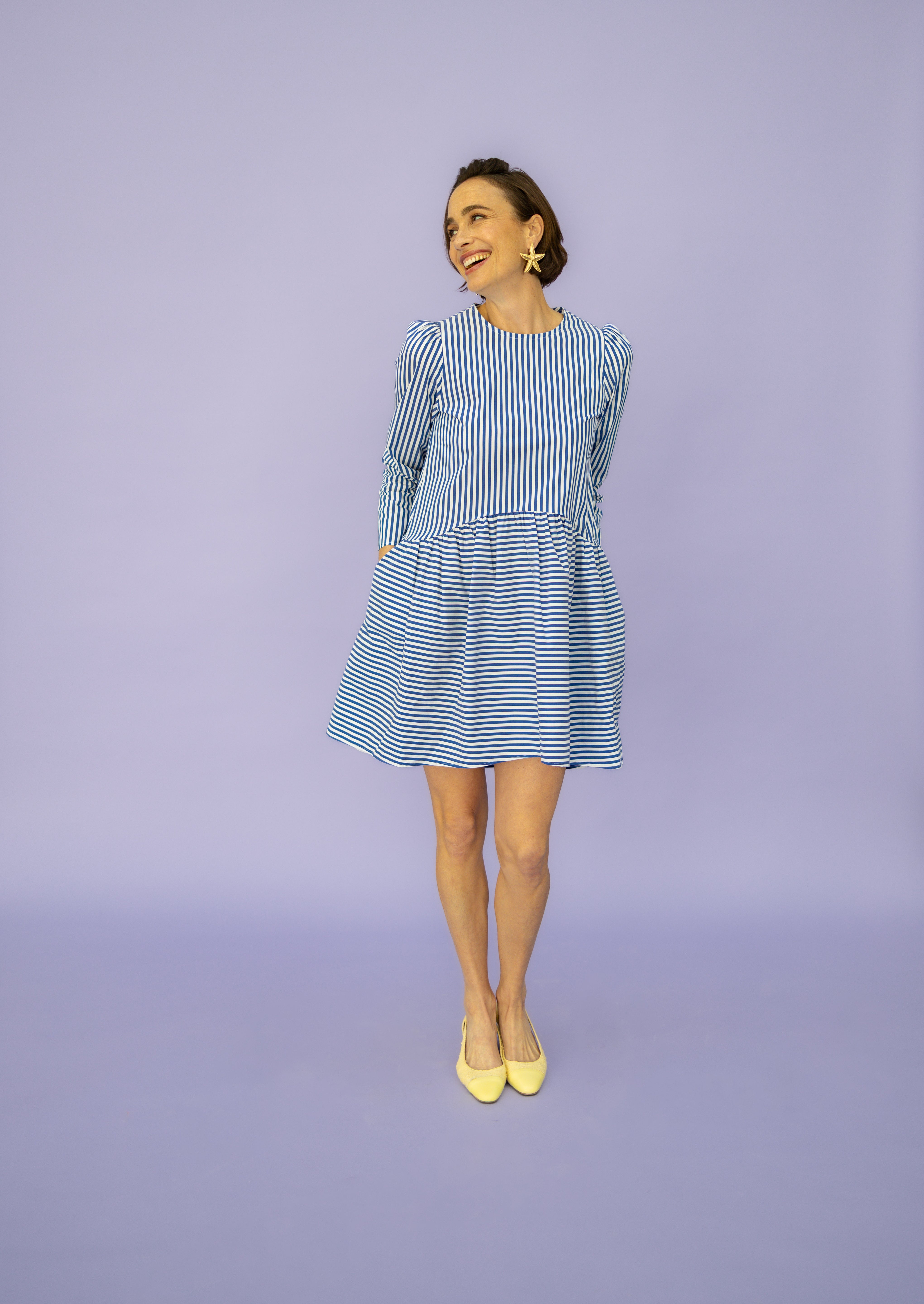 Be cheerful with a little NORA! Live in the moment and let life be fun. NORA, a dress to make you feel good. A playful dress with a 7/8 sleeve and shorter in the front than in the back, ruffled skirt. The perfect everyday dress and best of all, it has pockets.