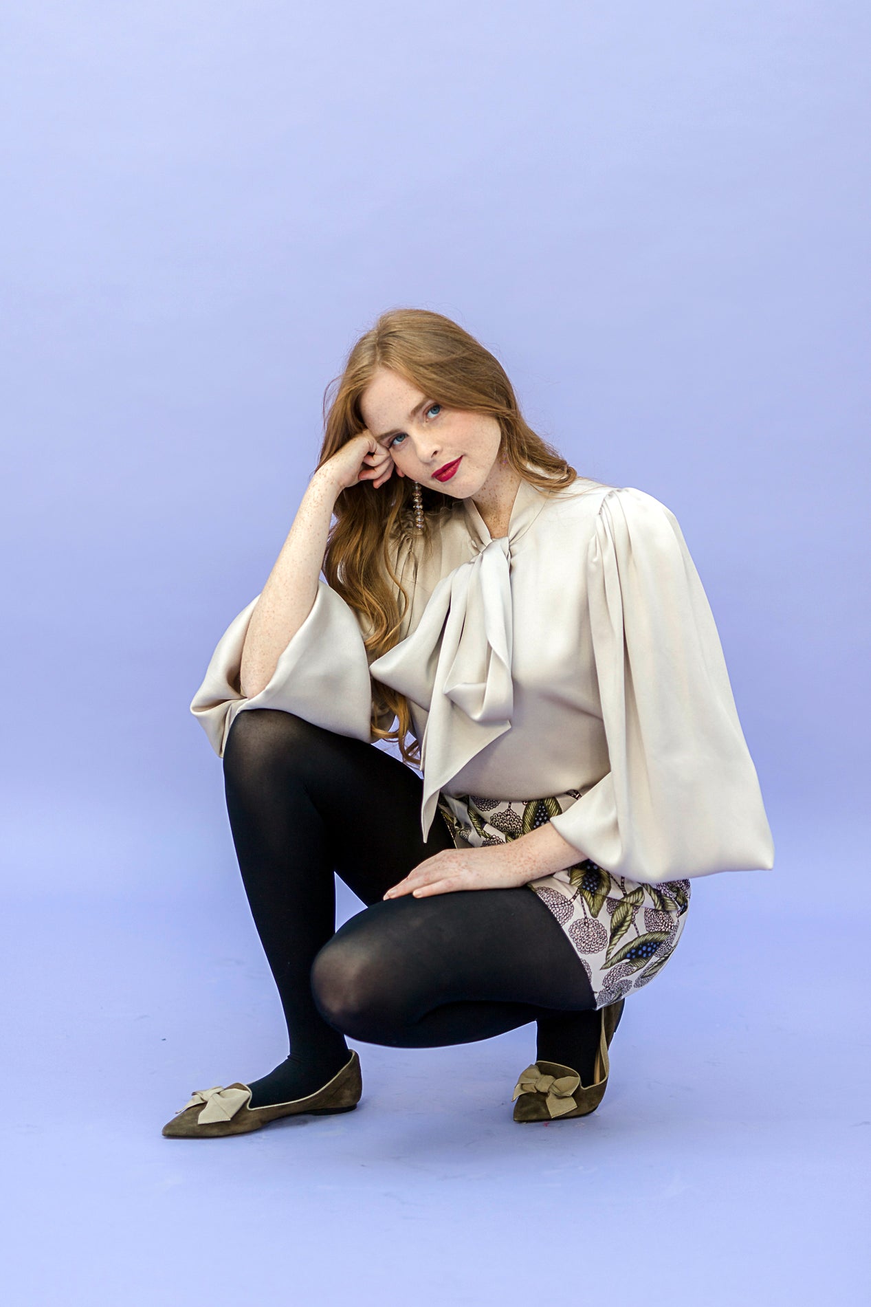The PAULA blouse is a fresh and stylish addition to your wardrobe. Featuring playful balloon sleeves and a large bow at the front, it combines elegance with a touch of fun. Perfect for both casual and more polished looks, this blouse adds a chic flair to any outfit.