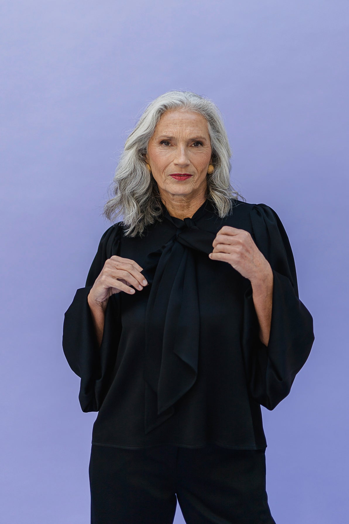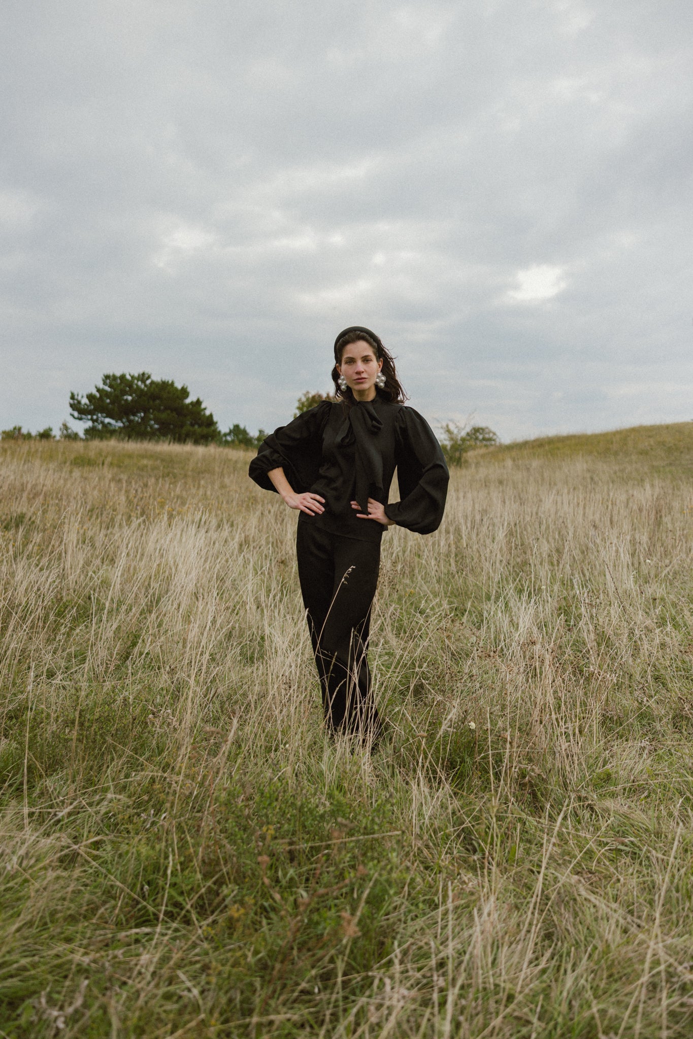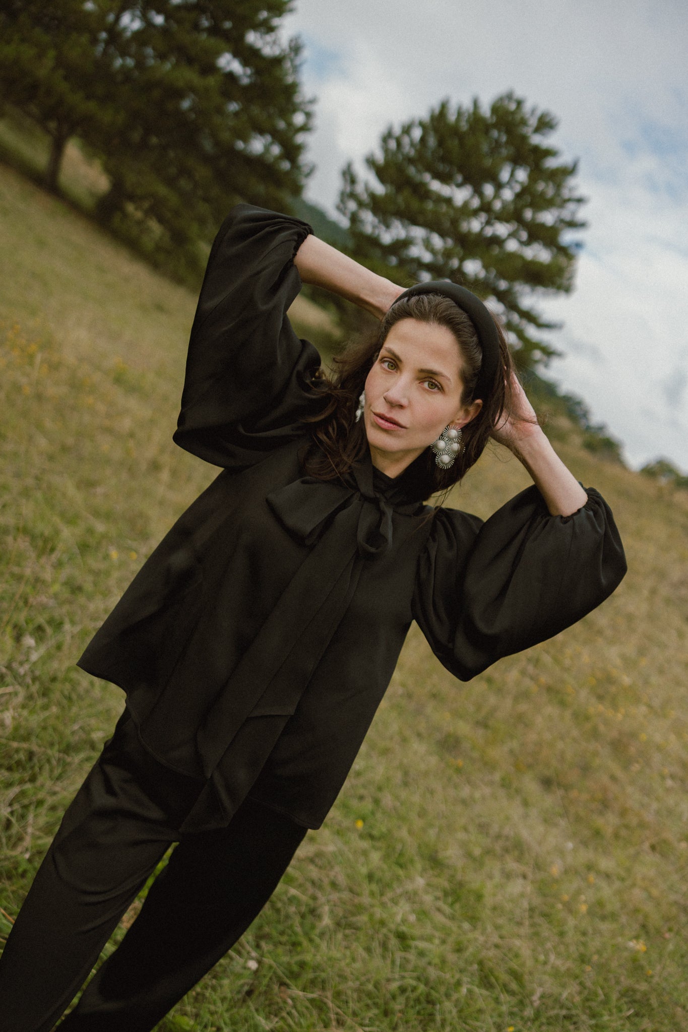 The PAULA blouse is a fresh and stylish addition to your wardrobe. Featuring playful balloon sleeves and a large bow at the front, it combines elegance with a touch of fun. Perfect for both casual and more polished looks, this blouse adds a chic flair to any outfit.