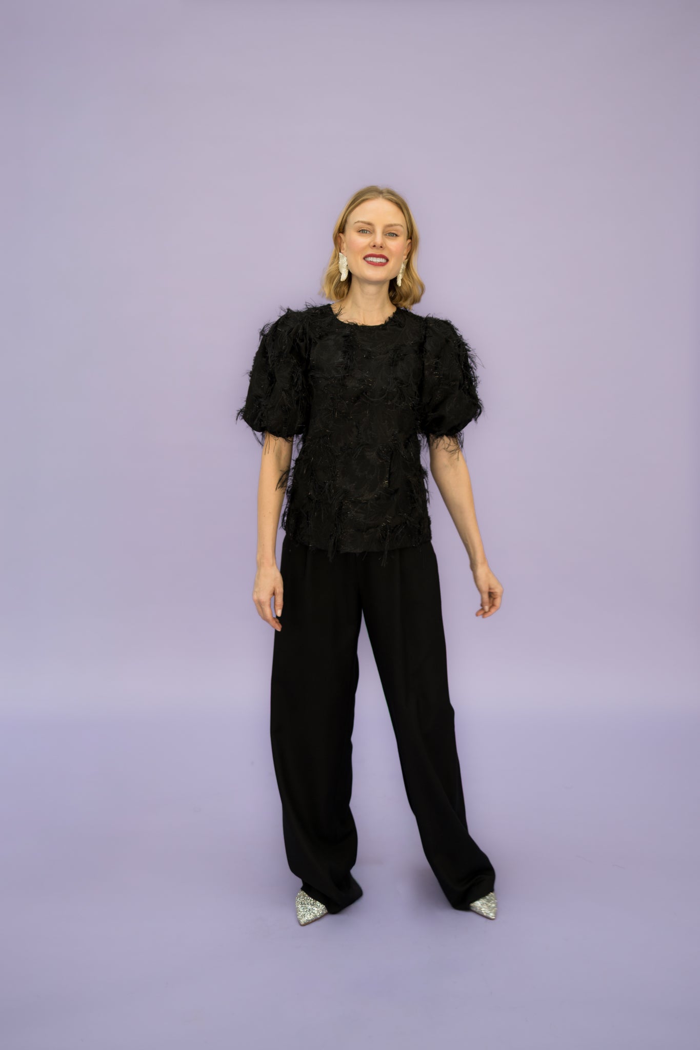 You're looking for a top that's special and that makes you feel like even more beautiful? Then this one's for you! It has a feminine silhouette and puff sleeves. You'll feel chic and comfortable while wearing this top. It's perfect for any occasion!