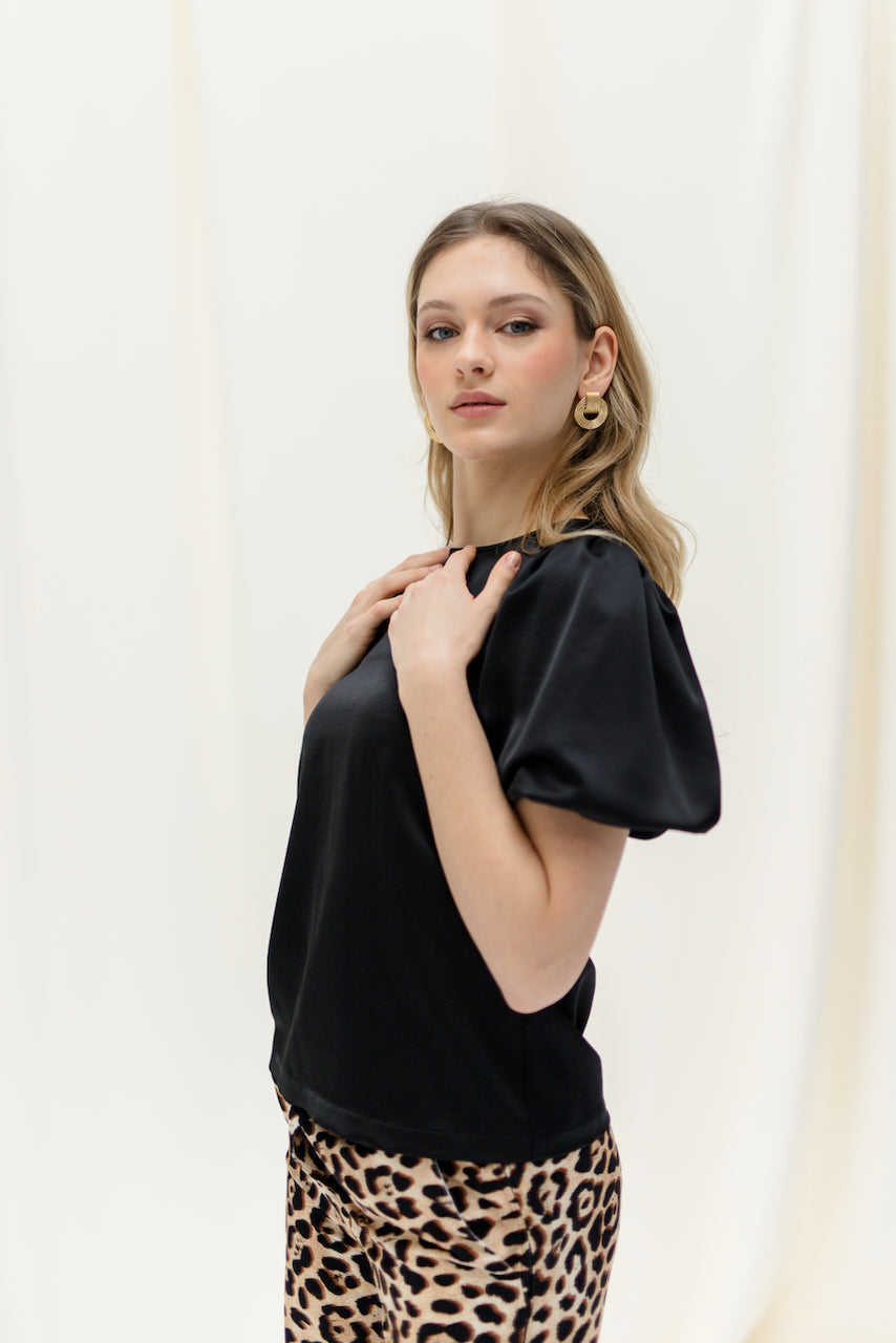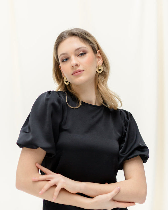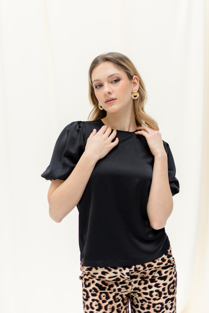 You're looking for a top that's special and that makes you feel like even more beautiful? Then this one's for you! It has a feminine silhouette and puff sleeves. You'll feel chic and comfortable while wearing this top. It's perfect for any occasion!