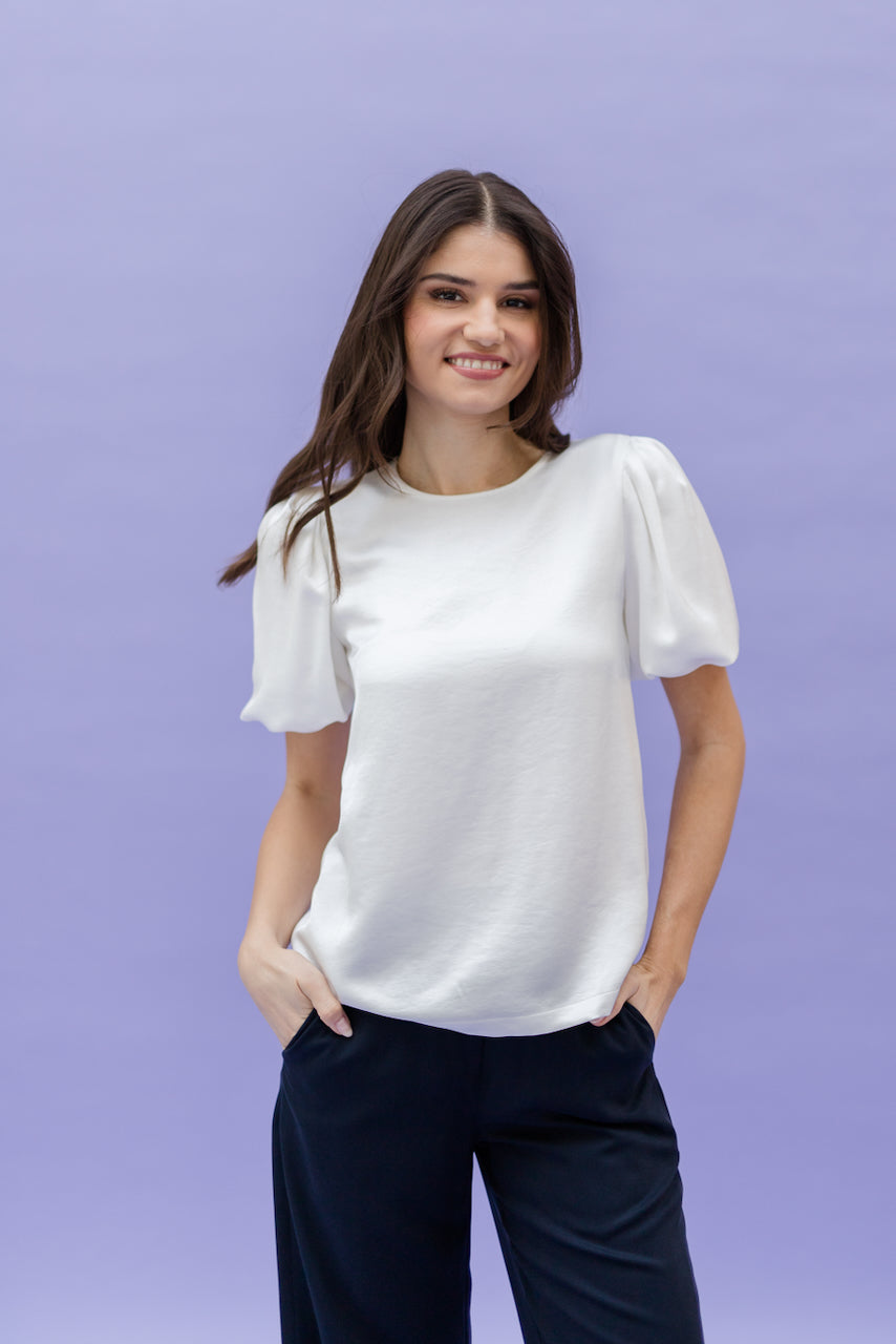 You're looking for a top that's special and that makes you feel like even more beautiful? Then this one's for you! It has a feminine silhouette and puff sleeves. You'll feel chic and comfortable while wearing this top. It's perfect for any occasion!