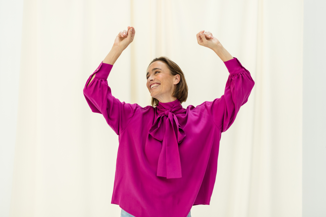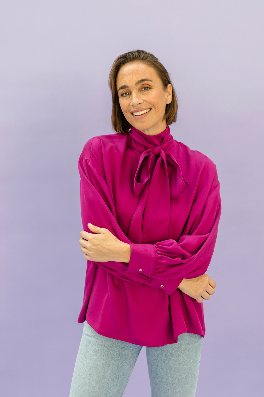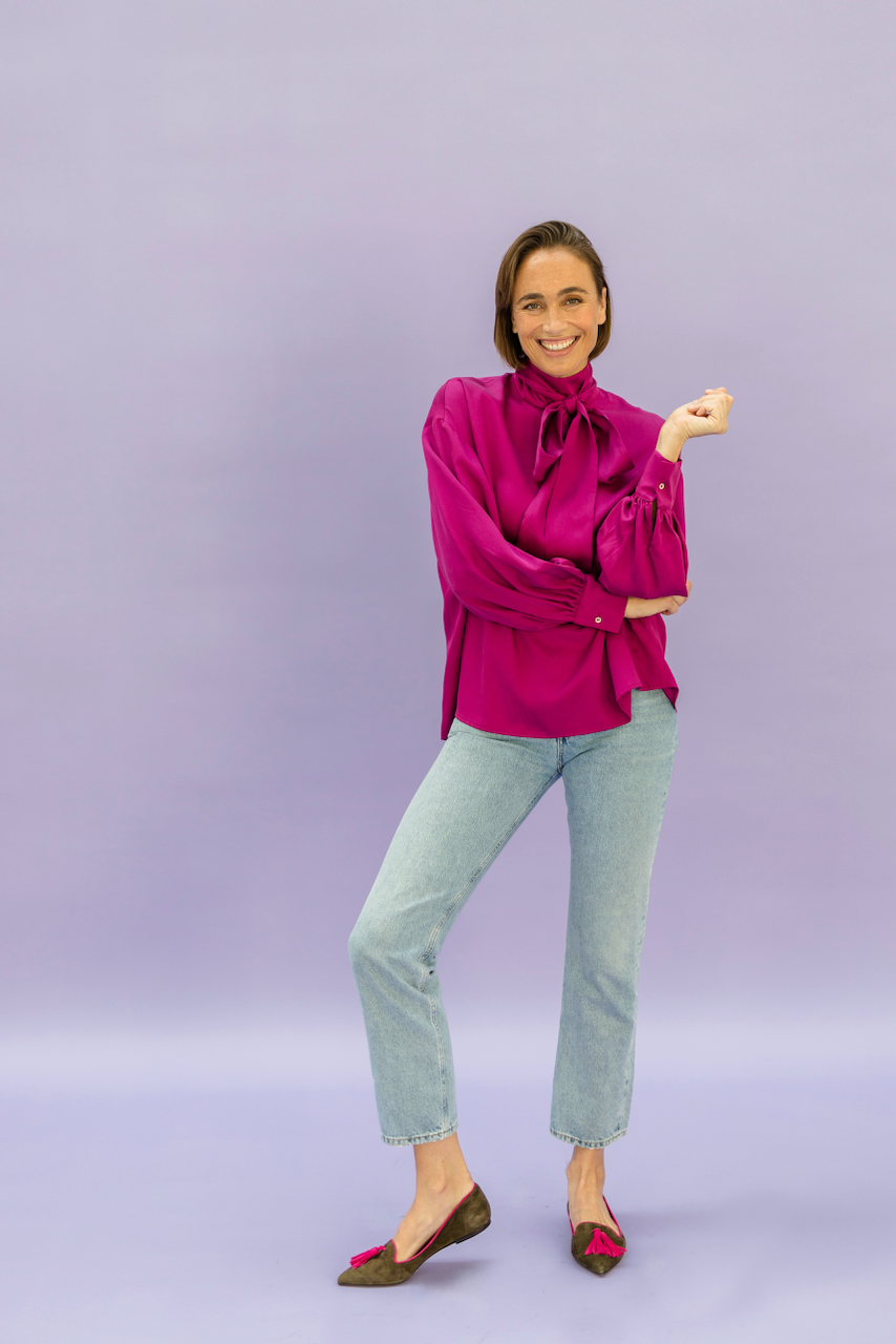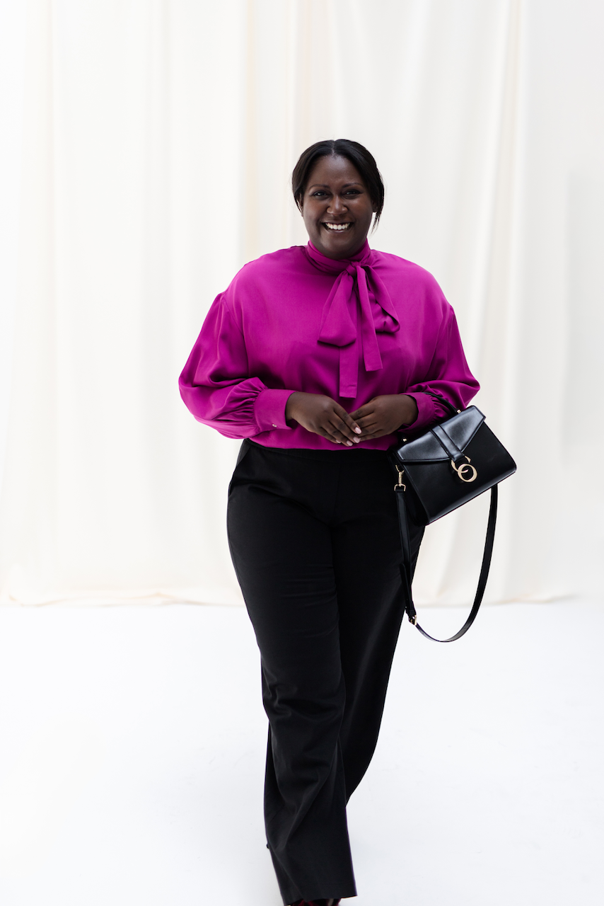 PIPPA is a beautiful blouse with a chic stand-up tie collar and zipper in the back. Perfect to wear with our AVA pants or to elevate any outfit. The beautiful tie collar can be worn both tied in the front or the back or left open. With its comfortable fit and timeless design, you'll feel confident and stylish all day long.