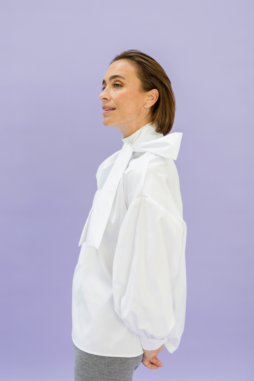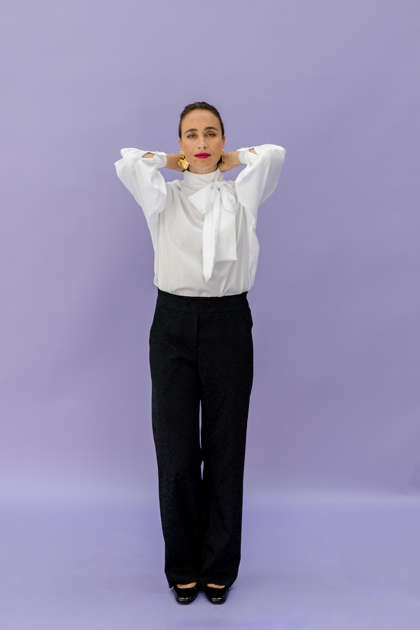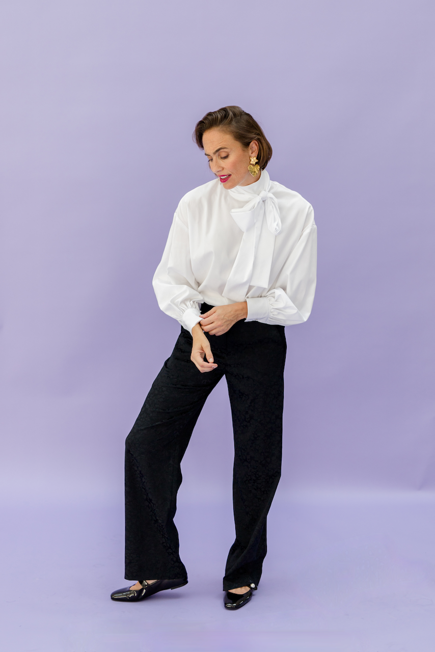 PIPPA is a beautiful blouse with a chic stand-up tie collar and zipper in the back. Perfect to wear with our AVA pants or to elevate any outfit. The beautiful tie collar can be worn both tied in the front or the back or left open. With its comfortable fit and timeless design, you'll feel confident and stylish all day long.