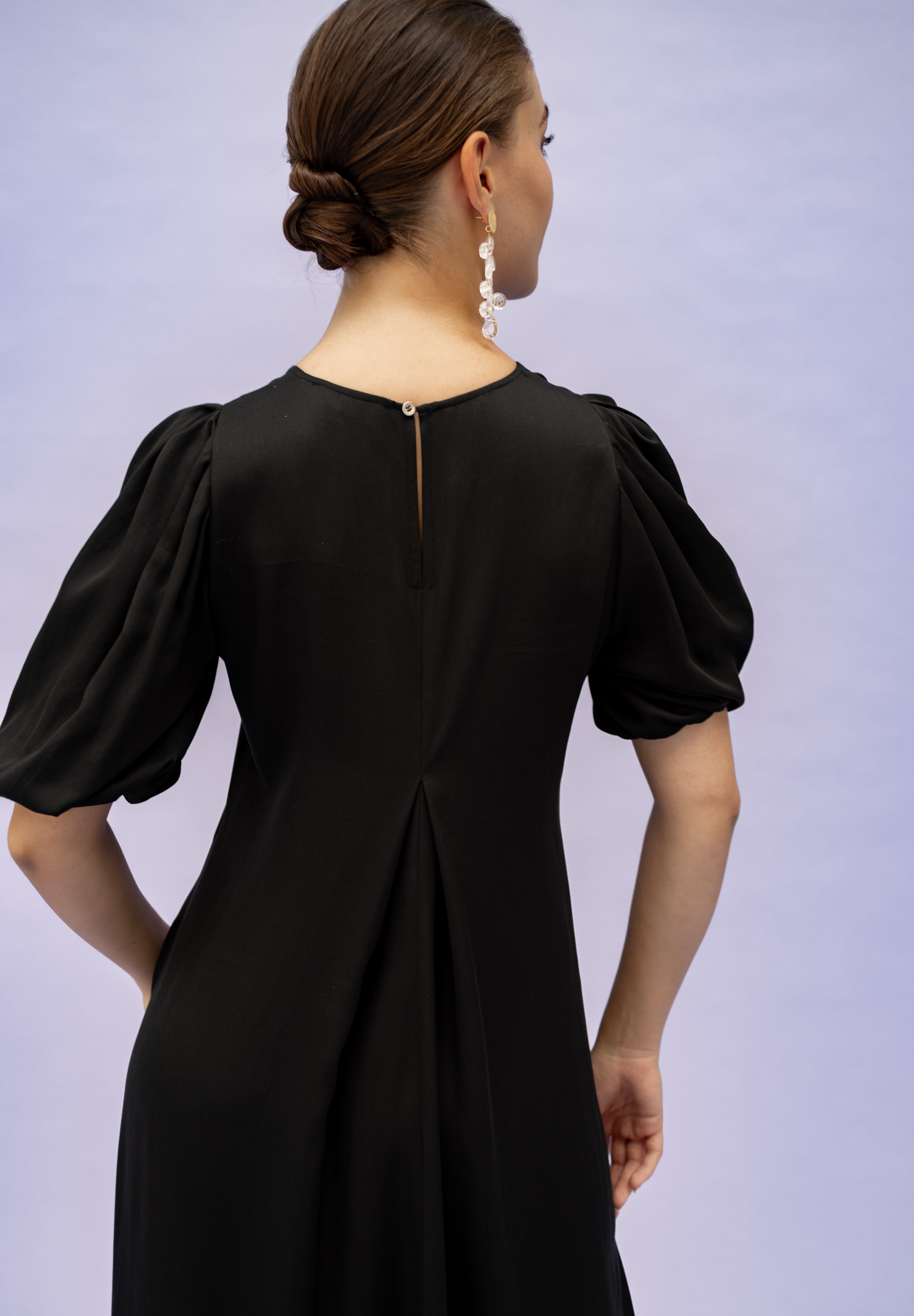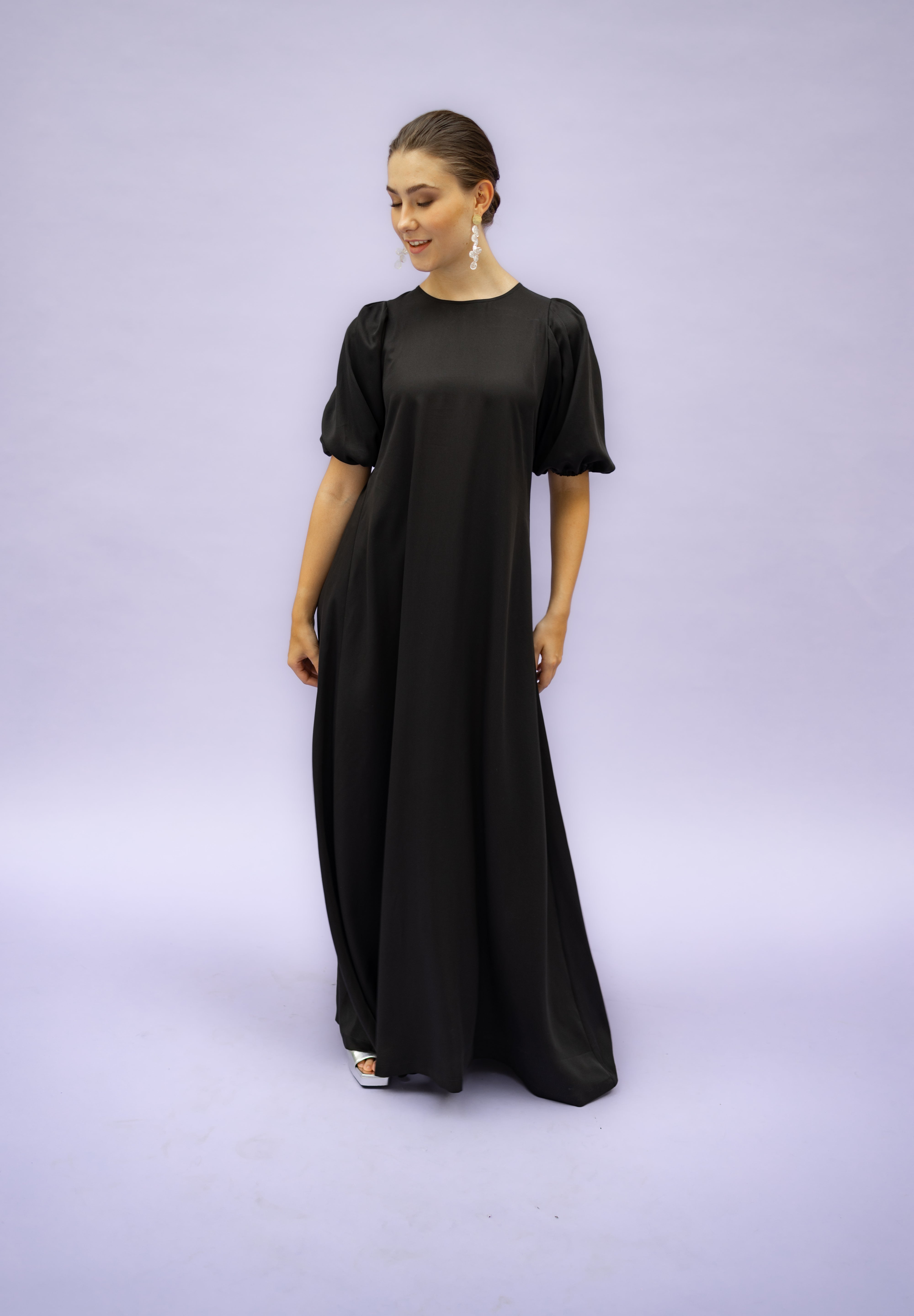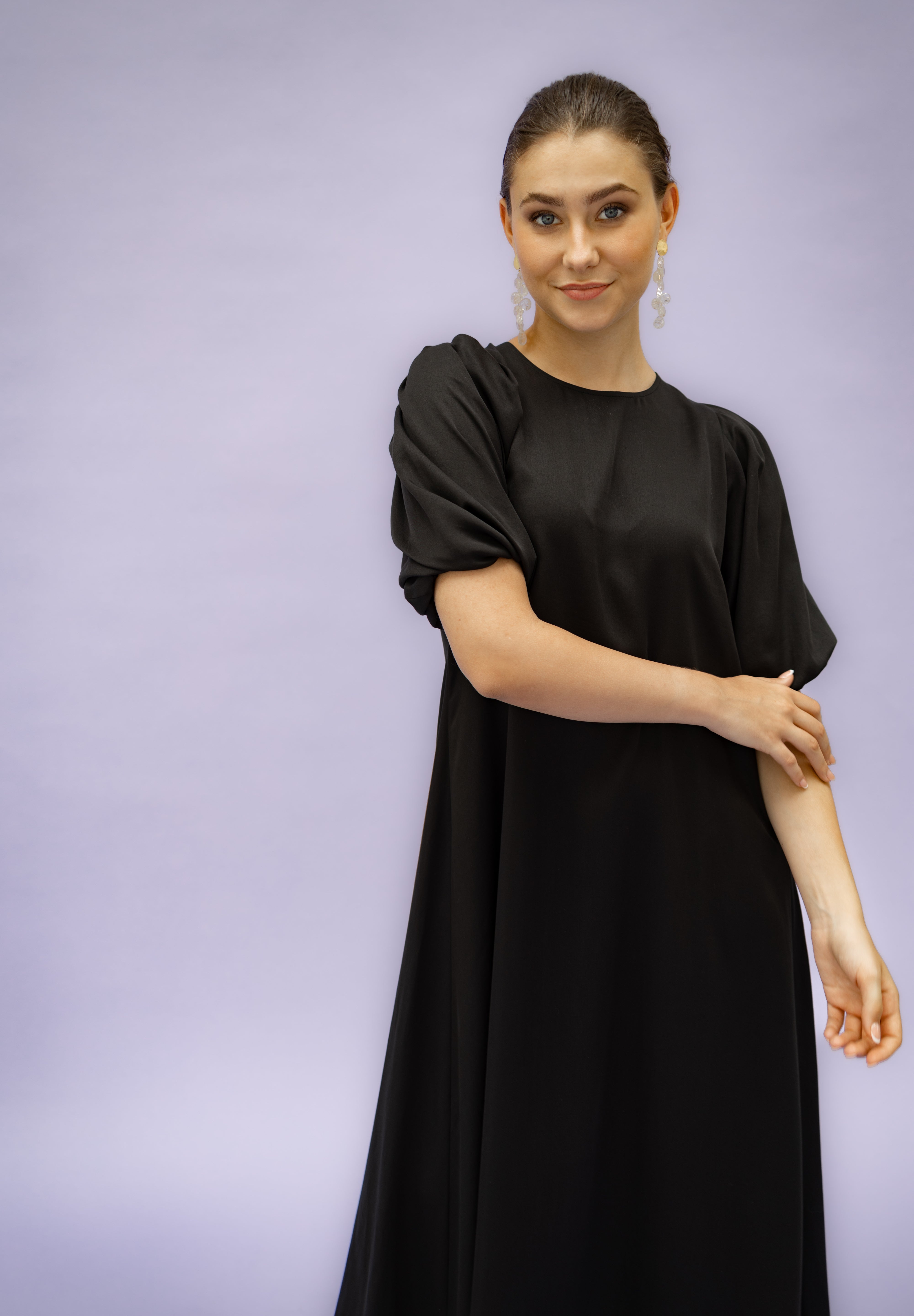 The JUNA Ball is a floor-length A-line gown with voluminous puff sleeves, perfect for an elegant ball night. Made from luxurious fabrics, it combines classic sophistication with a modern touch. A standout feature is the box pleat at the back, adding depth and graceful movement to the silhouette – ideal for an unforgettable entrance.