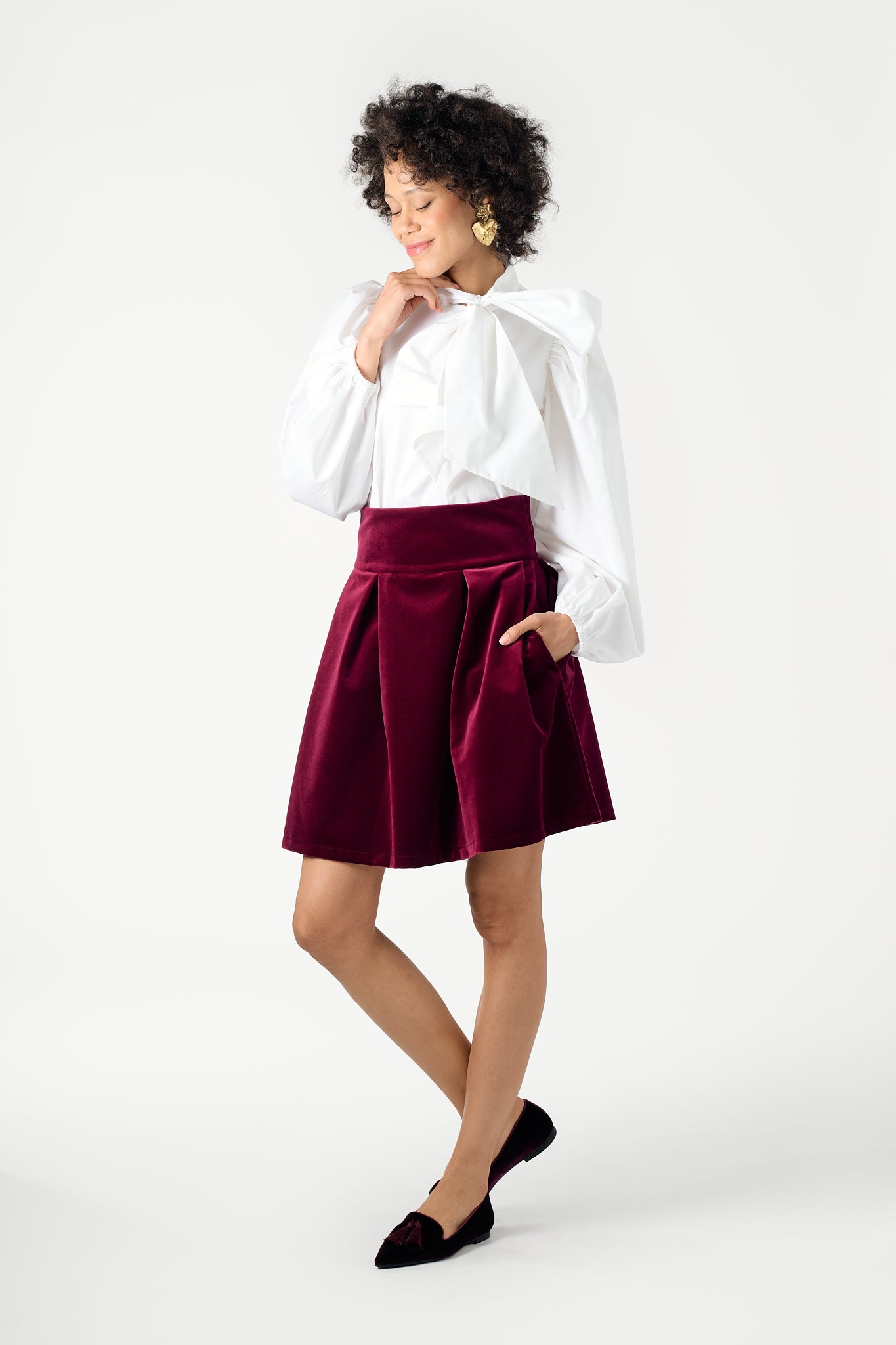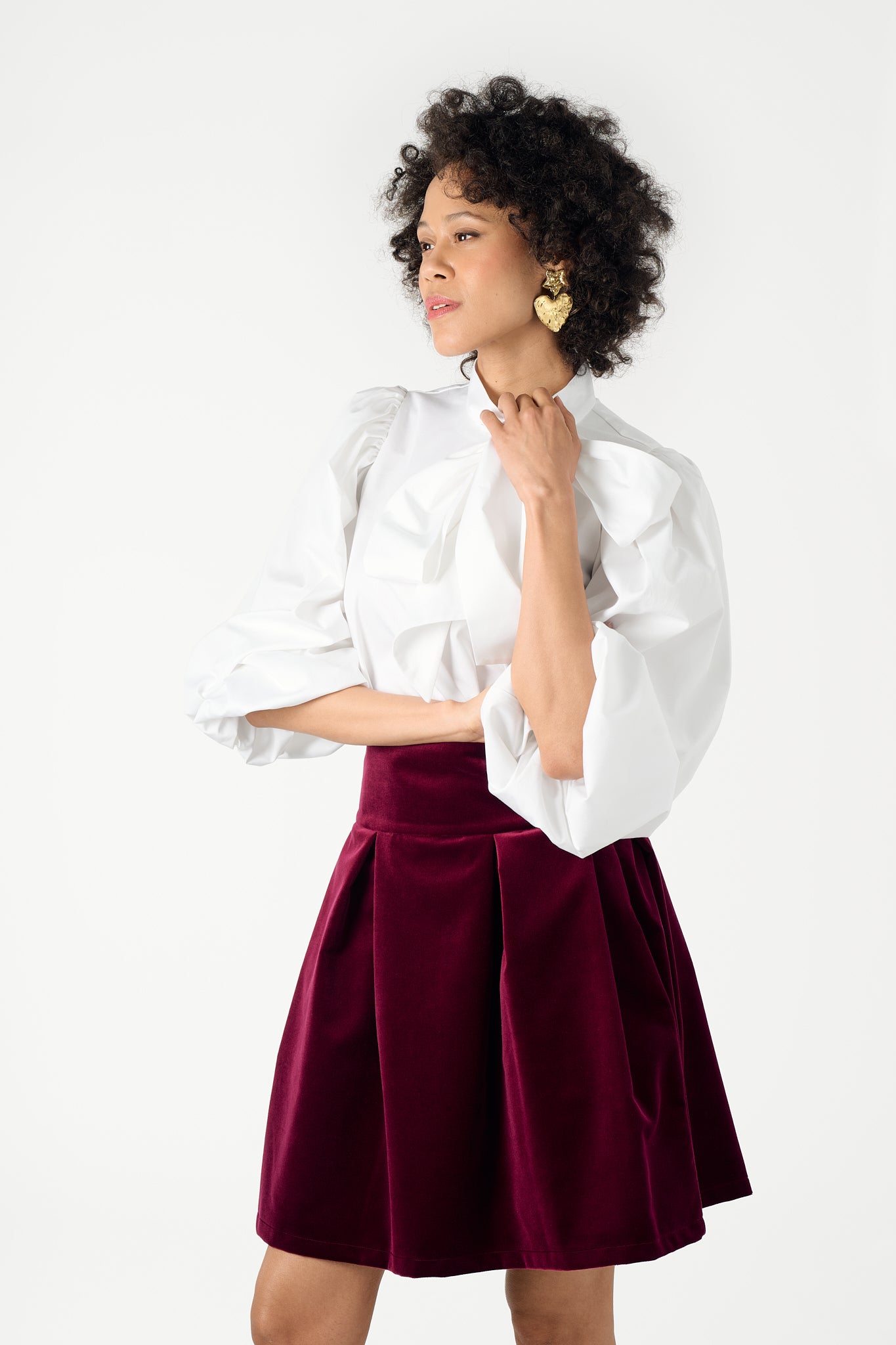 RUBY, our favorite skirt gives you an amazing silhouette, has a wide waistband, is laid in folds and skims the knees. It can be perfectly paired with our tops and has pockets.
