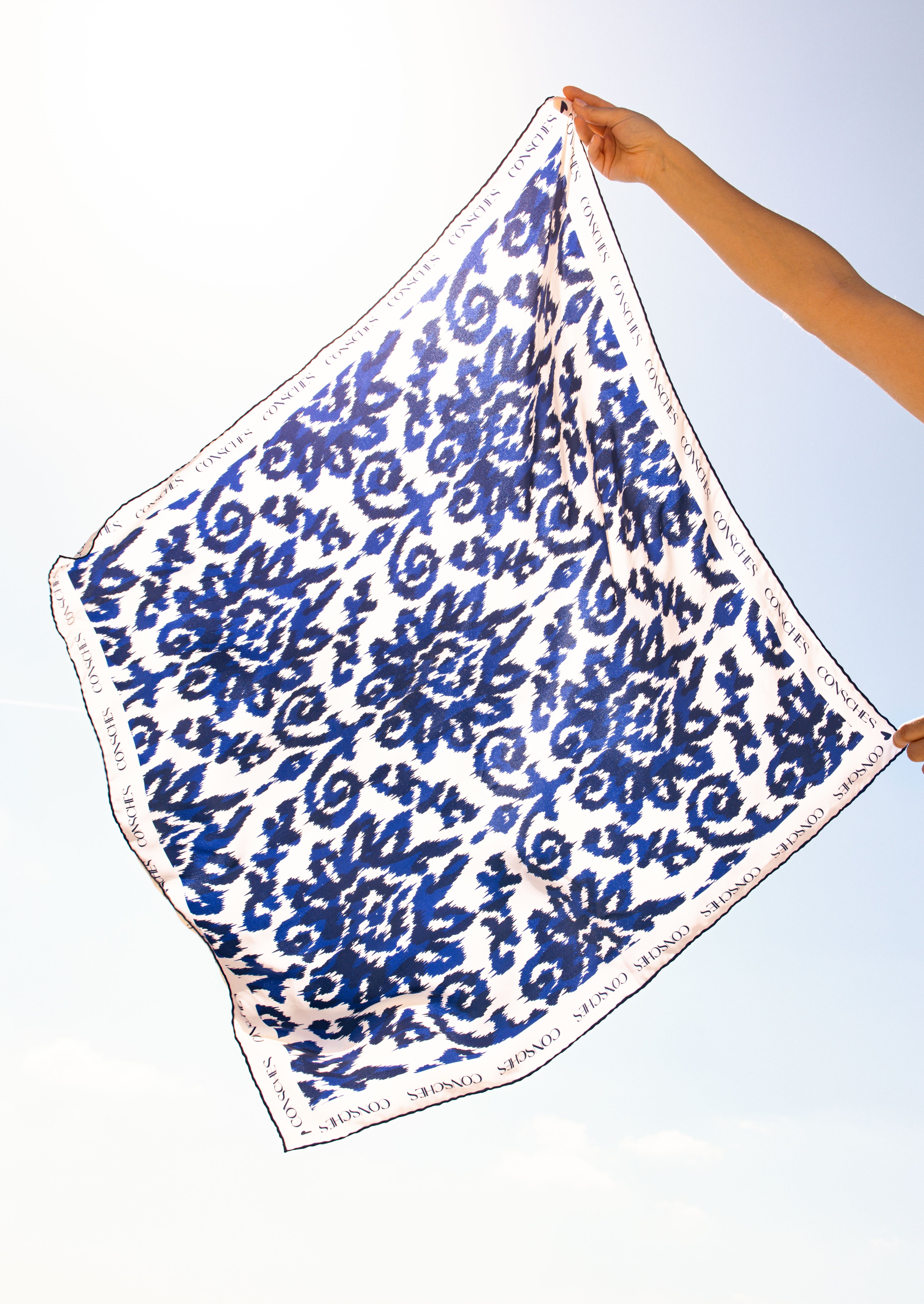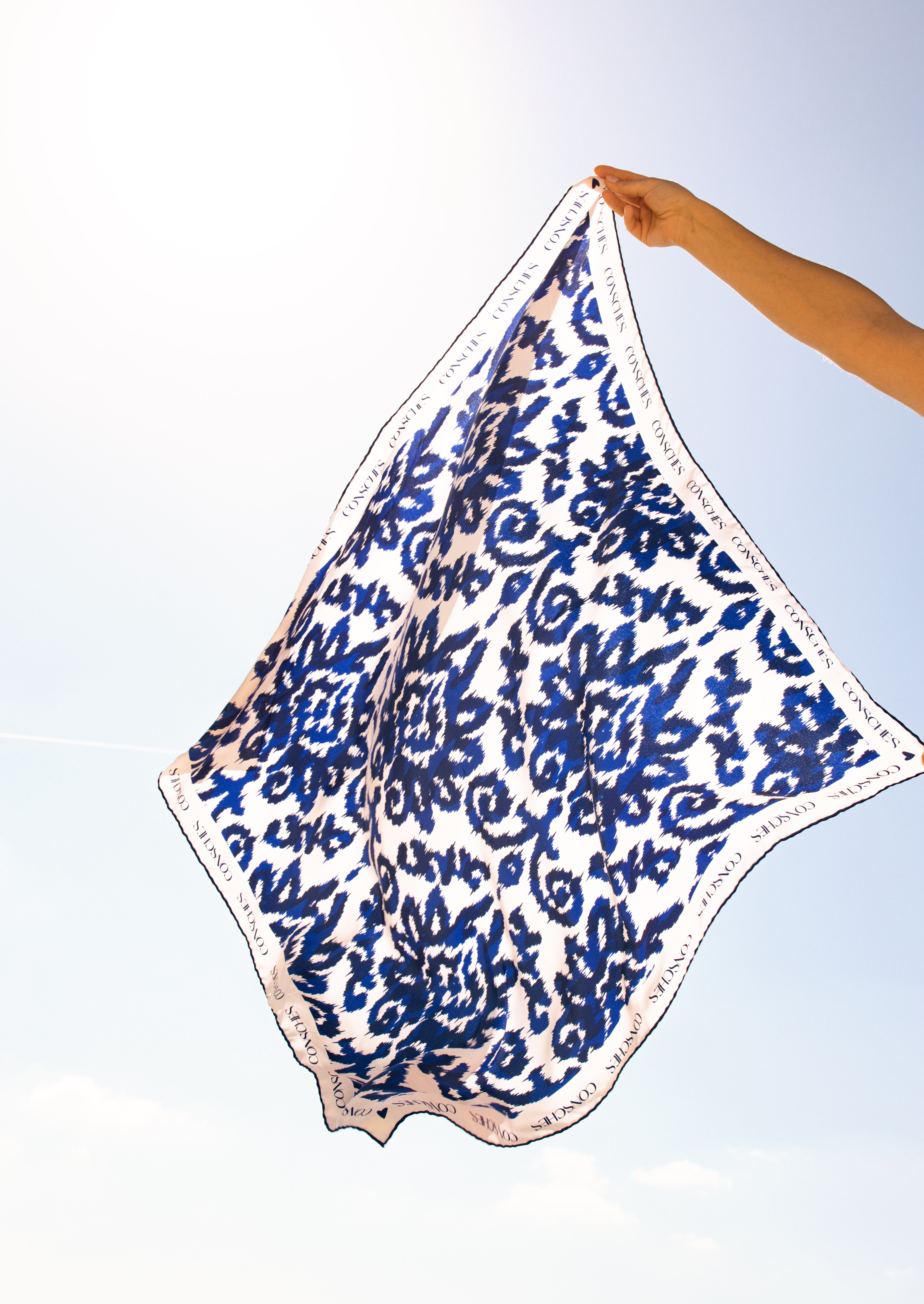The SANTORINI silk scarf is a versatile and unisex accessory, reimagined in collaboration with Austrian label ATIE. This 90 x 90 cm big scarf is crafted from luxurious 100% twill silk and finished with hand-rolled edges. Designed in Austria and produced in Italy, it’s a piece that not only makes a style statement but also tells a story.