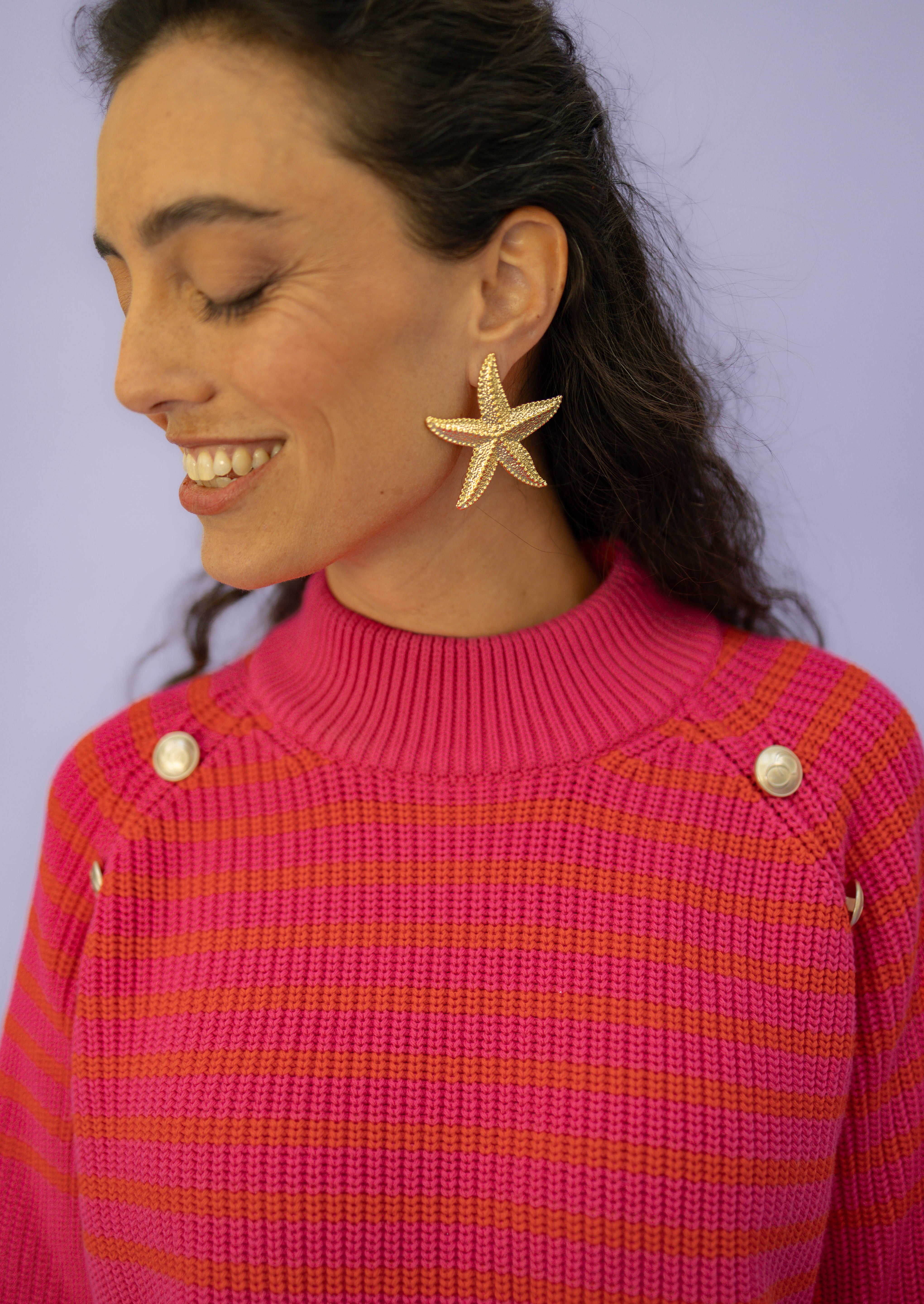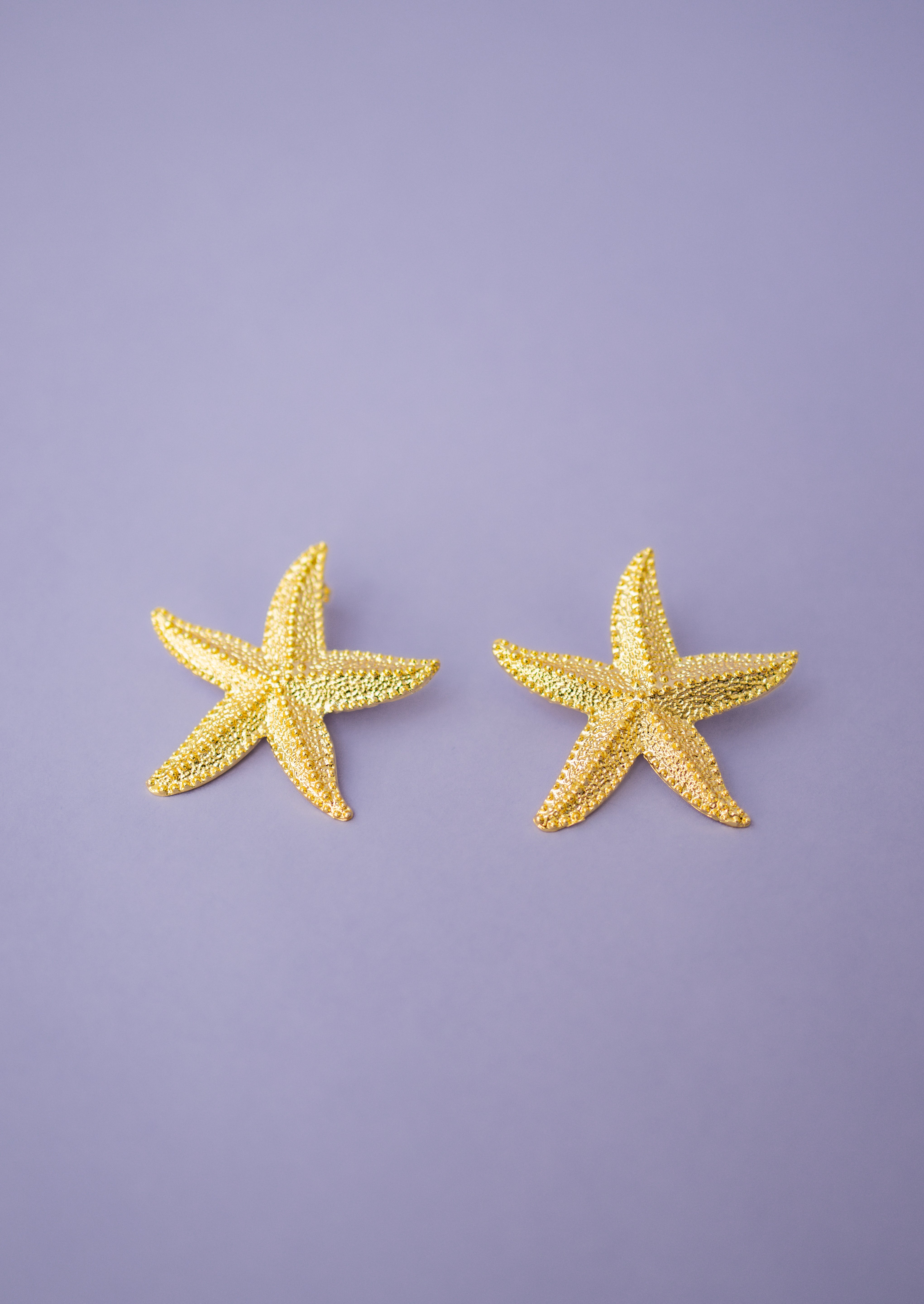 Elegant starfish earrings crafted from high-quality bronze, gold-plated for a radiant finish. Inspired by the beauty of the ocean, these unique pieces add a touch of summer charm to any look. Perfect for beach lovers and statement jewelry fans!