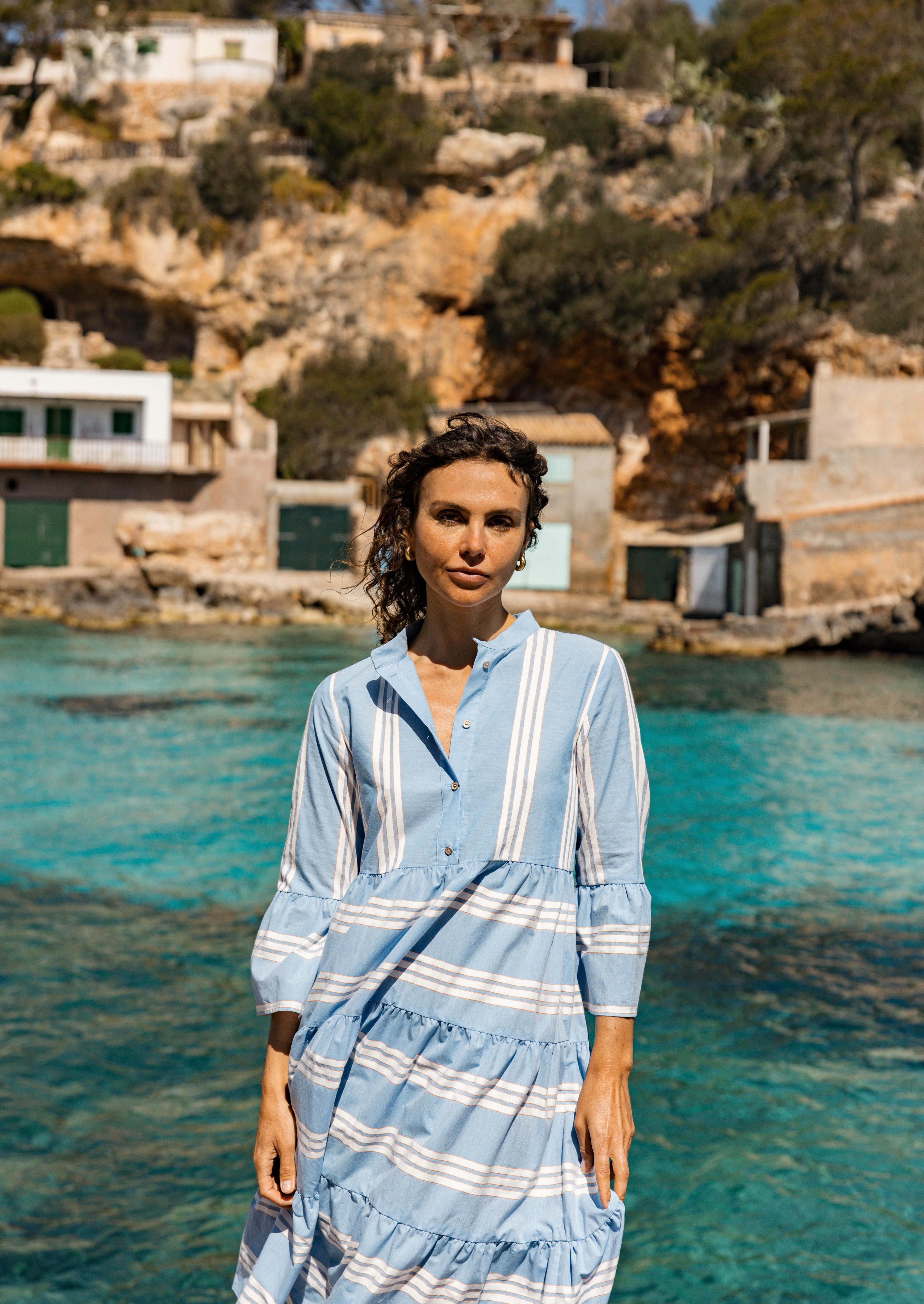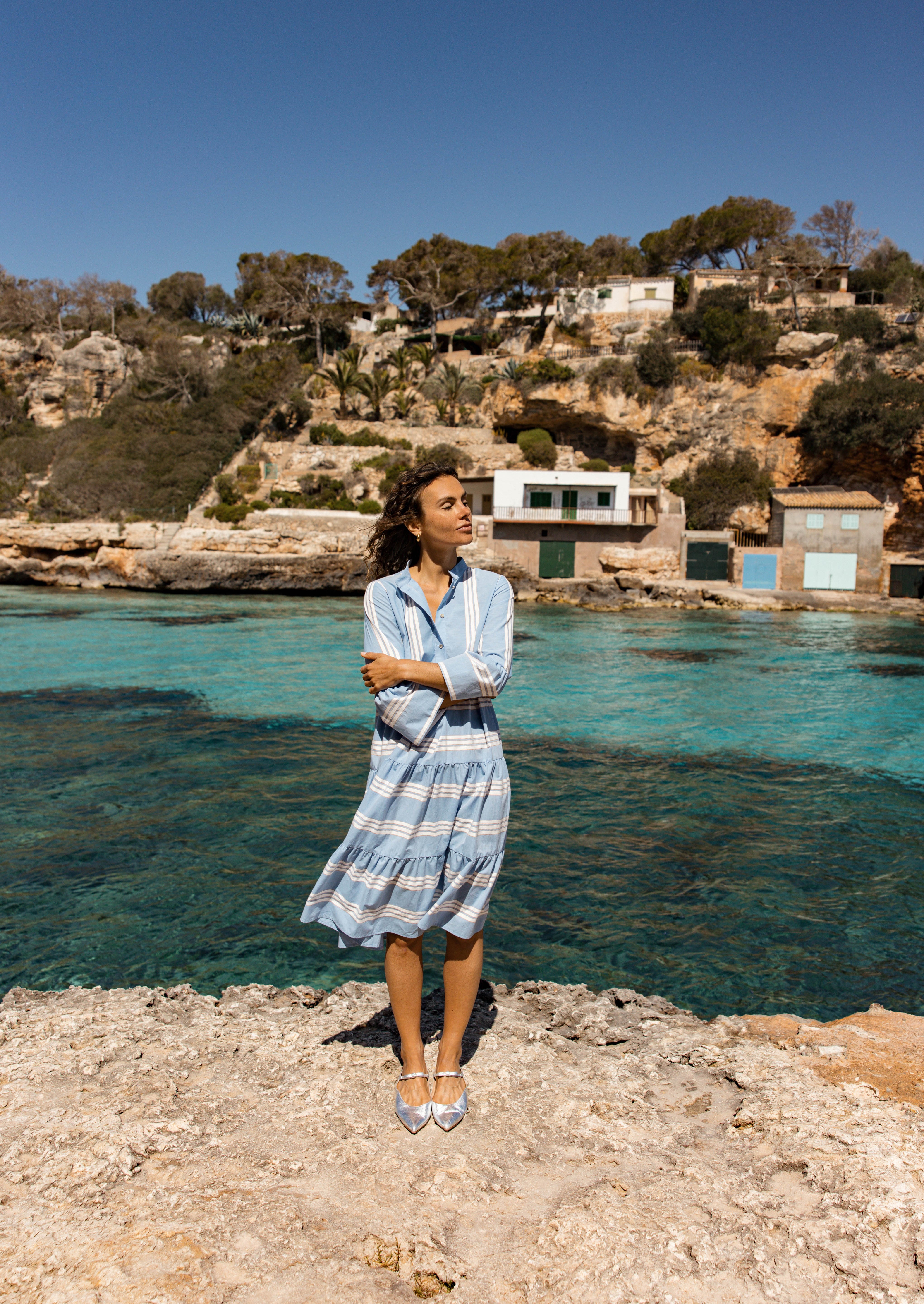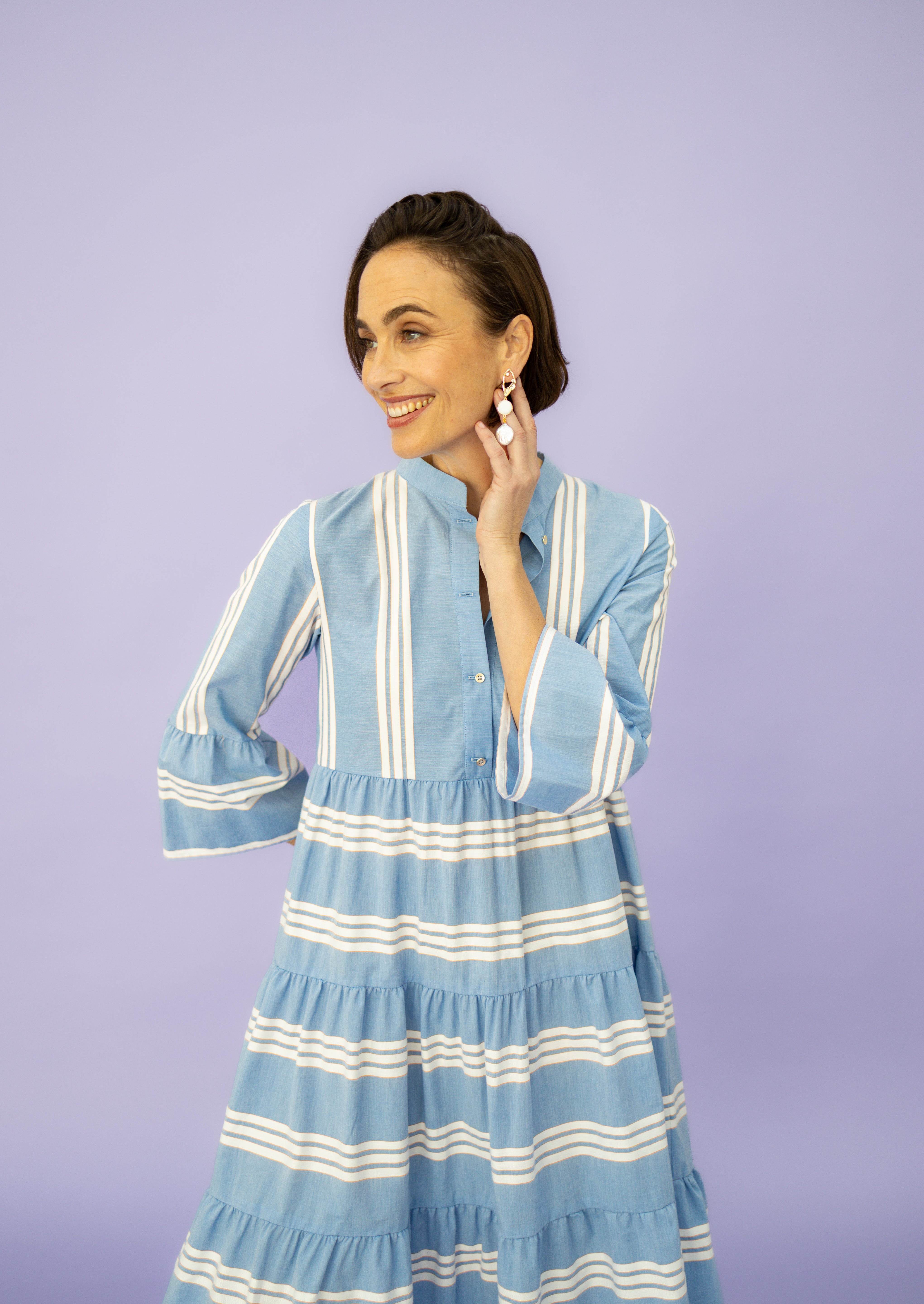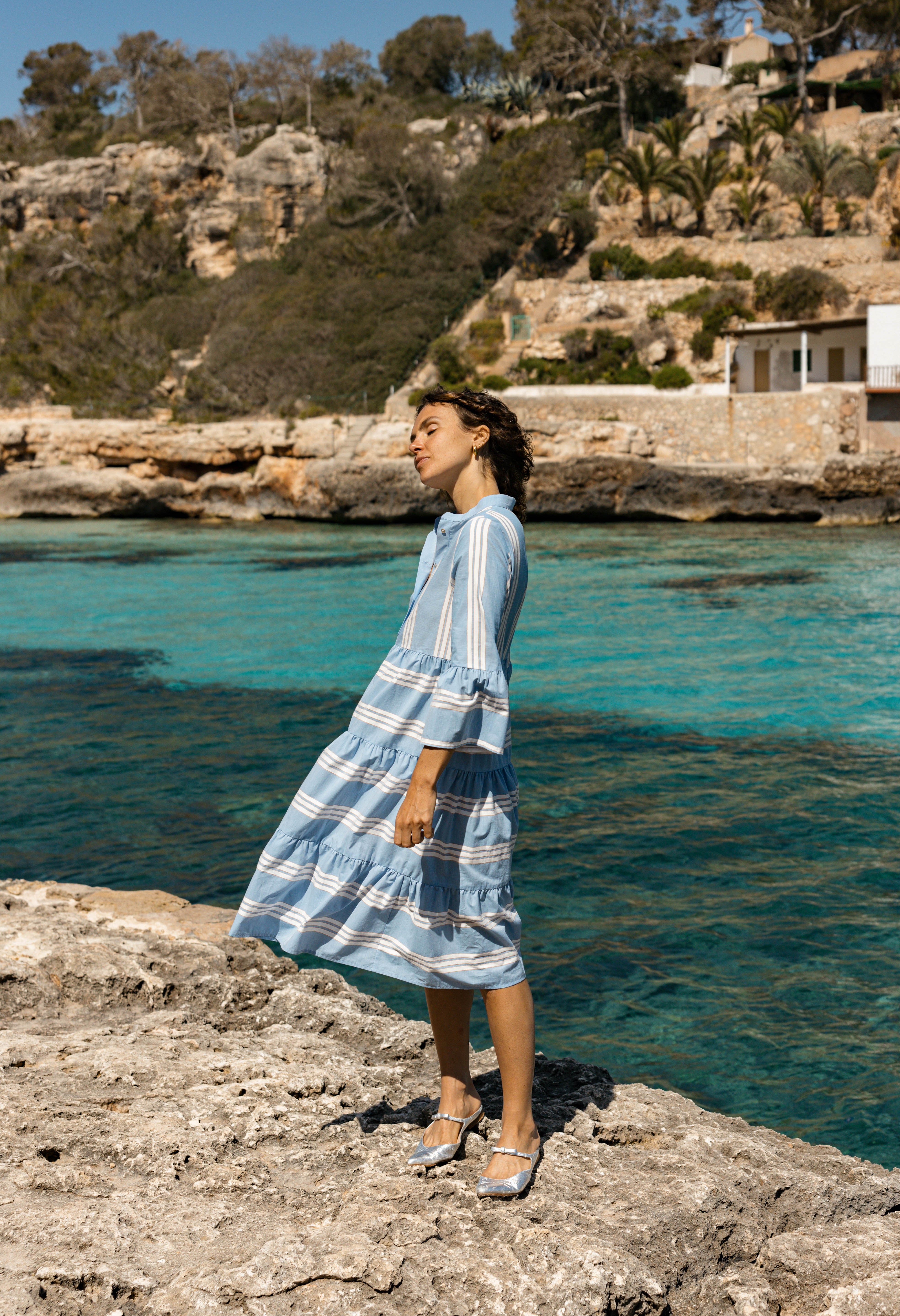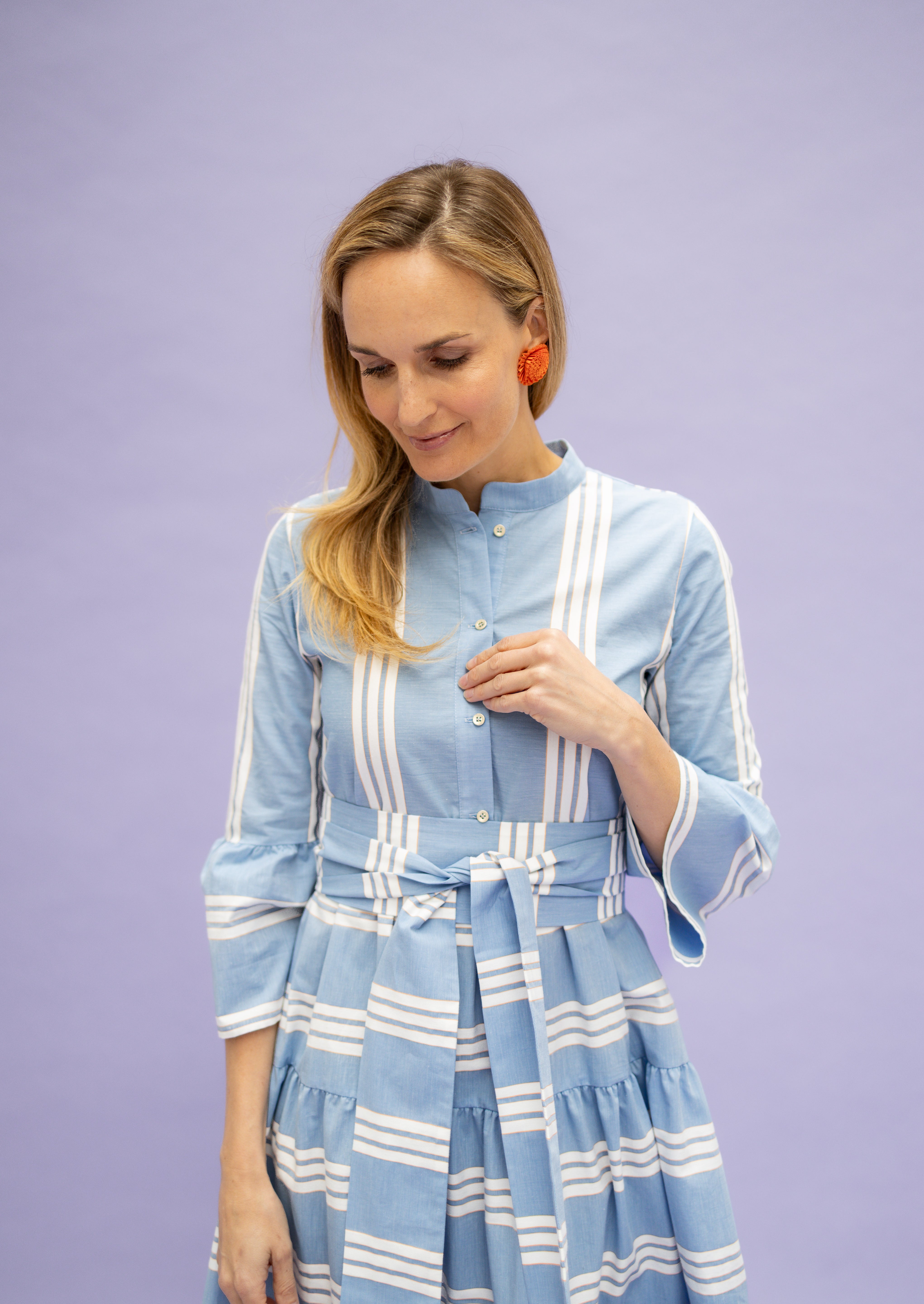This is the summer version of ANTONIA. Airy, playful and comfortable made of 100% cotton with flounce sleeves. TONI midi convinces with a beautiful coral print, is longer than TONI and ends below the knee. The dress grows with the sizes and gets a little longer. You can find the matching belt here.